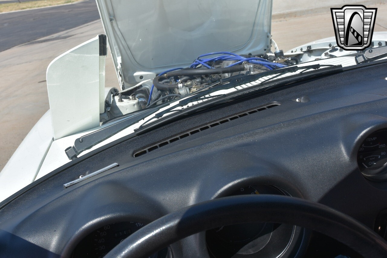 Step inside, and you'll be greeted by a well maintained black vinyl interior that offers both comfort and style. The cabin is equipped with seatbelts for your safety, ensuring peace of mind as you embark on your driving adventures. The AM/FM radio provides a touch of nostalgia, allowing you to enjoy your favorite tunes as you cruise in this classic beauty.