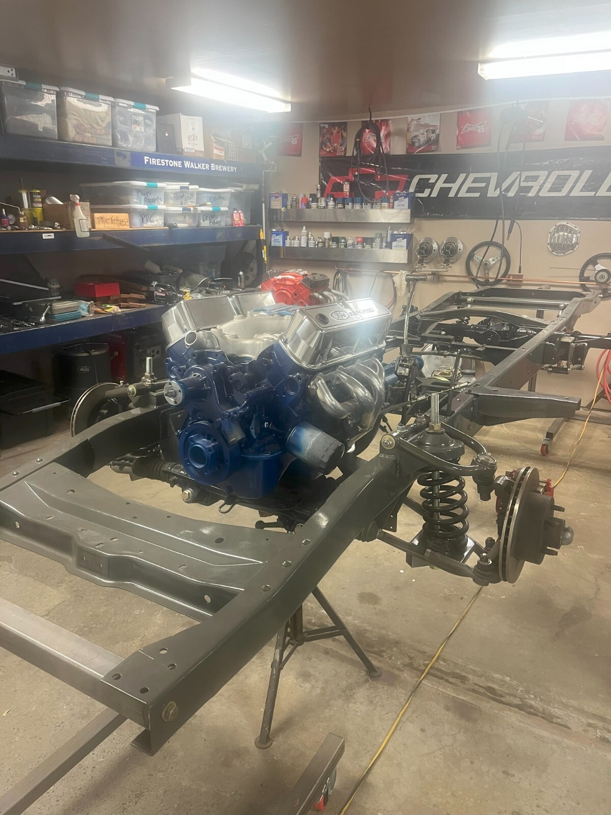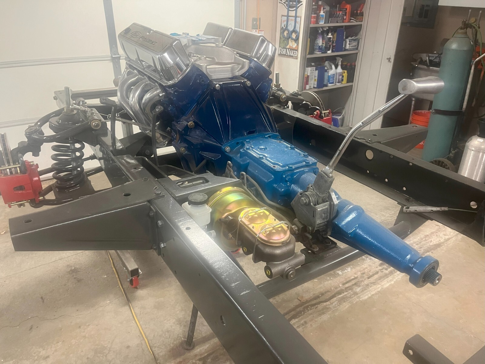 1956 Ford f100 resto-mod project. Frame is completed and powder coated. TCI mustang II front suspension. TCI 4-link rear w/coil overs. Engine is a 1970 302 ford mustang just rebuilt. Transmission is a 4 speed top-loader. Comes with all the body parts needed to complete.