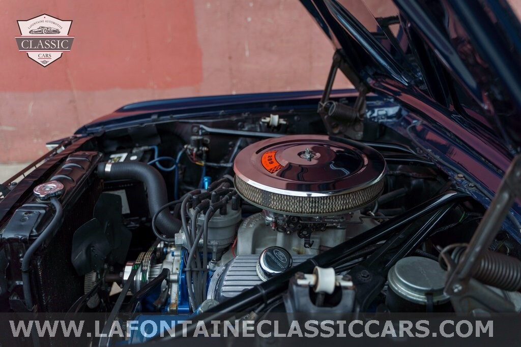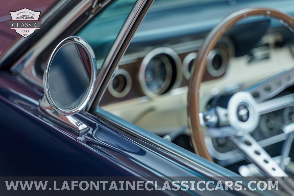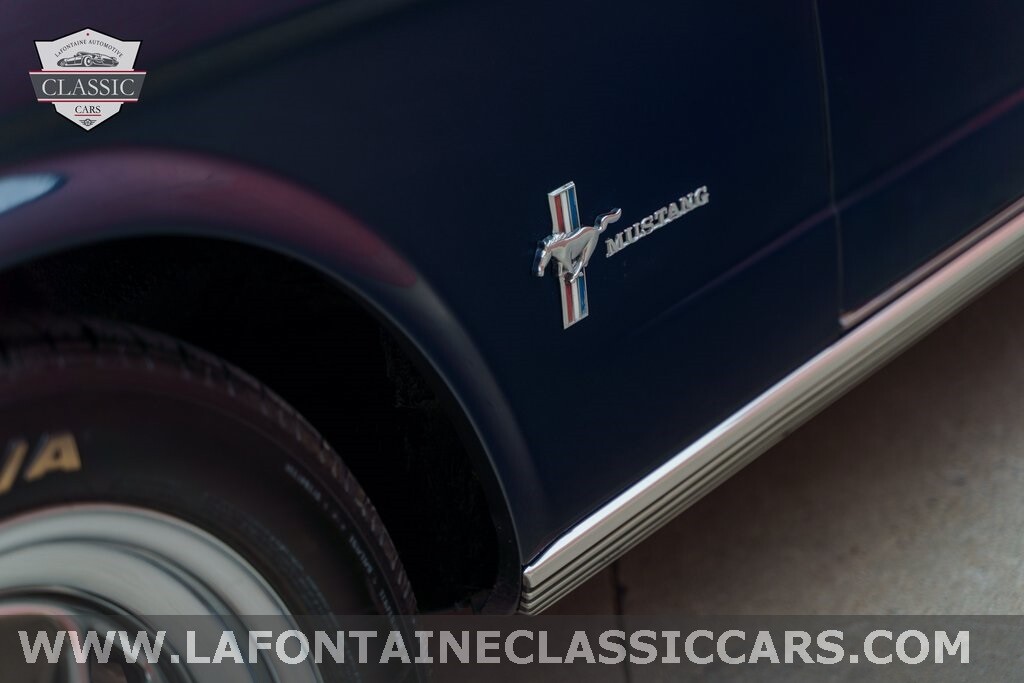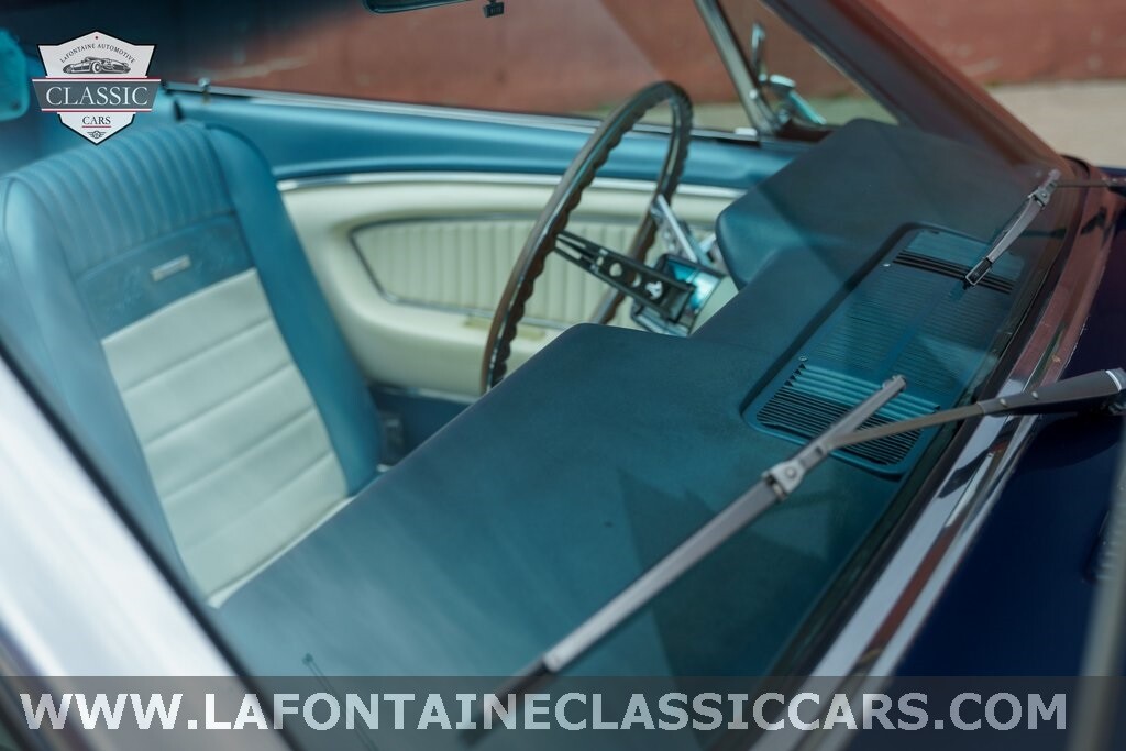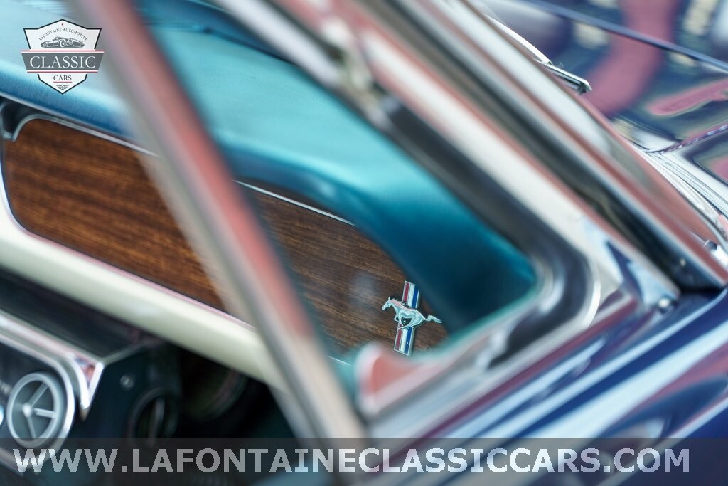 Step inside to a beautifully preserved blue and white pony interior. The cabin is adorned with a deluxe wood steering wheel and a wood grain dash, exuding classic elegance. Additional interior features include: