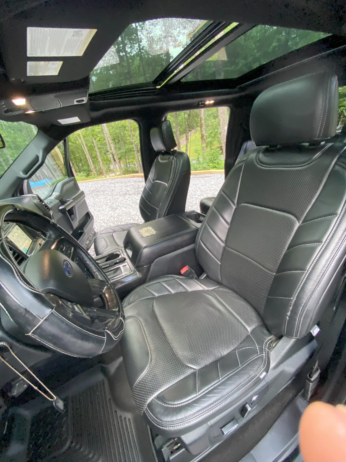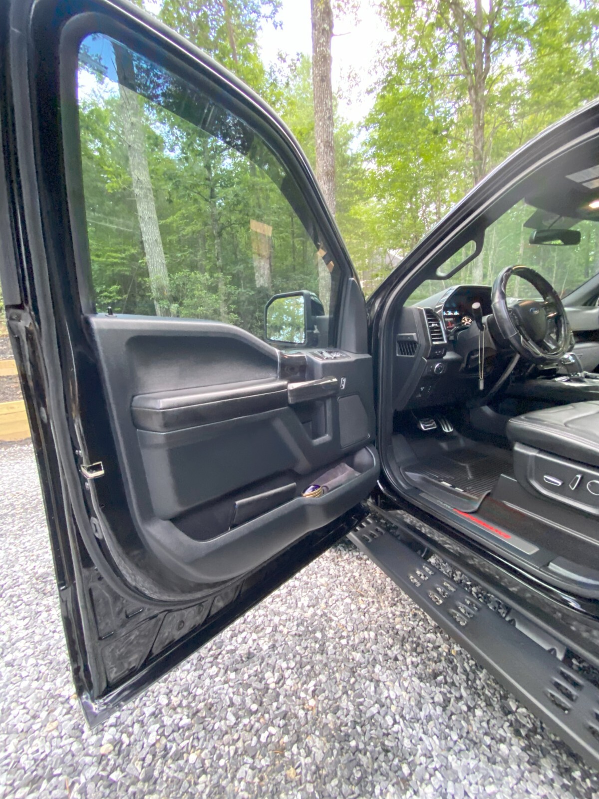 2018 Ford F150 FX4 "BLACK OPS" package with BRAND NEW OEM TRANSMISSION (A FORD OEM PART, updated model with 3 Year Warranty, with Less than 100 miles) Truck is finished in all black with high grade Raptor Leather interior seats and optional Moonroof/Sunroof with perfect condition black headliner.LED Lighting throughout.Suspension, Rough Country 4" lift, sitting on a set of contrasting 18” dark gray STR wheels, black lugs and 35" Micky Thompson All Terrain Tires in close to new condition and Black fender flares all around giving a great wide stance! A well cared for truck. Underside complete chassis and wheel wells are detailed in like new condition, always kept painted in gloss black, never off roaded shows like new. Excellent dependable driver, tight and superfast, great handling with a special tuned 3.5 Twin Turbo, Ecoboost Engine up tuned. Complete Raptor Style Exterior with side fender vents, Front Anodized Bumper System including LED Road Lamp Systems all working. Front Raptor Style Grille with lighting and Raptor Hood Scoop. Optional Raptor Black textured under bumper rock guard and side steps. Rear metal bumper system with dual exhausts and large exhaust tips and awesome sound.Updated LED rear Bed Light, Updated front LED headlight system. Rear bed liner and bed door with spoiler and Raptor style "Ford" applique rear panel.Optional Rhino Roll bar in rear bed with LED Lamp system and twin mounted CB Antennas' all Included with full price offer, a $3,000 Option value.Optional rear Raptor Style metal Bumper with LED License Plate Lights and Raptor style side running boards.Interior,please excuse steering wheel cover, wheel is perfect, full set Rhino Weather Mats in like new condition with original floor mats and great condition original carpets beneath. Interior trim fully finished in beautiful rich "Black Wood Trim"Pictures of Black Wood Trim, not showing their perfect condition.Center console matching seats, in white gray stitched leather with metal console medallion. Full electric vented seats with air condition and heat options.Car is always waxed, with great shiny black paint, however paint does have a few minor hard to see scratches that can be spot repaired, but absolutely no dents or dimples. (adjustment allowance will be made in price) Car runs and tracks perfect, smooth with no vibration and minimum road sound, with 4x4 switch on the go capability.Car always maintained, super dependable, recent Ford Dealership service and maintenance records. 100% Drive ready and a real head turner. All decaling can be easily removed with no damage to paint or finish. There are trucks on the market today with like styling listing well into the mid $100’s that look identical! A Clean CarFax, never in an accident. Garaged in North Georgia, cared for by a serious mature car guy and veteran. Seriously upgraded with all the best accessories available. Enjoy Years of carefree driving on a model correct New Warranteed Ford 10 Speed Transmission. Private Owner call Direct. 561-797-6770 EST time (No Trades Please) Serious buyer offers entertained, view my ebay sellers history. An Extended Bumper to Bumper Warranty is easily available.