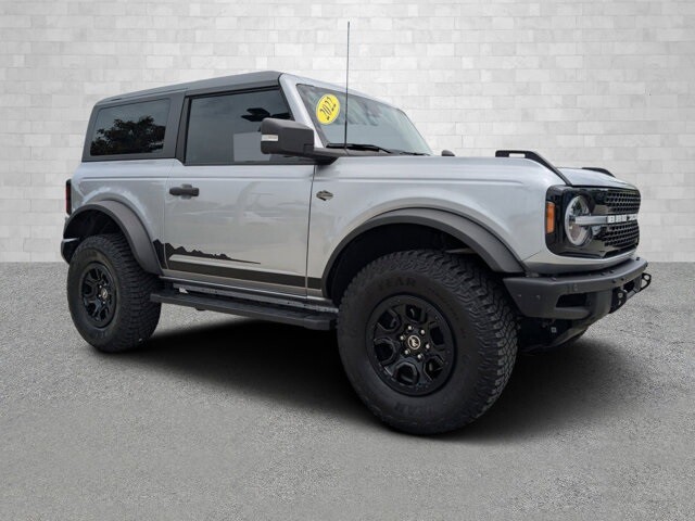 2022 Ford Bronco Iconic Silver Metallic 2D Sport Utility Wildtrak 4WD 10-Speed Automatic 2.7L EcoBoost V6 NAVIGATION, BLUE TOOTH HANDS FREE, PUSH BUTTON START, SMART KEY, Android Auto & Apple CarPlay, 12 LCD Capacitive Touchscreen w/Swipe Capability, 2 Smart Charging USB Ports In Dashboard, 360-Degree Camera, 4.7 Final Drive Ratio, ABS brakes, Adaptive Cruise Control, Additional Sound Deadening, Compass, Electronic Stability Control, Equipment Group 354A Lux Package, Evasive Steering Assist, Front Parking Sensors, Heated door mirrors, Heated Steering Wheel, High Clearance Fender Flares, High Clearance Suspension, Illuminated entry, Information on Demand Panel, Low tire pressure warning, Position-Sensitive Bilstein Shock Absorbers, Radio: B&O Sound System by Bang & Olufsen, Remote keyless entry, Sasquatch Package, Sideview Mirrors, Traction control, Universal Garage Door Opener, Wheels: 17 Black Gloss-Painted Steel, Wireless Charging Pad.