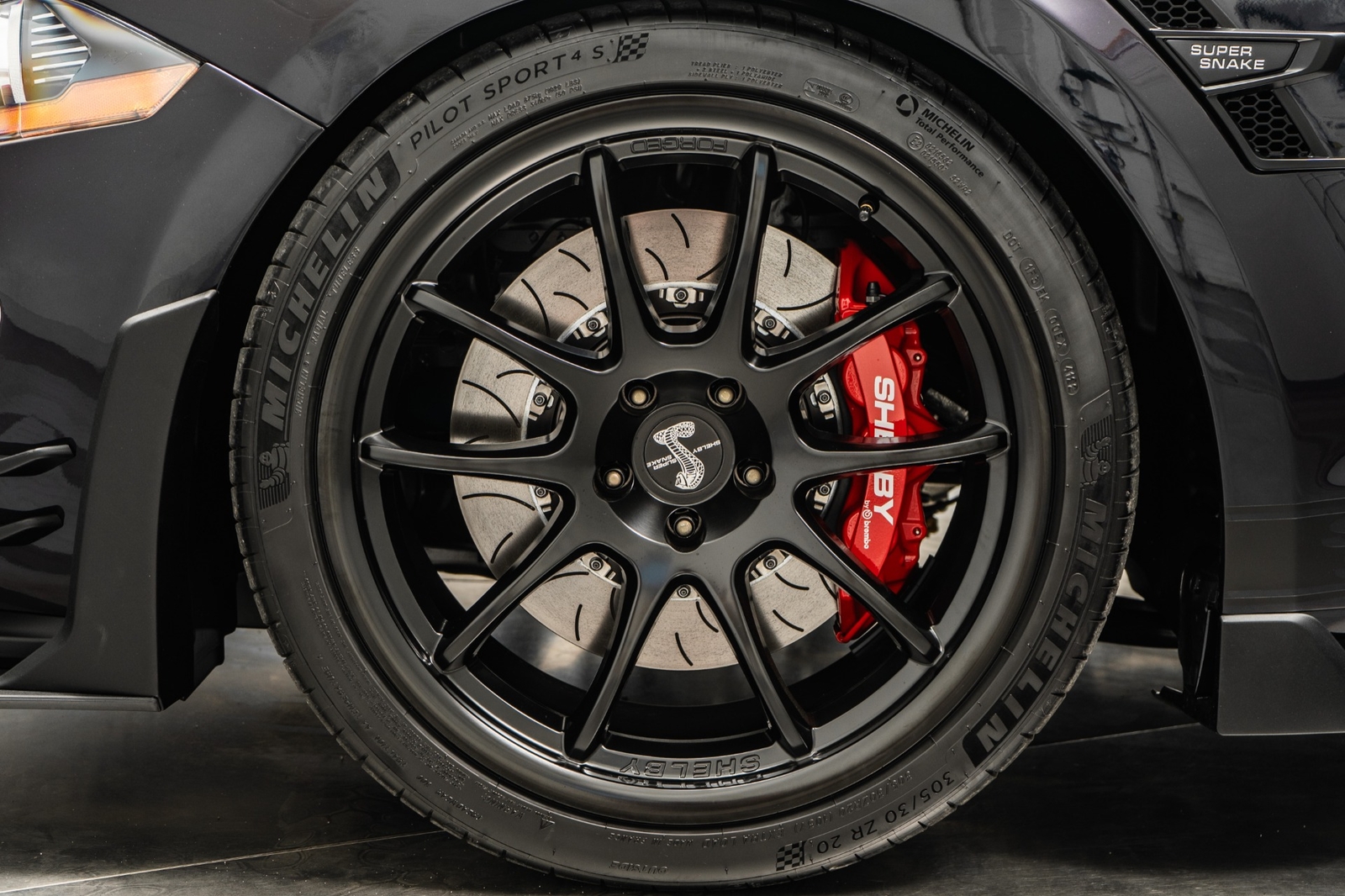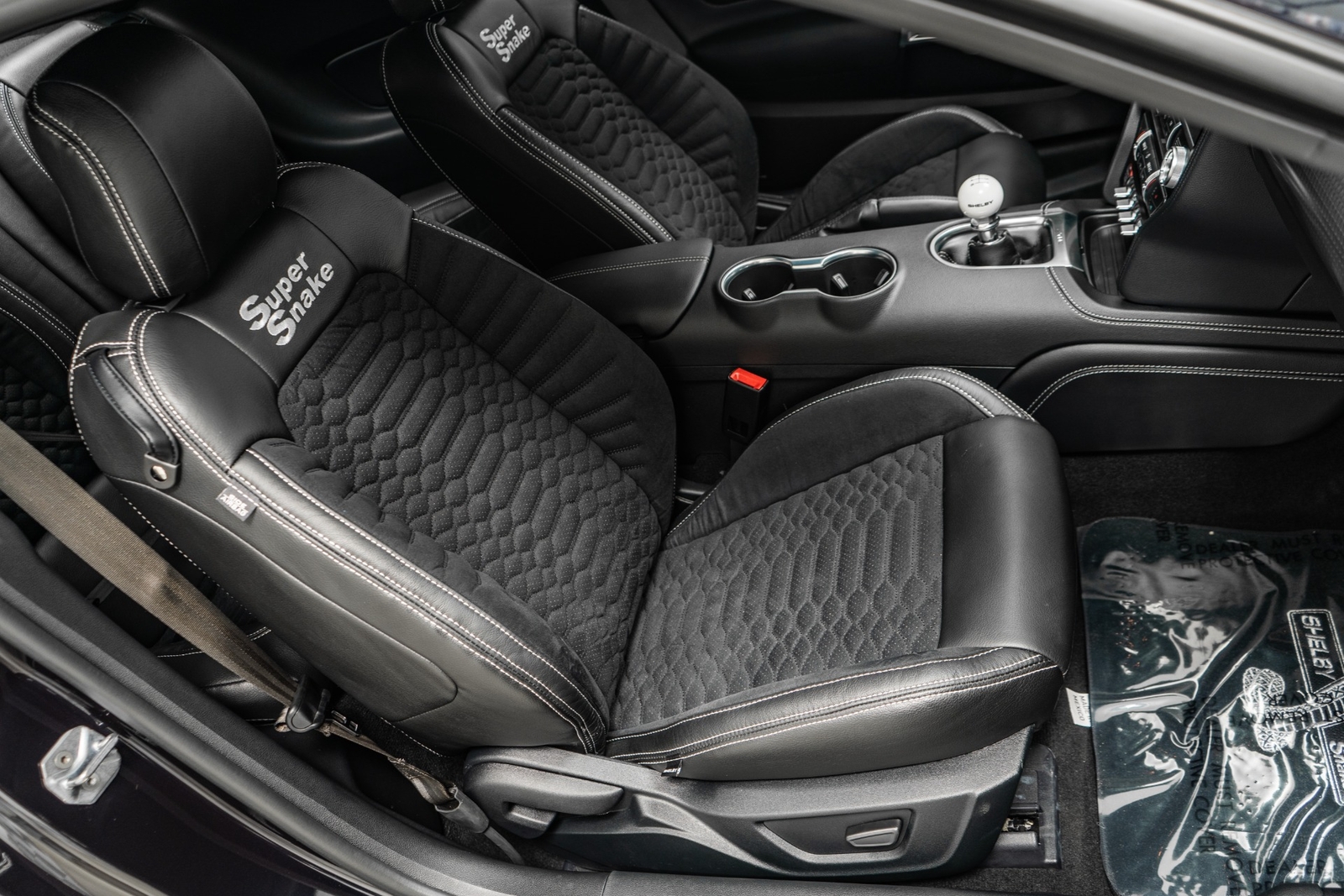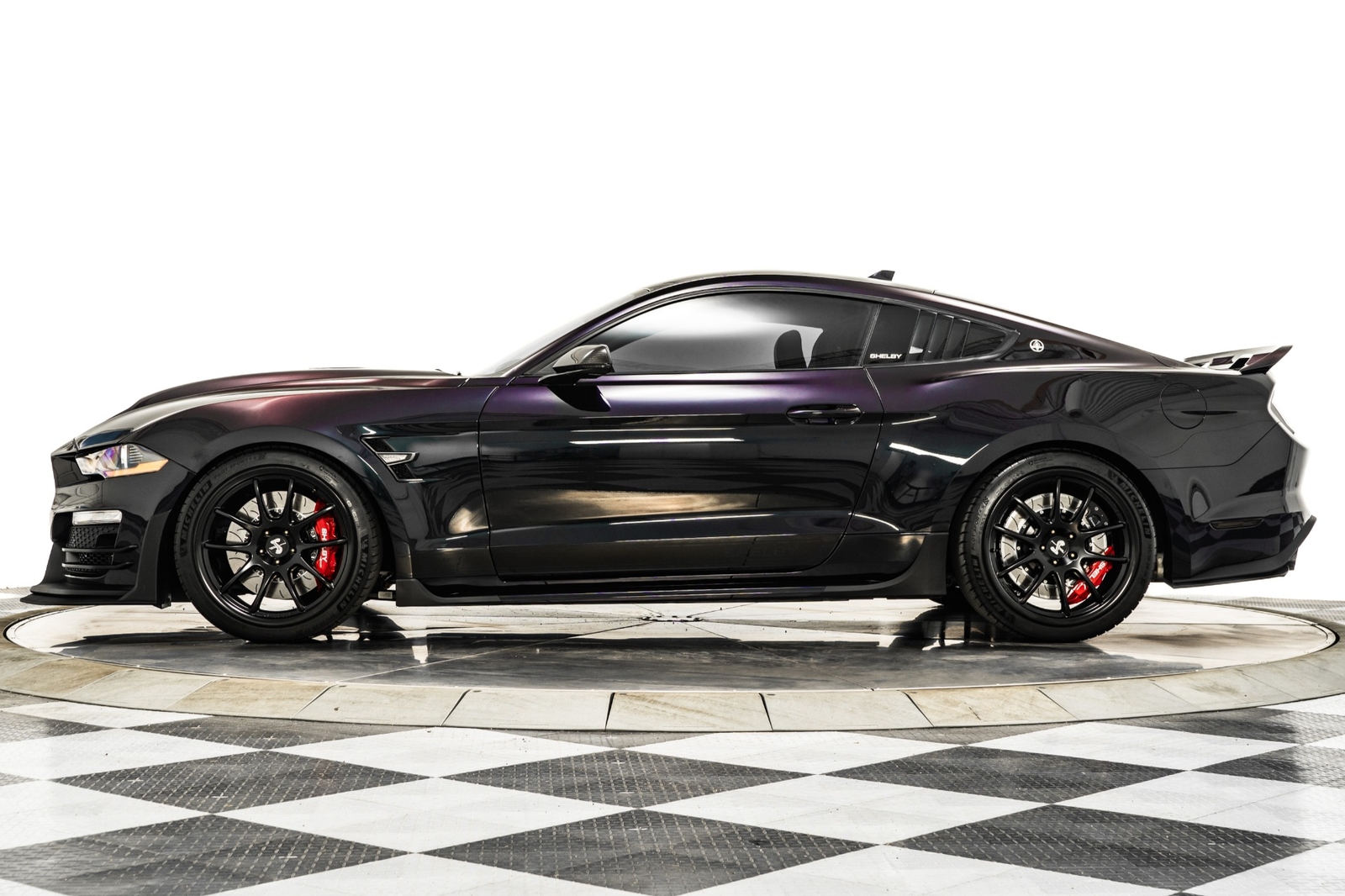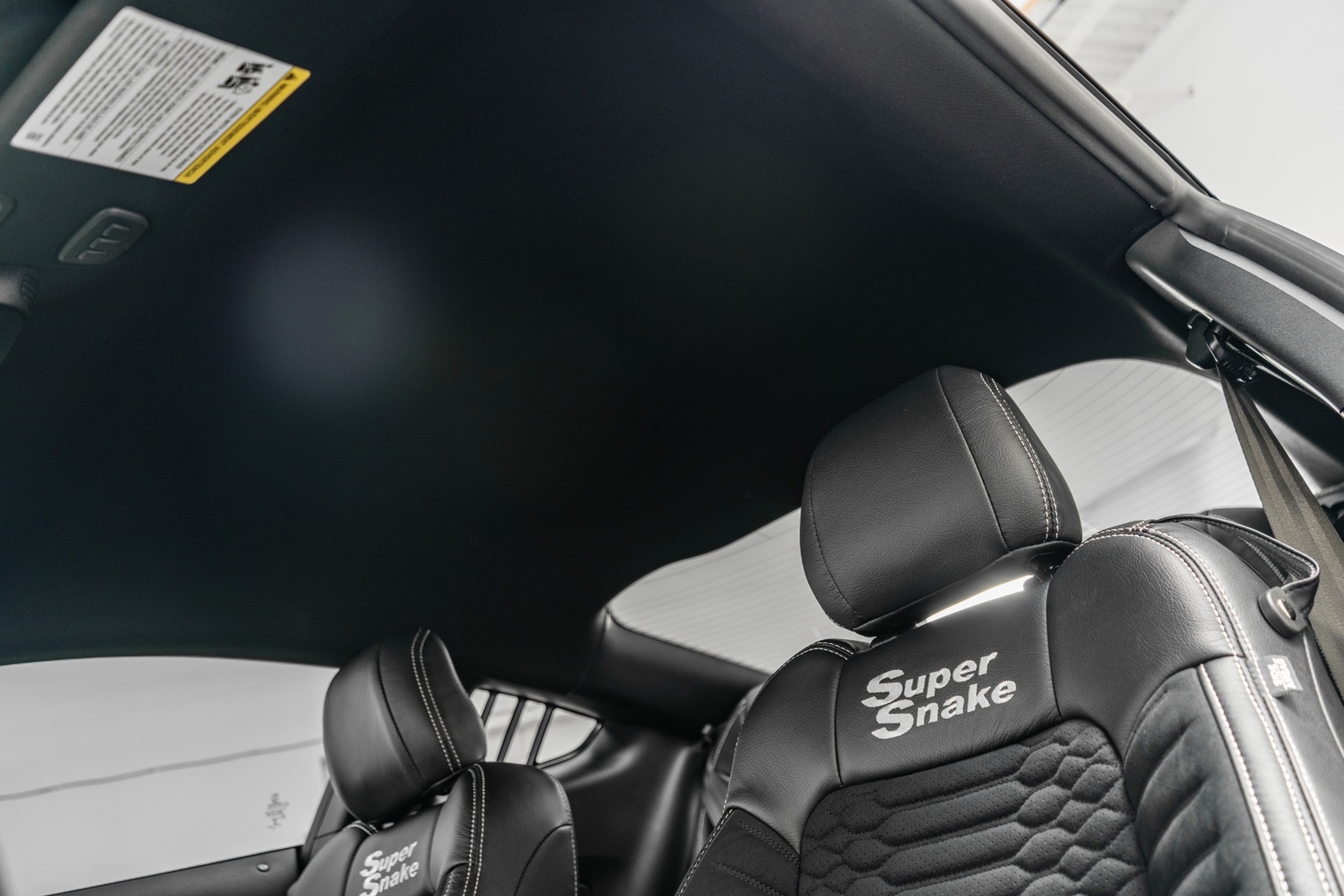 We have just added to our extensive exotic car inventory a beautiful 2022 Ford Shelby Super Snake in Mischevous Purple over Ebony leather interior and only 201 miles. This Super Snake is loaded with the Shelby Super Snake Package which includes: Shelby Whipple-supercharged 5 liter V8 with more than 825 horsepower, 6 speed manual transmission, a polished supercharger, a high flow billet throttle body, a heavy duty cooling system, larger halfshafts, a VERY short throw shifter, Brembo performance 6 piston front and 4 piston rear brakes, Shelby ECU tune, Shelby body kit with wider front fenders to accommodate 11 inch wide wheels, Super Snake graphics, Shelby specific badging, custom Shelby two-tone leather and Alcantara, 20" forged aluminum wheels, Shelby floor mats and much more. The car is built on a Mustang GT Premium which incudes option package 401A (premier interior trim, Ford safe and smart package, adaptive cruise control, voice activated touchscreen navigation), heated and ventilated front seats, Magneride suspension, the GT Performance package with a Torsen rear differential, a 12 speaker Bang and Olufsen audio system and more. The Super Snake package added $82,995 to the price of the base car for a total cost of $140,770.