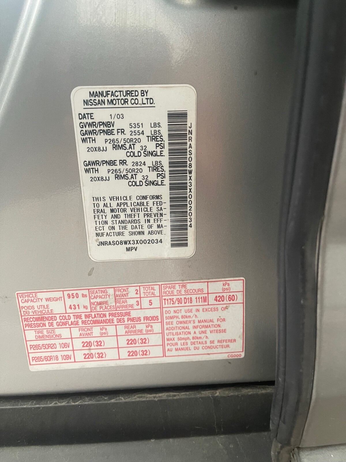 This 2003 INFINITI FX35 is a great option for anyone looking for a project vehicle. The owner has had it for a year and it has been well-maintained. The car has a sleek grey color and has a mileage of 216000. It was a daily driver and needs some work (Motor will need to be replaced, but it is still a great choice for anyone who needs parts or an project.Seller's Notes
