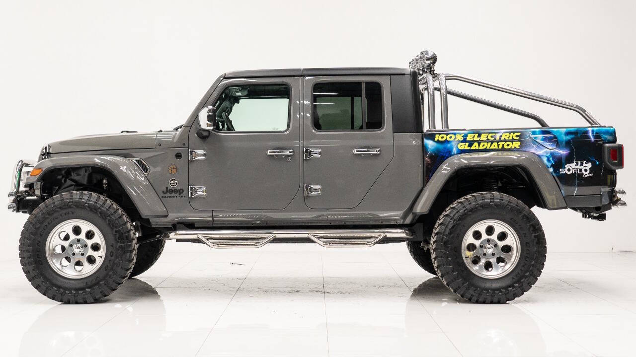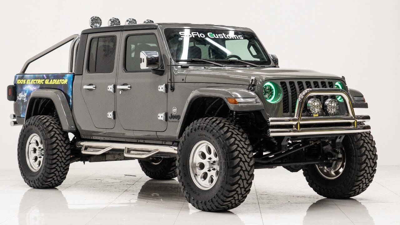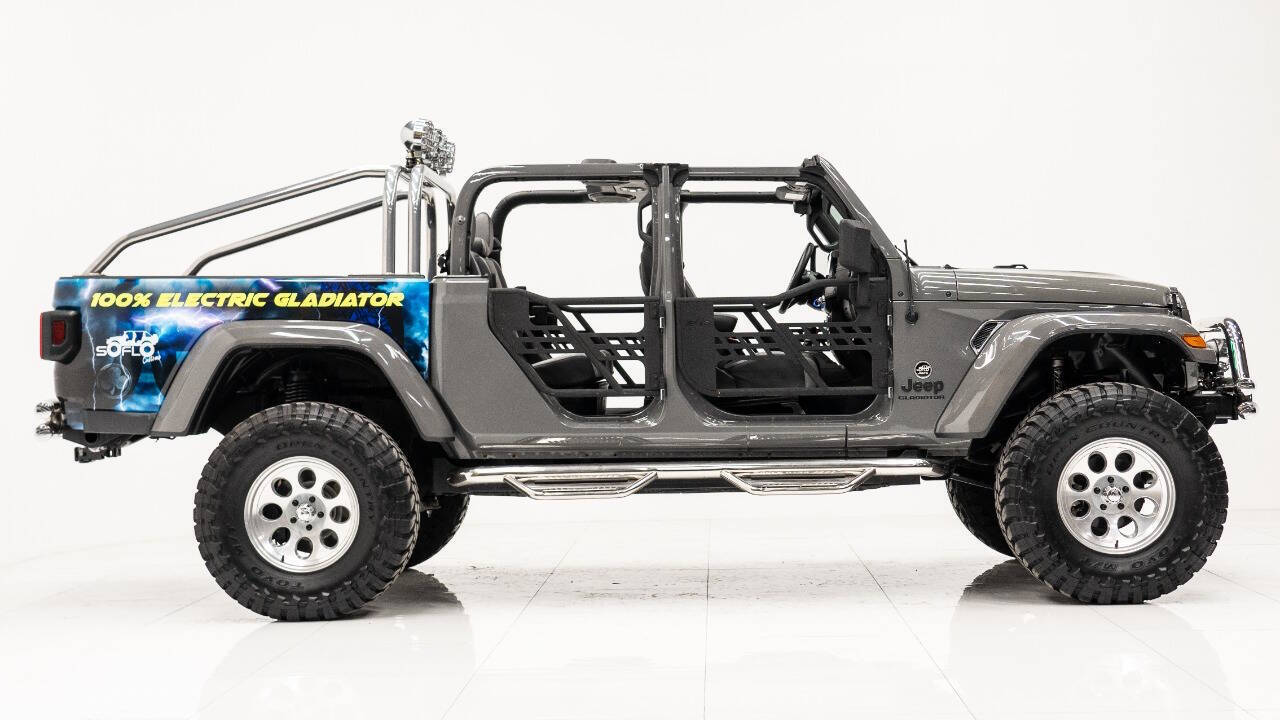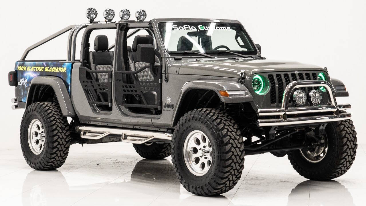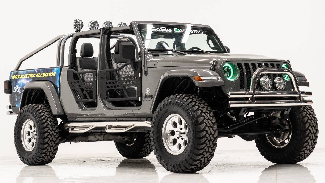 This is the world's first and only all - electric Jeep Gladiator - it is 100% electric Motor: Tesla Powerplant (ALL ELECTRIC)YEAR: 2021 TOP: Hardtop COLOR: High Gloss Sting Gray and Chrome TRIM: SoFlo Custom LIFT: 4” TIRES: 37” RIMS: Chrome Retro GRILL: Chrome Bumper with Spot Lights SIDESTEPS: Chrome Runners HEADLIGHTS: Halo SPECIAL FEATURES: Chrome Rollcage Covered with KC Lights WEATHERPROOF INTERIOR: Black and Gray Diamond WHAT MAKES THIS TRUCK SPECIAL: CALL US OR COME SEE THESE CUSTOM TRUCKS IN PERSON Location 1: 1430 W Broward, BLVD Fort Lauderdale, FL 33312 855-873-7632 Location 2: 2720 Okeechobee BLVD West Palm Beach, FL 33406 855-873-7632 NEW E-PURCHASE SYSTEM - Customers never have to leave the comfort of their home couch to purchase a SoFlo Jeeps or Apocalypse 6x6 truck. We offer online payment, financing and video walkarounds. We ship our trucks worldwide to any and every location. Have a trade-in? Not a problem at all, as WE ACCEPT TRADE-INS NATIONWIDE AND YOU NEVER PAY TO SHIP IT. We make buying and receiving your dream truck beyond simple.