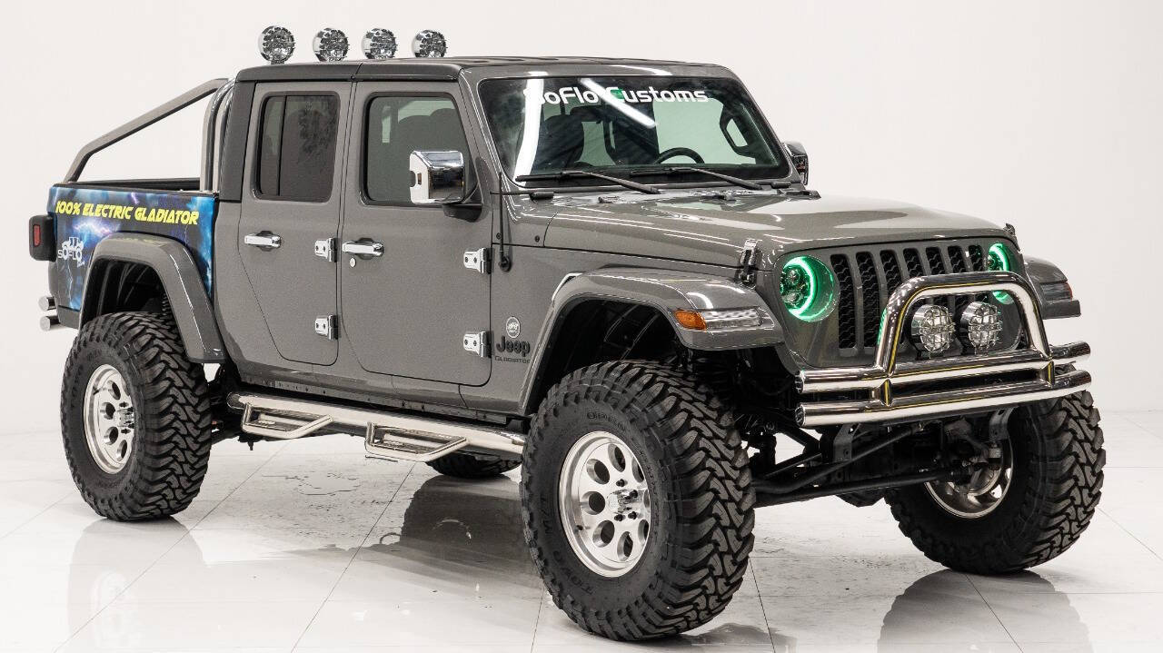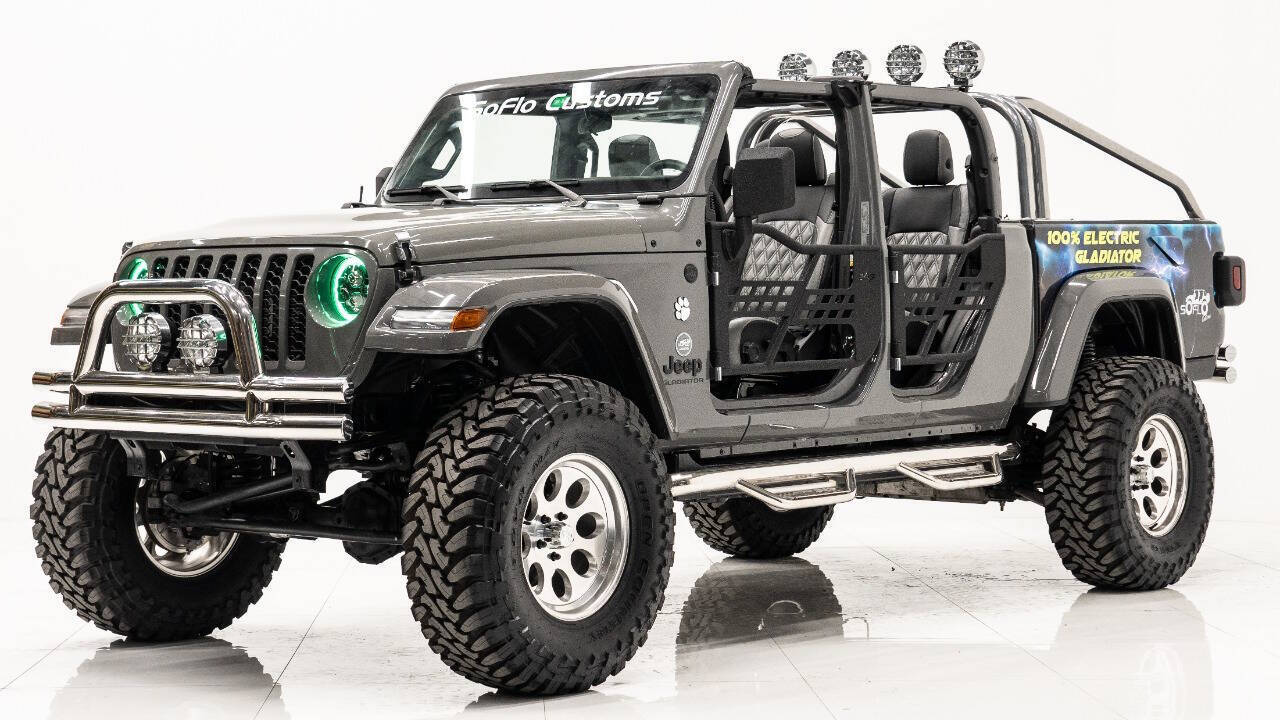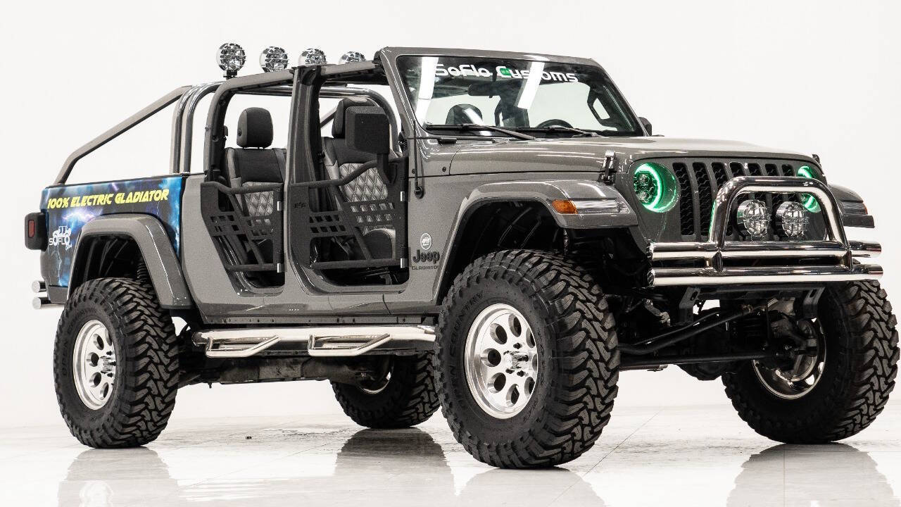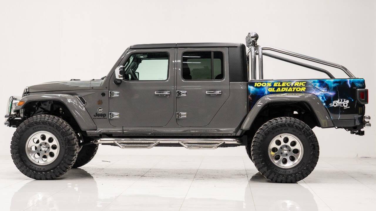 This is the world's first and only all - electric Jeep Gladiator - it is 100% electric Motor: Tesla Powerplant (ALL ELECTRIC)YEAR: 2021 TOP: Hardtop COLOR: High Gloss Sting Gray and Chrome TRIM: SoFlo Custom LIFT: 4” TIRES: 37” RIMS: Chrome Retro GRILL: Chrome Bumper with Spot Lights SIDESTEPS: Chrome Runners HEADLIGHTS: Halo SPECIAL FEATURES: Chrome Rollcage Covered with KC Lights WEATHERPROOF INTERIOR: Black and Gray Diamond WHAT MAKES THIS TRUCK SPECIAL: CALL US OR COME SEE THESE CUSTOM TRUCKS IN PERSON Location 1: 1430 W Broward, BLVD Fort Lauderdale, FL 33312 855-873-7632 Location 2: 2720 Okeechobee BLVD West Palm Beach, FL 33406 855-873-7632 NEW E-PURCHASE SYSTEM - Customers never have to leave the comfort of their home couch to purchase a SoFlo Jeeps or Apocalypse 6x6 truck. We offer online payment, financing and video walkarounds. We ship our trucks worldwide to any and every location. Have a trade-in? Not a problem at all, as WE ACCEPT TRADE-INS NATIONWIDE AND YOU NEVER PAY TO SHIP IT. We make buying and receiving your dream truck beyond simple.