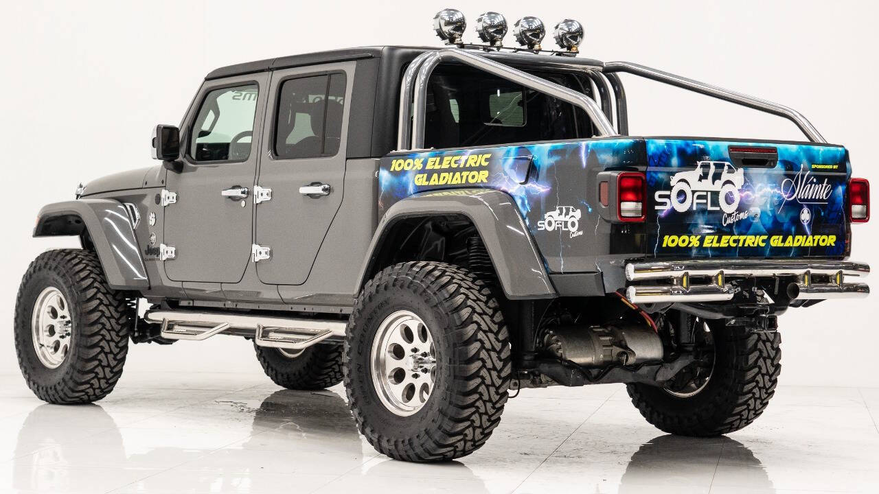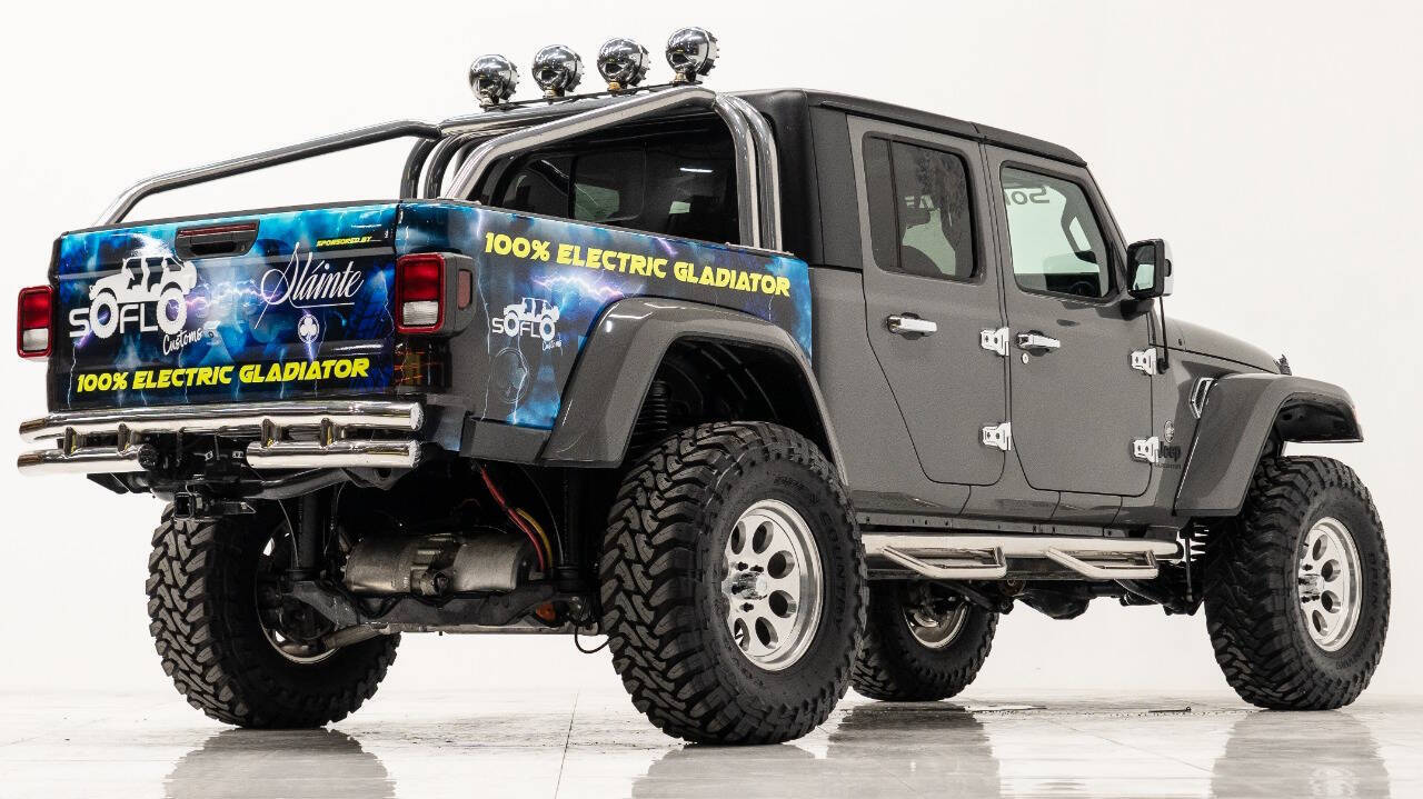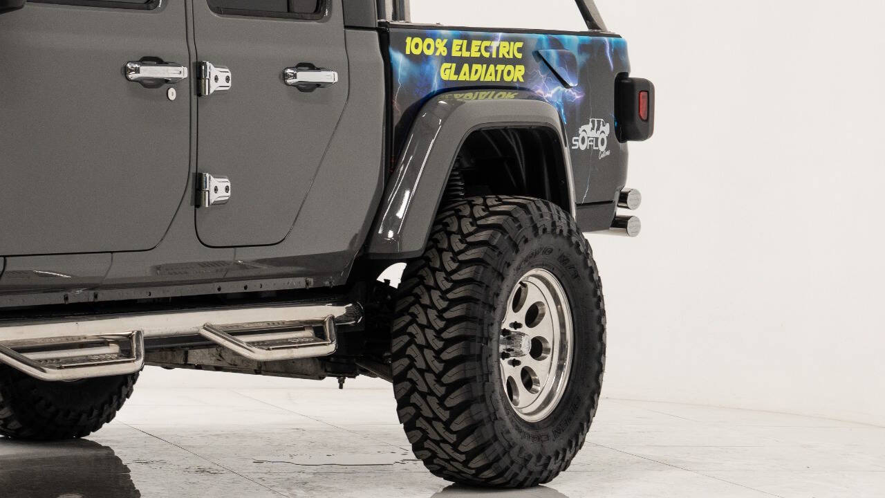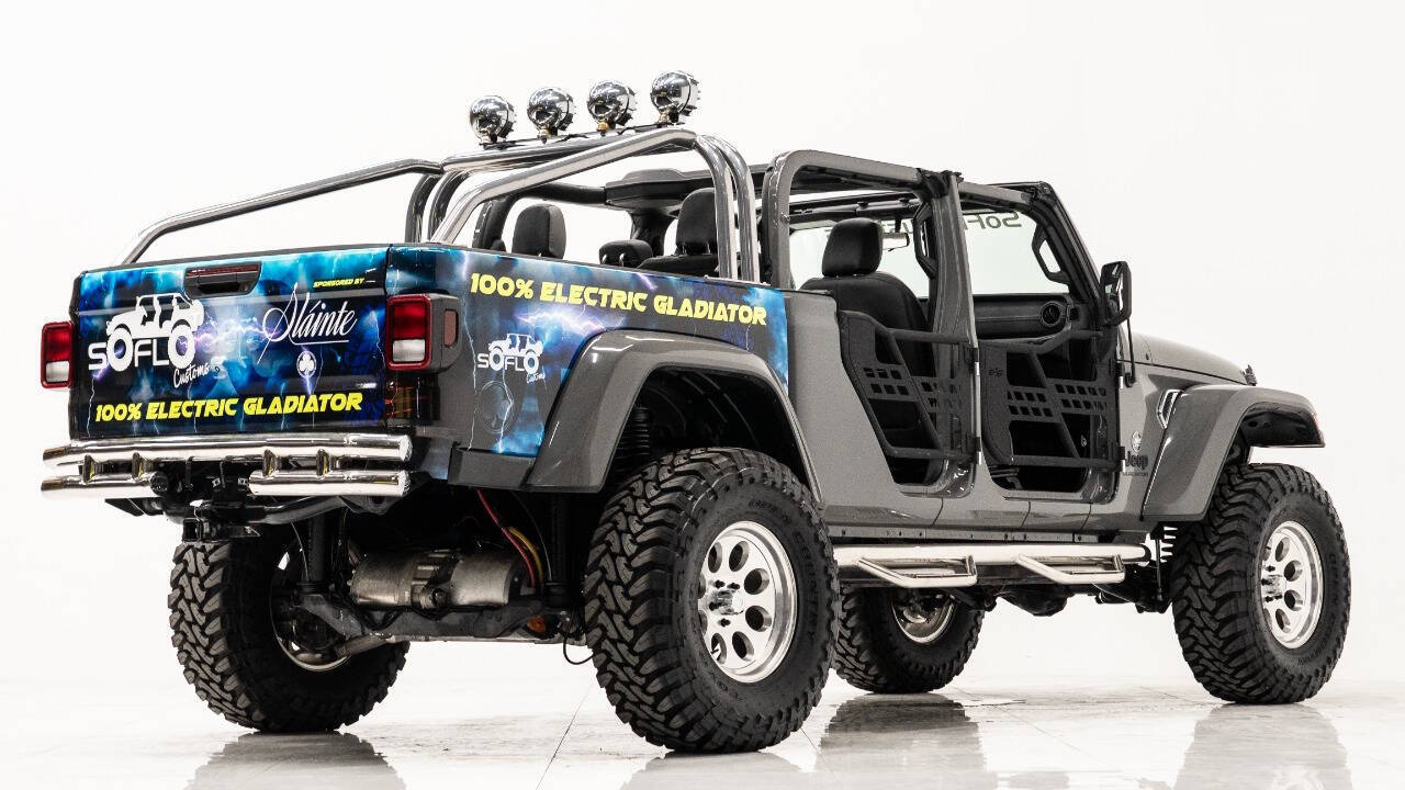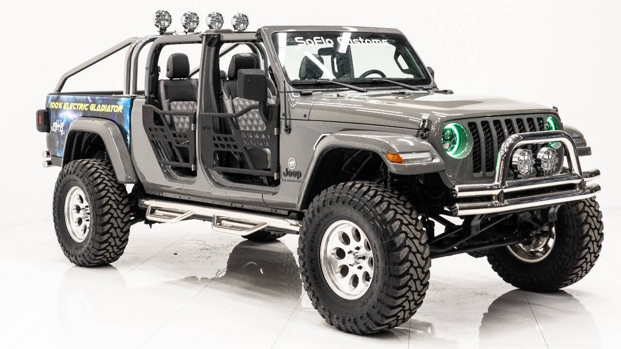 This is the world's first and only all - electric Jeep Gladiator - it is 100% electric Motor: Tesla Powerplant (ALL ELECTRIC)YEAR: 2021 TOP: Hardtop COLOR: High Gloss Sting Gray and Chrome TRIM: SoFlo Custom LIFT: 4” TIRES: 37” RIMS: Chrome Retro GRILL: Chrome Bumper with Spot Lights SIDESTEPS: Chrome Runners HEADLIGHTS: Halo SPECIAL FEATURES: Chrome Rollcage Covered with KC Lights WEATHERPROOF INTERIOR: Black and Gray Diamond WHAT MAKES THIS TRUCK SPECIAL: CALL US OR COME SEE THESE CUSTOM TRUCKS IN PERSON Location 1: 1430 W Broward, BLVD Fort Lauderdale, FL 33312 855-873-7632 Location 2: 2720 Okeechobee BLVD West Palm Beach, FL 33406 855-873-7632 NEW E-PURCHASE SYSTEM - Customers never have to leave the comfort of their home couch to purchase a SoFlo Jeeps or Apocalypse 6x6 truck. We offer online payment, financing and video walkarounds. We ship our trucks worldwide to any and every location. Have a trade-in? Not a problem at all, as WE ACCEPT TRADE-INS NATIONWIDE AND YOU NEVER PAY TO SHIP IT. We make buying and receiving your dream truck beyond simple.