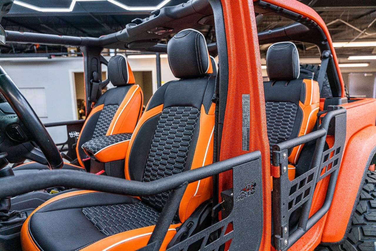 YEAR: 2024 COLOR: Off-Road Armor - Orange TRIM: SoFlo Lifted Custom Wrangler LIFT: 3.5” TIRES: 37” RIMS: 22 Black Flame (NO ORANGE) HOOD: Predator GRILL: Armor Grumper with Winch SIDESTEPS: Steel HEADLIGHTS: 9 Halo SPECIAL FEATURES: Hard top WEATHERPROOF INTERIOR: Cheetos WHAT MAKES THIS TRUCK SPECIAL: This vehicle is covered in our exclusive Kevlar coating that takes over 150 man hours to sand, prep, prime and the blast - this protective coating doesn't just look amazing but its meant to deflect rocks, branches and anything an off-road trail can throw at it. CALL US OR COME SEE THESE CUSTOM TRUCKS IN PERSON Location 1: 1430 W Broward, BLVD Fort Lauderdale, FL 33312 855-873-7632 Location 2: 2720 Okeechobee BLVD West Palm Beach, FL 33406 855-873-7632 NEW E-PURCHASE SYSTEM - Customers never have to leave the comfort of their home couch to purchase a SoFlo Jeeps or Apocalypse 6x6 truck. We offer online payment, financing and video walkarounds. We ship our trucks worldwide to any and every location. Have a trade-in? Not a problem at all, as WE ACCEPT TRADE-INS NATIONWIDE AND YOU NEVER PAY TO SHIP IT. We make buying and receiving your dream truck beyond simple. ****ALL PIPE DOORS ARE EXTRA AND NOT INCLUDED IN PRICE OF THE TRUCK**** Call salesman for more information -855-873-7632