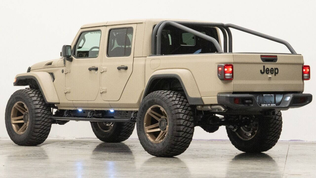 YEAR: 2023 COLOR: Off-Road Armor - Gobi Color TRIM: SoFlo Lifted Custom LIFT: 4” TIRES: 38 Gripper RIMS: 20 Bronze SFJ HOOD: Predator GRILL: Steel Stubby with Winch SIDESTEPS: Power Steps HEADLIGHTS: 9 Halo SPECIAL FEATURES: Double Stacked Cube Lights, Roll Cage WEATHERPROOF INTERIOR: Moroccan Spice WHAT MAKES THIS TRUCK SPECIAL: This vehicle is covered in our exclusive Kevlar coating that takes over 150 man hours to sand, prep, prime and the blast - this protective coating doesn't just look amazing but its meant to deflect rocks, branches and anything an off-road trail can throw at it. CALL US OR COME SEE THESE CUSTOM TRUCKS IN PERSON Location 1: 1430 W Broward, BLVD Fort Lauderdale, FL 33312 855-873-7632 Location 2: 2720 Okeechobee BLVD West Palm Beach, FL 33406 855-873-7632 NEW E-PURCHASE SYSTEM - Customers never have to leave the comfort of their home couch to purchase a SoFlo Jeeps or Apocalypse 6x6 truck. We offer online payment, financing and video walkarounds. We ship our trucks worldwide to any and every location. Have a trade-in? Not a problem at all, as WE ACCEPT TRADE-INS NATIONWIDE AND YOU NEVER PAY TO SHIP IT. We make buying and receiving your dream truck beyond simple. ****ALL PIPE DOORS ARE EXTRA AND NOT INCLUDED IN PRICE OF THE TRUCK**** Call salesman for more information -855-873-7632