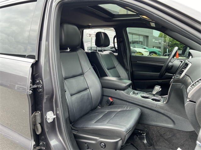 This Grand Cherokee Limited is nicely equipped with Quick Order Package 2BH, 4WD, 1-Year SiriusXM Guardian Trial, 3.45 Rear Axle Ratio, 4-Wheel Disc Brakes, 5-Year SiriusXM Traffic Service, 5-Year SiriusXM Travel Link Service, 6 Speakers, 8.4 Touchscreen Display, ABS brakes, Air Conditioning, Alloy wheels, AM/FM radio: SiriusXM, Anti-whiplash front head restraints, Apple CarPlay, Apple CarPlay/Android Auto, Audio memory, Auto-dimming door mirrors, Auto-dimming Rear-View mirror, Automatic temperature control, Brake assist, Bumpers: body-color, Chrome Exterior Mirrors, Compass, Delay-off headlights, Driver door bin, Driver vanity mirror, Dual front impact airbags, Dual front side impact airbags, Electronic Stability Control, Engine Oil Cooler, For Details Visit , Four wheel independent suspension, Front anti-roll bar, Front Bucket Seats, Front Center Armrest w/Storage, Front dual zone A/C, Front fog lights, Front License Plate Bracket, Front reading lights, Fully automatic headlights, Garage door transmitter, Google Android Auto, GPS Antenna Input, GPS Navigation, HD Radio, Heated door mirrors, Heated front seats, Heated rear seats, Heated steering wheel, Illuminated entry, Integrated Voice Command w/Bluetooth, Knee airbag, Leather Shift Knob, Leather Trimmed Bucket Seats, Low tire pressure warning, Memory seat, Normal Duty Suspension, Occupant sensing airbag, Outside temperature display, Overhead airbag, Overhead console, Panic alarm, ParkView Rear Back-Up Camera, Passenger door bin, Passenger vanity mirror, Power door mirrors, Power driver seat, Power Liftgate, Power passenger seat, Power steering, Power Sunroof (DISC), Power windows, Radio data system, Radio: Uconnect 4 w/7 Display, Radio: Uconnect 4C Nav w/8.4 Display, Rear anti-roll bar, Rear reading lights, Rear seat center armrest, Rear window defroster, Rear window wiper, Remote keyless entry, Roof rack: rails only, Security system, SiriusXM Traffic Plus, SiriusXM Travel Link, Speed control, Speed-Sensitive Wipers, Split folding rear seat, Spoiler, Steering wheel mounted audio controls, Tachometer, Telescoping steering wheel, Tilt steering wheel, Traction control, Trip computer, Turn signal indicator mirrors, USB Host Flip, Variably intermittent wipers, and Wheels: 18 x 8.0 Tech Gray AluminuM.
