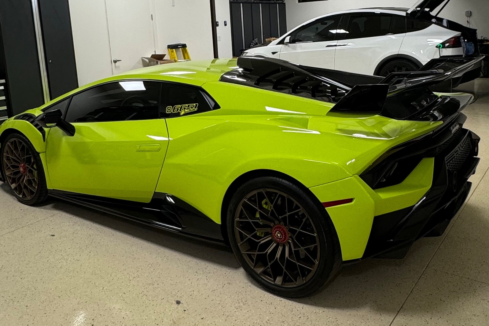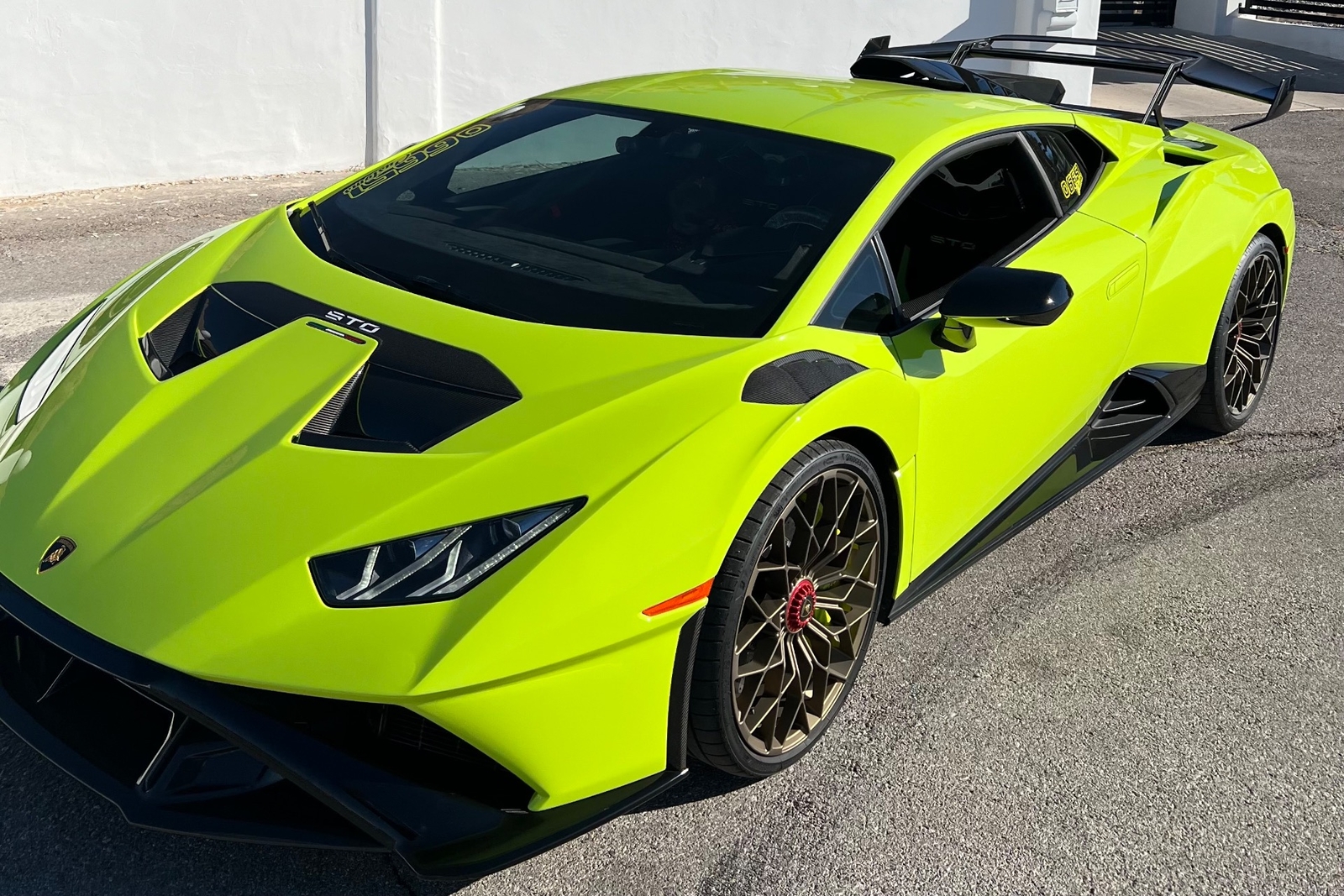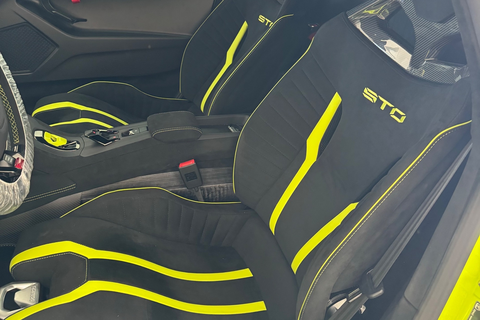 Externally, the Lamborghini Huracan STO is finished in a striking Verde Scandal paint color, ensuring that this supercar turns heads wherever it goes. The bold and distinctive design of the Huracan STO is a true reflection of Lamborghini's iconic style and performance heritage.