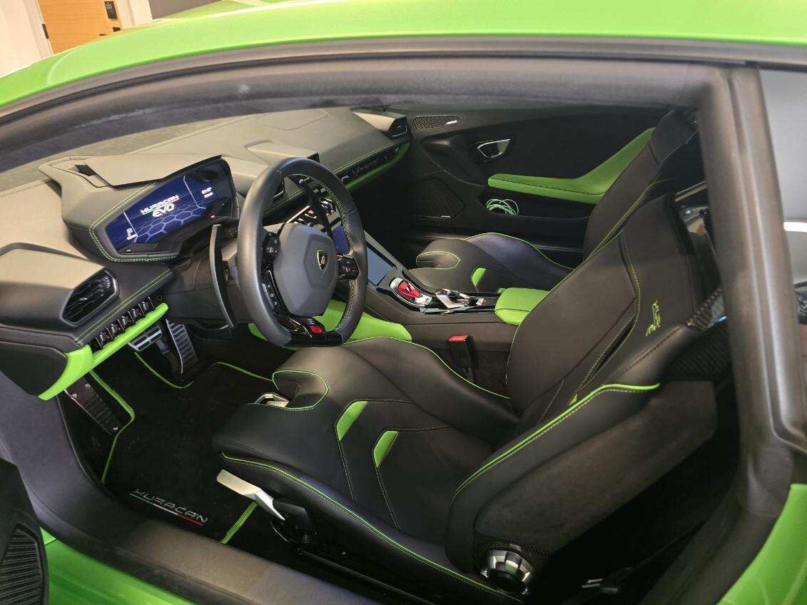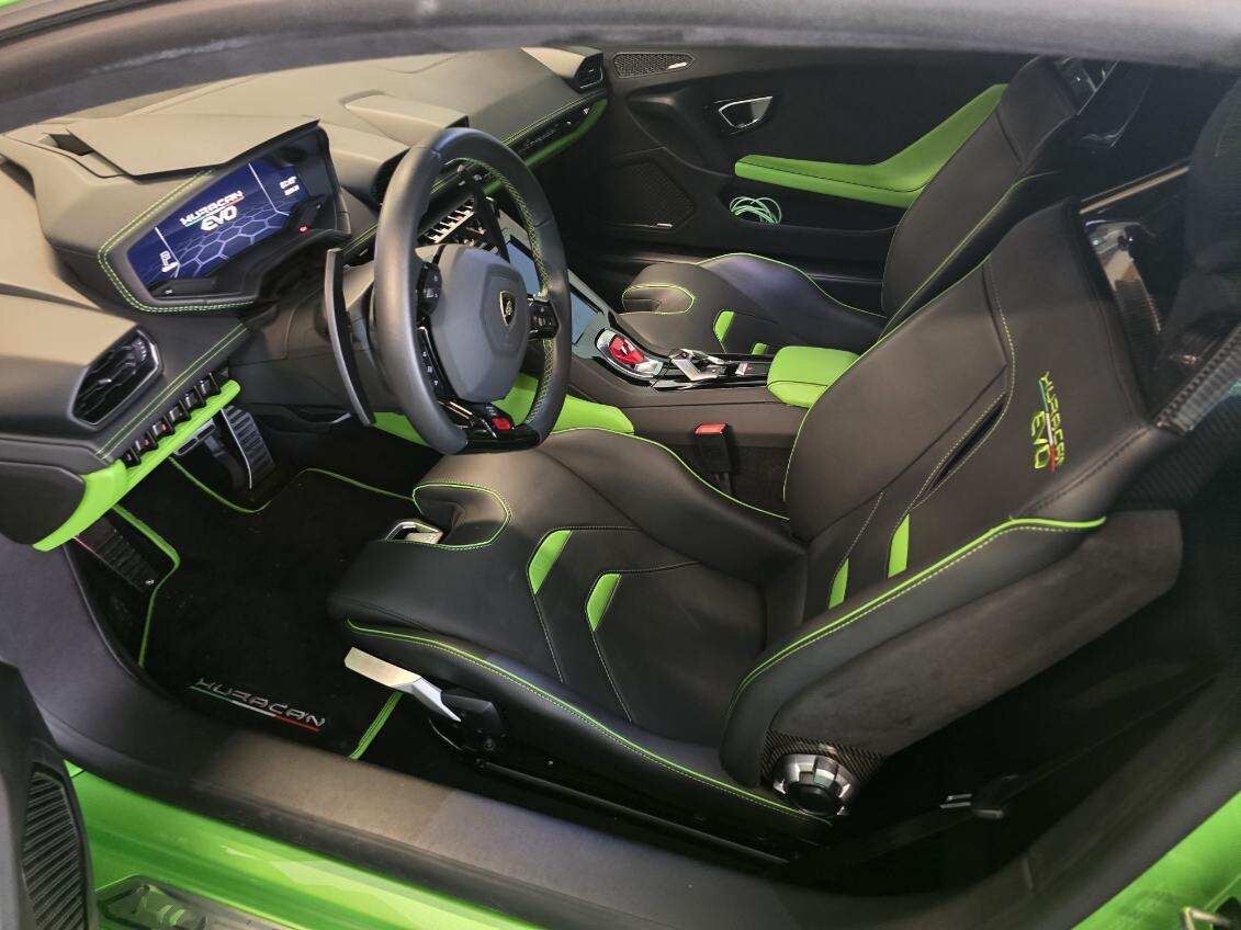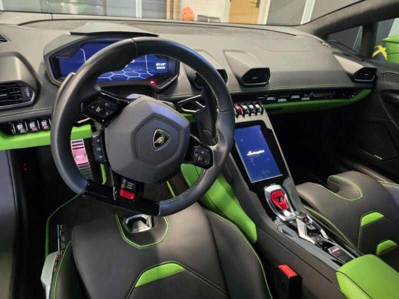 Complementing the striking interior is the exterior paint color in Verde Selvans, a vibrant and eye-catching shade that perfectly complements the Lamborghini's aggressive styling. This unique color choice ensures that the Huracan EVO stands out from the crowd and commands attention wherever it goes.