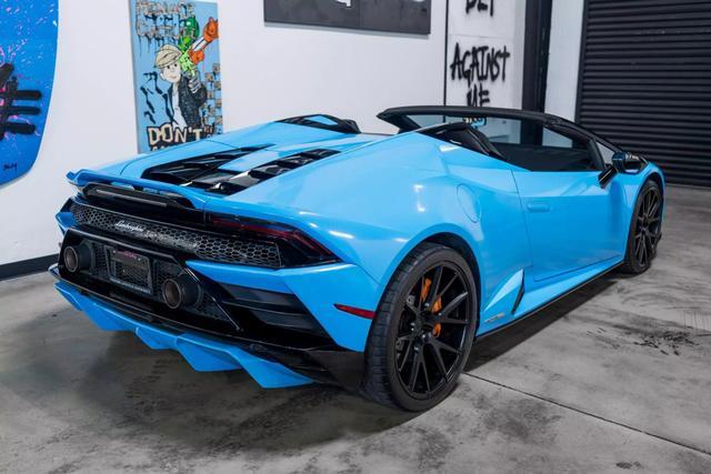 The 2021 Lamborghini Huracan EVO RWD Spyder is a high-performance convertible sports car that combines the thrill of open-air driving with Lamborghini's renowned engineering and design. Here are the key features and specifications:
