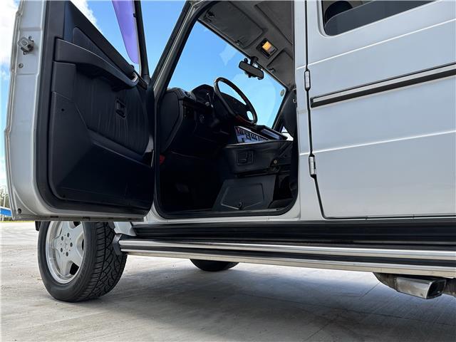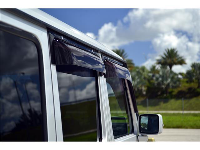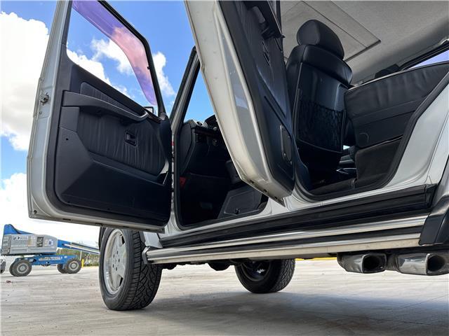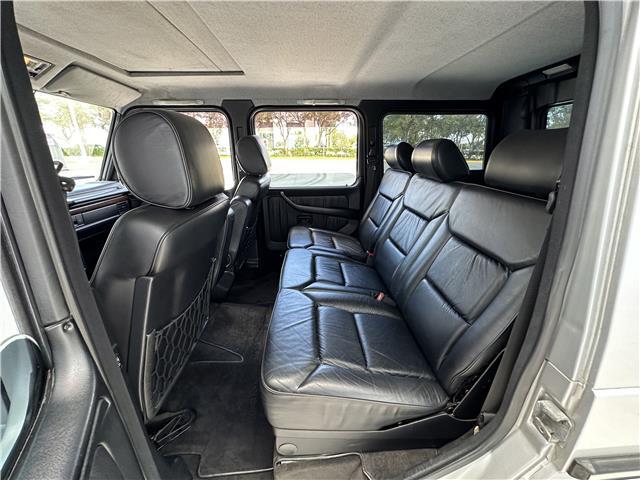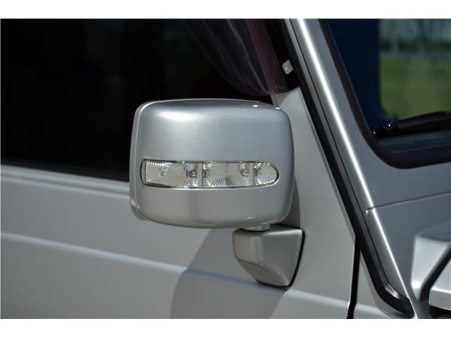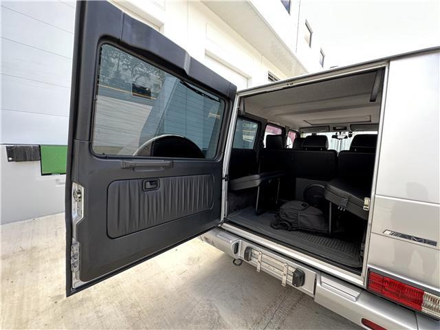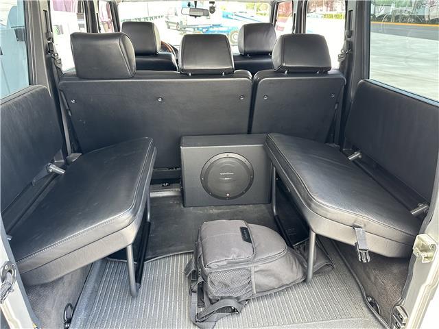 Finished in Brilliant Silver Metallic (744) over black leather upholstery, equipment includes 18? AMG wheels, three locking differentials, optional inward-facing folding jump seats, heated and power-adjustable front seats, cruise control, automatic climate control, and a Japanese market Pioneer head unit with Apple Car Play and a rear mounted sub woofer.