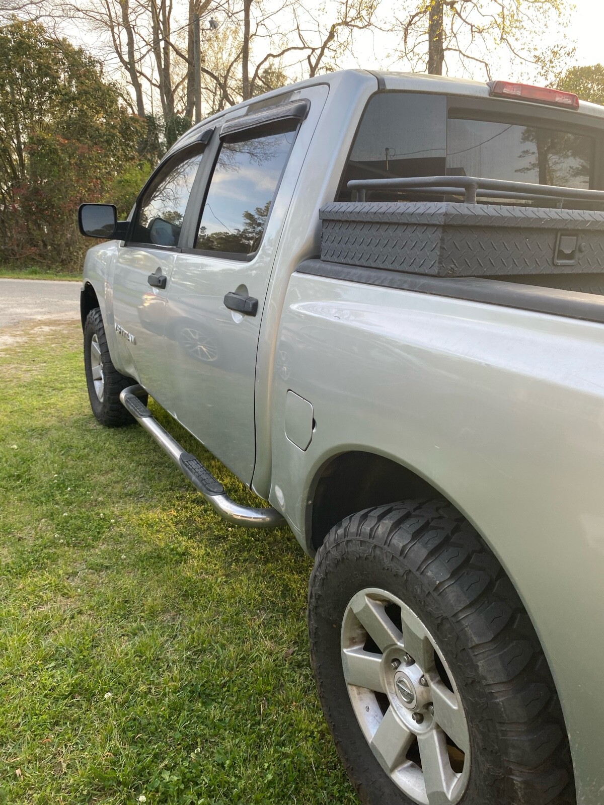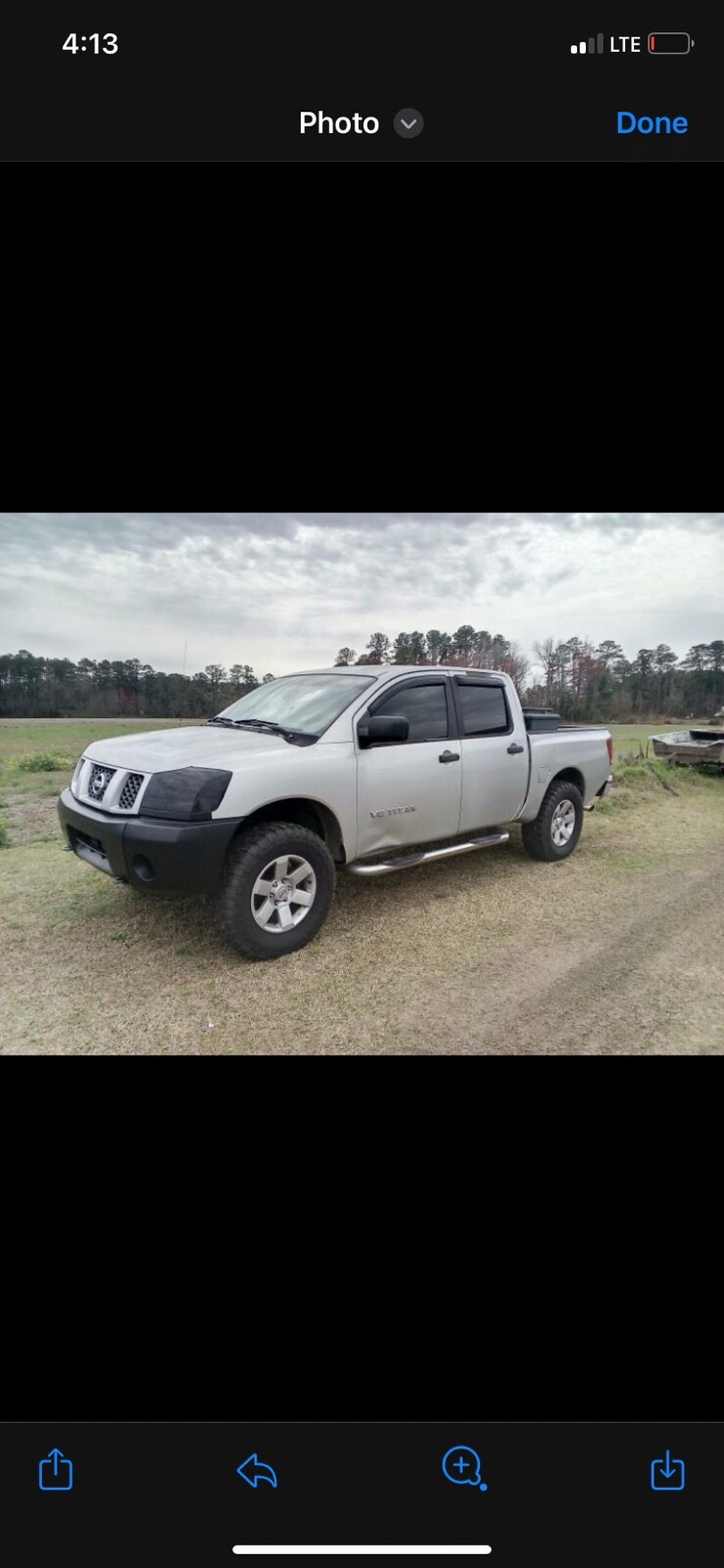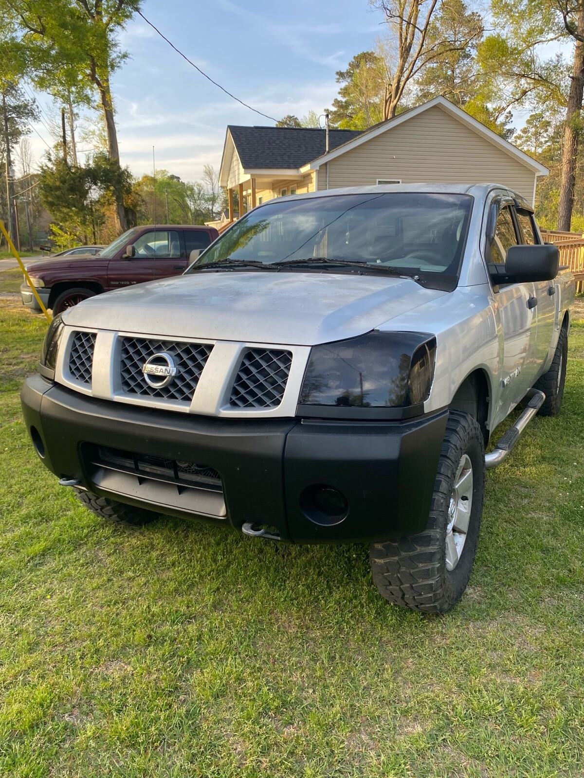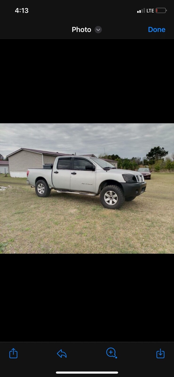 Nissan Titan, Clean title, only used to go pick up hay for horse or pull small horse trailer with my pony, truck always turn head, even though it need touch up paint on hood and top of truck. Also has two dents as seen in pictures. It has mud tires, straight pipes had it sounding really good like a roar, has leather seat covers all around, would be a good high school student truck has touch screen Bluetooth radio, Underglow lights blue and inside changes colors. Great tire treads. Ac/heat works perfect. Oil pan light came on twice and I just parked it bc it went off then came back on. Family member told me not to drive until I see mechanic and I don’t want to put any money into it bc I’m about to get me a new truck for my birthday in a few months so my loss your gain. Work truck only. It’s a fair price bc I need for down payment.Seller's Notes
