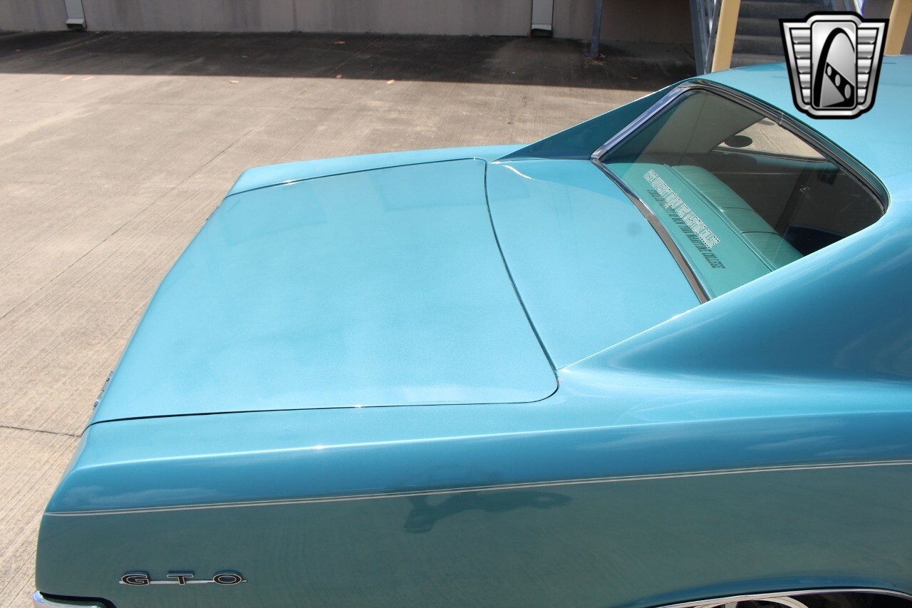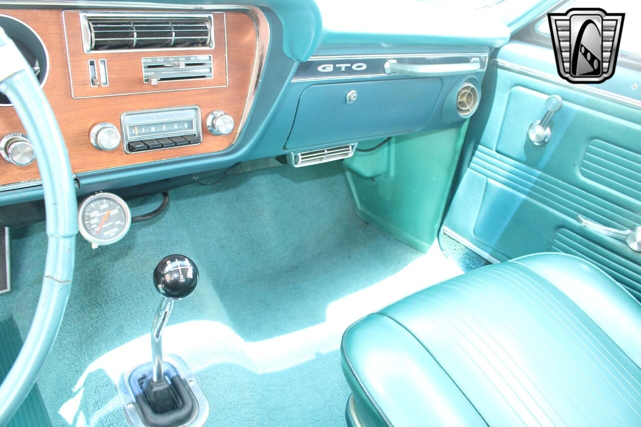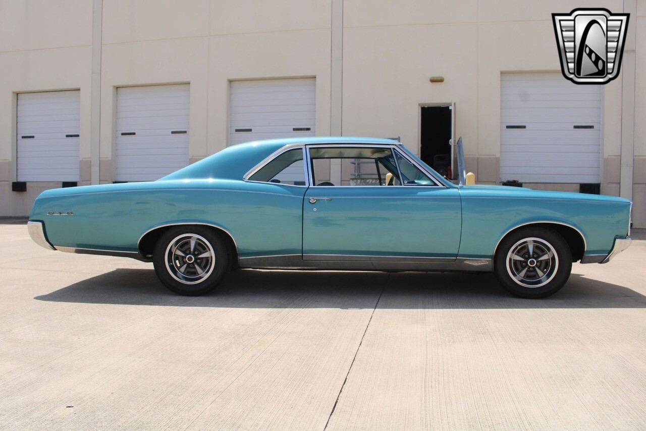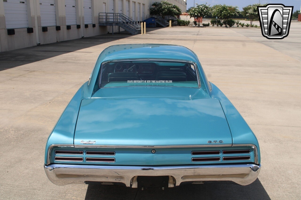 Gateway Classic Cars Houston Showroom is excited to present this stunning aqua 1967 Pontiac GTO for sale. Under the hood lies a powerful V8 engine backed by a 4-speed manual transmission. It has received some tasteful upgrades, including headers, a rebuilt QuadraJet from Ames Performance (featuring ethanol-resistant parts), a stainless steel fuel tank, high torque mini starter, a larger 4-core radiator, and the rear end has a limited slip differential and 3.55:1 gears. Step inside to find a unique green vinyl interior that not only offers a comfortable ride but also adds a touch of vintage charm to this iconic vehicle. While the car is equipped with air conditioning, it's in need of some work to get it back to its original cooling performance. Its AM/FM radio also is in need of some TLC to get it operating (or you can replace the original with a vintage-style unit from RetroSound). The inclusion of power steering and power brakes simplifies driving, providing you with full control and confidence behind the wheel. This GTO rides on durable radial tires, ensuring a smooth and stable drive, while seatbelts offer added safety for you and your passengers. This car will also come with the original Protecto-Plate and its owner's manual. Don't miss your chance to own a piece of automotive history with this 1967 Pontiac GTO. Its blend of performance, style, and comfort makes it a standout choice for any classic car enthusiast..