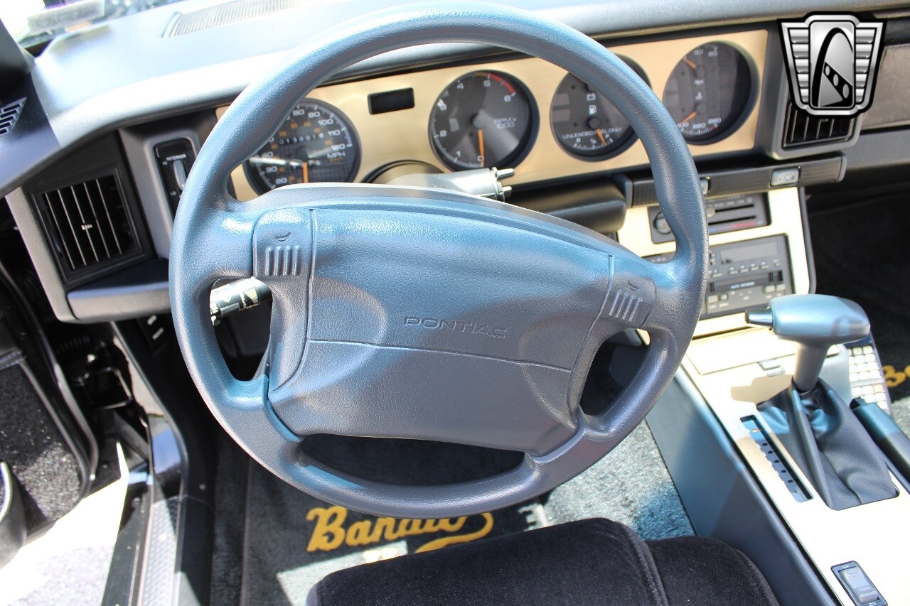 Introducing the 1991 Pontiac Firebird Formula Coupe, a classic embodiment of American muscle and style. This iconic vehicle boasts a sleek black exterior that exudes a timeless appeal, greatly complemented by a sophisticated black and gold cloth interior. Under the hood, you'll find a powerful 5.0L OHV 16V V8 engine, paired with a 4 Speed Overdrive automatic transmission, delivering a driving experience that is both exhilarating and smooth.