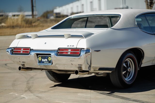 Earth Motorcars is excited to offer this amazing: 1969 Pontiac GTO Judge Tribute Fully Restored.This is a real-deal 1969 Pontiac GTO coupe with a numbers-matching 400 V8. Plus, you have awesome details like the covered headlights, air conditioning, and a very cool triple-white style. The distinction and desire only grows when you also see this one has been upgraded to an aggressive and cool tribute to The Judge.The trim tag tells us this was born Cameo White. That's an important distinction because while all muscle cars looked good in black, we already knew the GTO was the blacktop king. So it doesn't need an aggressive color theme. That's what makes this so unique. The white paint and white vinyl top are a bit of a Cadillac kind of style touch. It brings an added sophistication to your speed. This also looks good with the best elements of the era, like the hidden headlights, color-matched Eudura front end, a chrome rear bumper, and large polished exhaust tips. Plus, we all love the added detail of The Judge. When showing up or showing off, enthusiasts know The Judge is much more than just getting the highly stylized decals accurate on the fender and the trunk. This package was about adding more street-smart aggression, so getting one of these right has to include extras like the rear spoiler and wild black/red stripes that look like moving lava. Even the tires get in on the color theme with classic redline units on iconic Rally II wheels. It's all part of an ideal overall presentation where it looks good but never takes anything so seriously that would prevent you from having this Judge rule the streets.The interesting colors continue as you open the door to the parchment interior. This is another factory-correct piece, and it goes well with the paint and roof for a rarely-seen triple-white classic. You can tell it has all the right investments because the carpeting, headliner, and so much more feel quite fresh. In fact, the seat covers in both rows have a great design and pattern that can only be highlighted on interiors in the best condition. You'll even appreciate the little things like the working interior lights, a classic-style spare in the trunk, and smooth woodgrain paneling on the center console. It's a nice cruiser with details like R134a air conditioning and a retro-style AM/FM stereo with Bluetooth. And of course, a true GTO means a great driver's car. Front bucket seats, a grippy factory three-spoke wheel, and the sporty triple pod gauge package - including a tach - make for a proper muscle car command position.Filling the engine bay is this Pontiac's original YS-coded big 400 cubic-inch V8. You can really see the investment in making every inch of this engine bay look amazing, and even a proper Rochester four-barrel carburetor is on top. From the bright chrome valve covers to the correct Pontiac turquoise on the block, everything looks like this GTO went back to day one. The level of care also means it fires up eagerly and loves to hit the road. And with power steering, power brakes, front discs, and a clean/confident undercarriage, you'll realize this is an unbeatable package for those who like to show AND drive.The sale comes complete with nice details like a reproduction window sticker and a stock radio. You're looking at a real GTO and a nicely executed Judge upgrade. So when you add all the right features and a unique color combo on top of that, you know you need to act quickly if you want this judge to hold court in your garage.All of our classic cars go through our rigorous inspection and items that need repair get fixed unlike cars bought at auctions, So rest assured that you are getting a quality classic car! All classics are sold Miles Exempt regardless of what the odometer shows. This vehicle may be eligible for our EXTENDED WARRANTY that covers a wide variety of components (certain exclusions apply).....Please ask your sales representative for details.