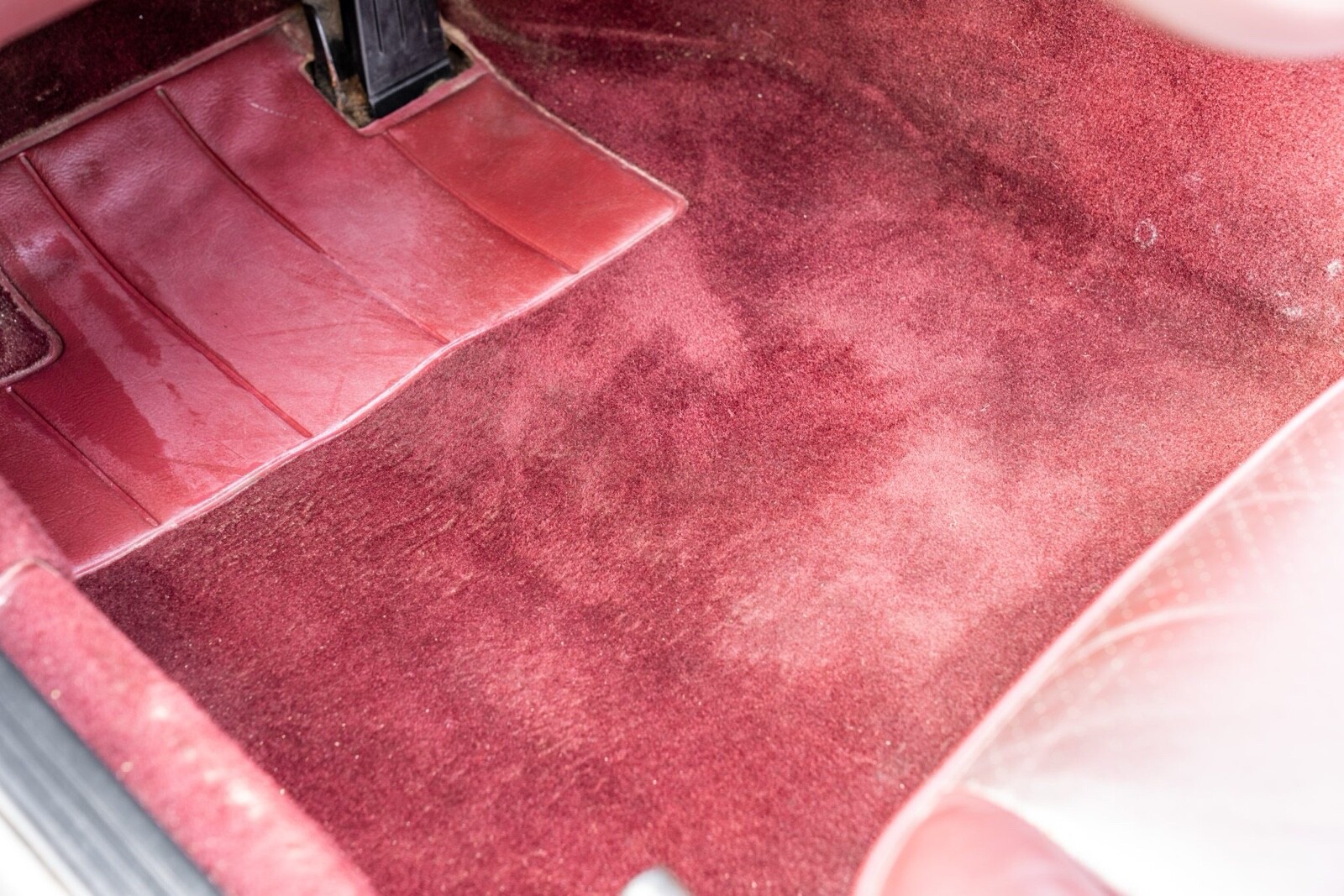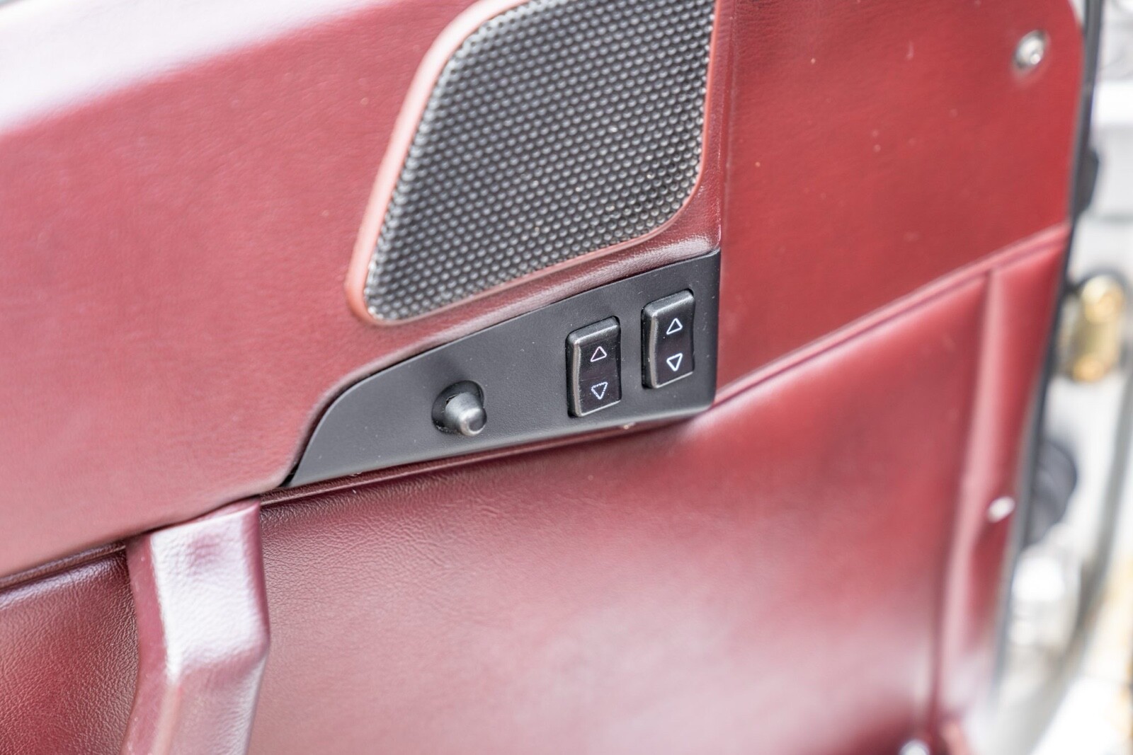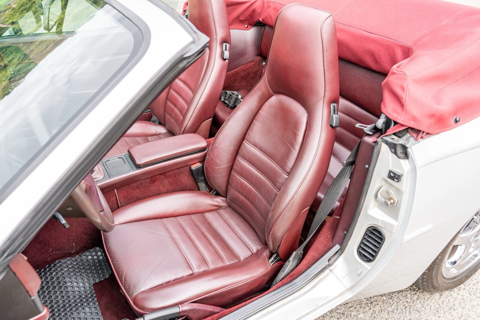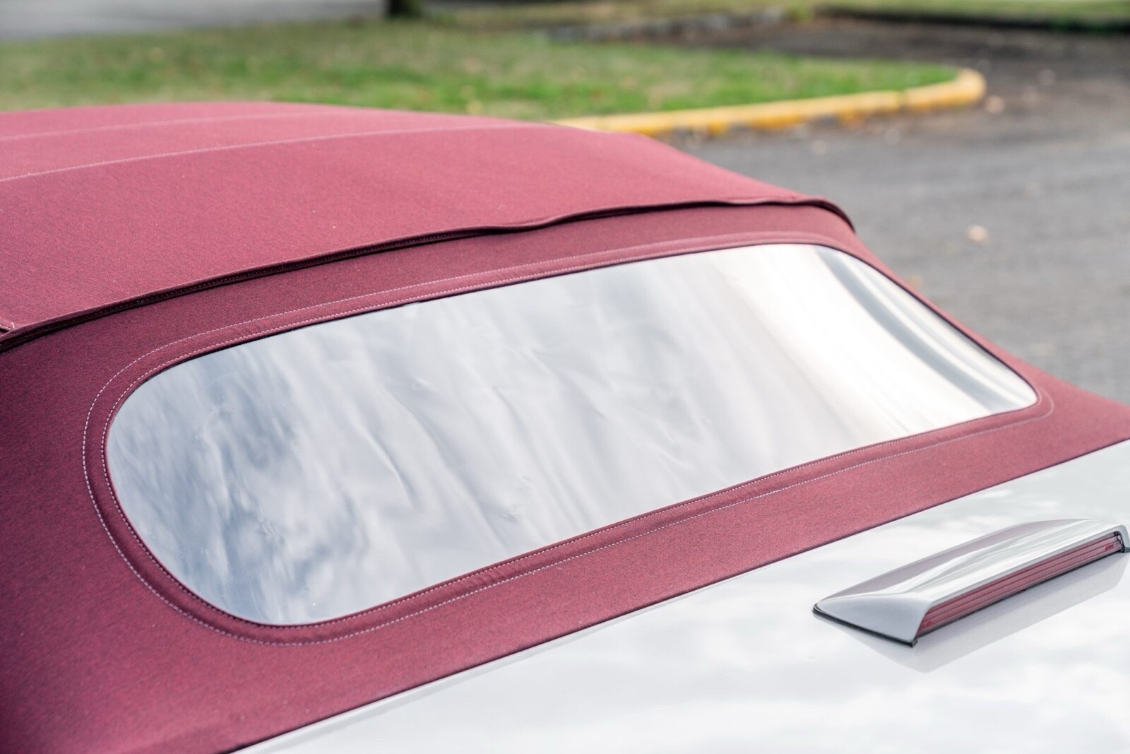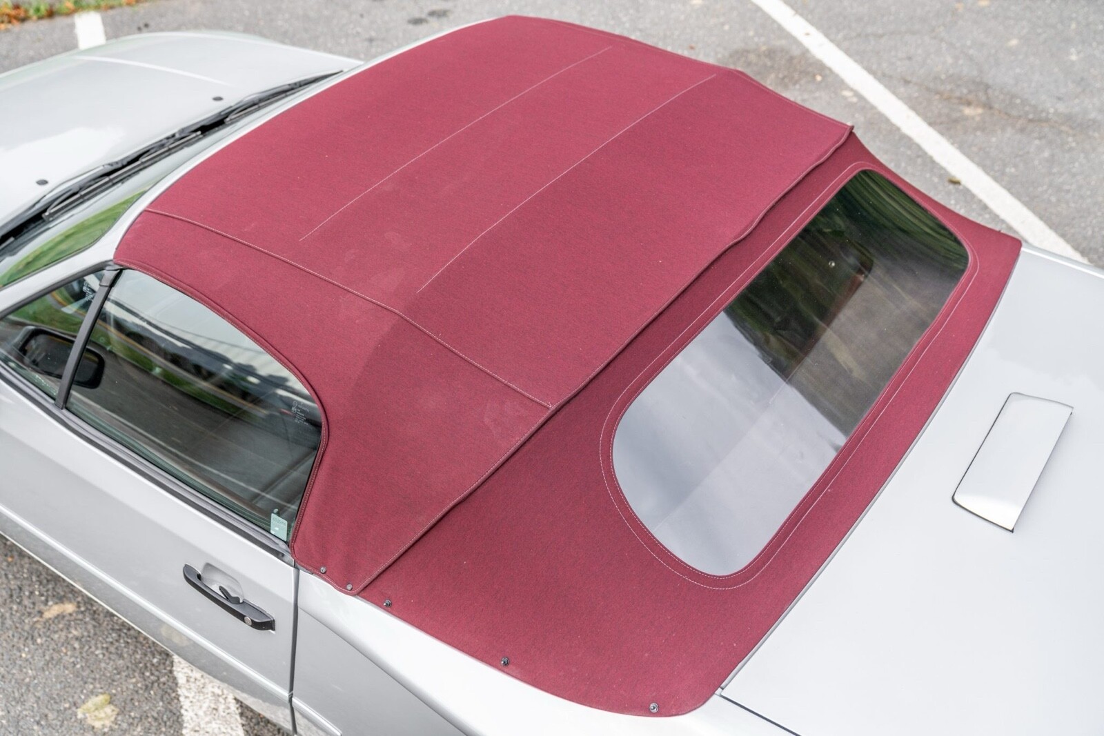 The car was finished from the factory in Crystal Silver Metallic (LY7T) and has been repainted. Equipment includes a Burgundy convertible soft top, side moldings, pop-up headlights, and fog lights.