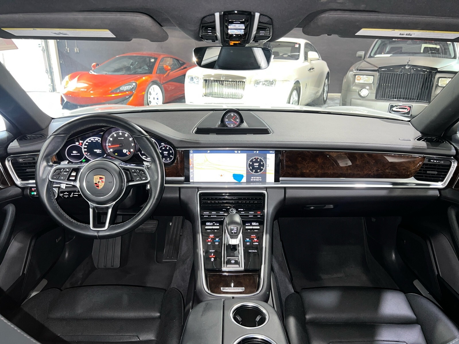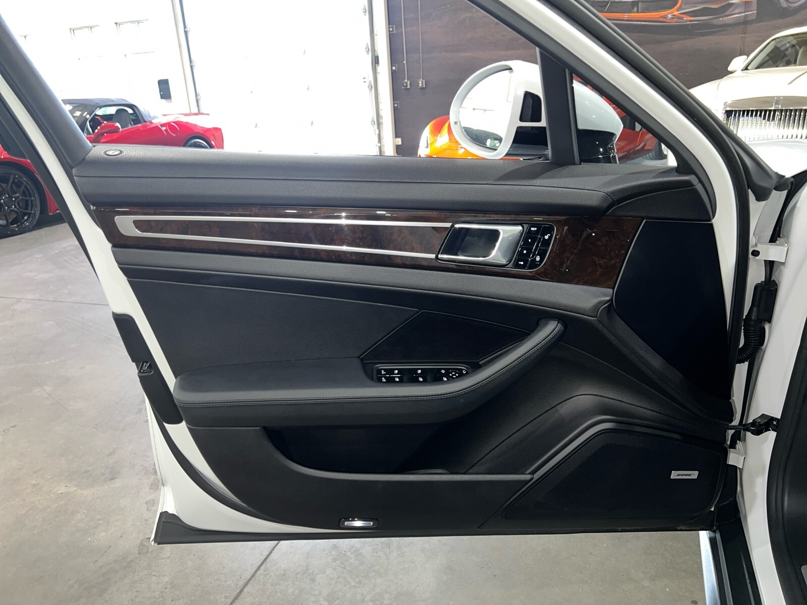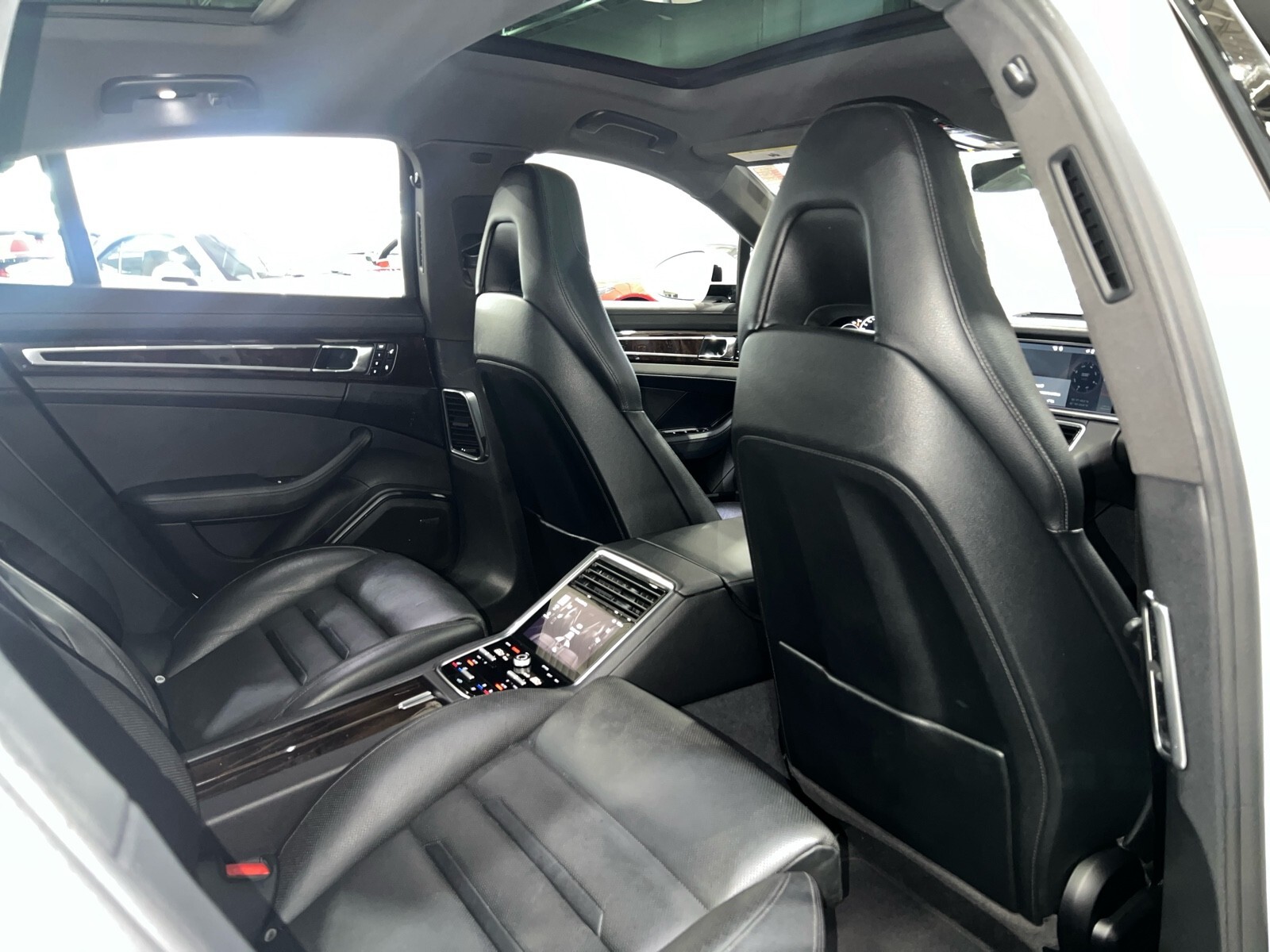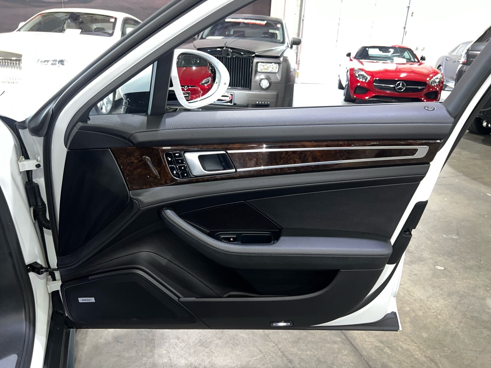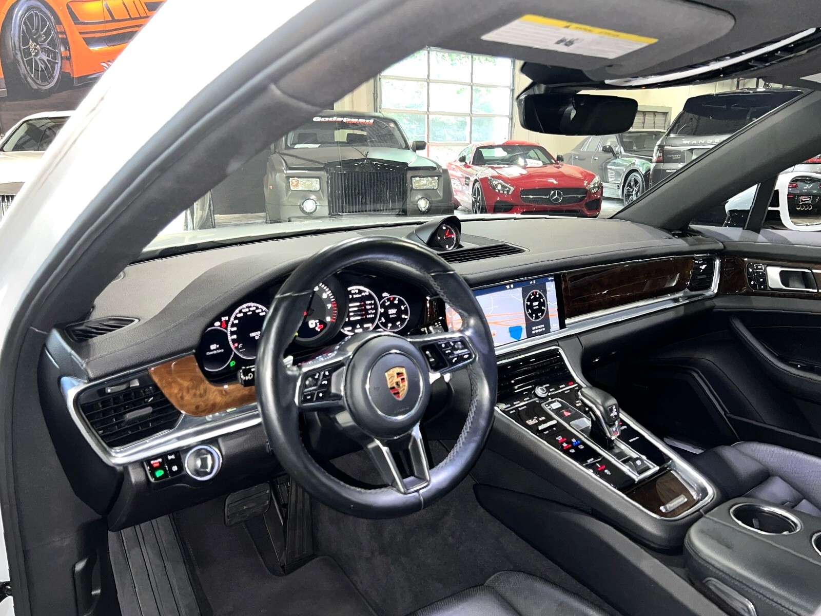 2 owners, clean Carfax, low mileage, heated/ventilated front seats, 14-way power seats, drive mode select and chassis control, dual climate control(front and rear), memory seats, Bose sound system, back seat climate control, dual moonroof, garage link, Sirius XM and Bluetooth, retractable spoiler, auto start stop, navigation, lane change assist, 360 camera, night view assist, massage seats, retractable rear shade, paddle shifters etc $114,630 MSRP When New. 22 Inch Black Panamera Turbo Style wheels and tires may be shown in pictures they are brand new and available for an additional $2495, factory silver wheels are included in the price. MSRP $94,350.00 INSTALLED OPTIONS [V58] Wheels: 19 Panamera S 9.0 x 19 front and 10.5 x 19 rear dual-arm 5-spoke design $600 [2Y] Carrara White Metallic $830 [AB] Black, Partial Leather Seat Trim $0 [P51] Premium Package Plus LED Headlights w/Porsche Dynamic Light System dynamic cornering light speed-dependent headlight range control sport mode and headlight cleaning system Front Seat Ventilation 3 levels of adjustment Comfort Access keyless entry and engine start Front & Rear Seat Heating 3 levels of adjustment 14-Way Power Seats seat backrest seat height fore/aft position seat cushion inclination seat cushion depth and lumbar support (4-way) Memory Package driver and front passenger seating positions steering column side mirrors lights wipers climate control door lock setting instrument cluster and PCM Soft Close Doors Lane Change Assist (LCA) BOSE Surround Sound-System 14 loudspeakers w/subwoofer 14 amplifier channels a total output of 710 watts BOSE Centerpoint 2 technology AudioPilot noise compensation technology and BOSE SoundTrue enhancement technology $6,250 [1BK] Adaptive Air Suspension W/Pasm leveling system and electronically controlled damper system w/3 manually selectable settings $2,185 [3Y8] PWR Sunblind For RR Compartment & RR Side Windows $880 [0NA] Deletion Of Model Designation $0 [3KK] Rear 8 Way Power Seats W/Memory Package $2,010 [9AH] 4 Zone Climate Control additional air vent in each B-pillar for rear seats $1,410 [2V4] Ionizer $340 [5MP] Dark Walnut Interior Package dashboard decorative trims door decorative trims and decorative elements in the center console $995 [QE1] Storage Package a luggage net in the front passenger footwell and 2 luggage nets in the luggage compartment $0 [8A4] Front & Rear Parkassist W/Surround View $1,190 [9R1] Night Vision Assist $2,540 [9JB] Smoker Package ashtrays and cigarette lighters $0 [VW5] Thermally & Noise Insulated Glass $0 Original Shipping Charge $1,050 RETAIL PRICE (ORIGINALLY NEW) $114,630.00