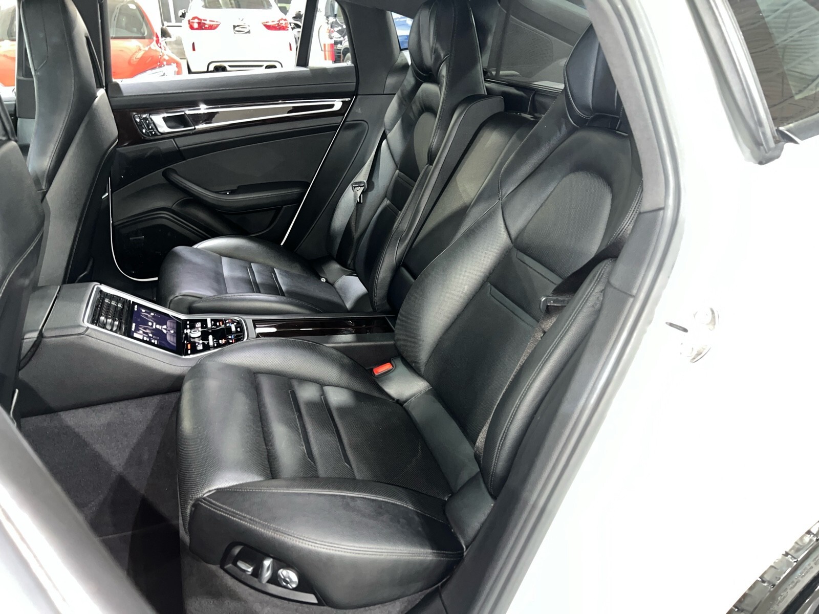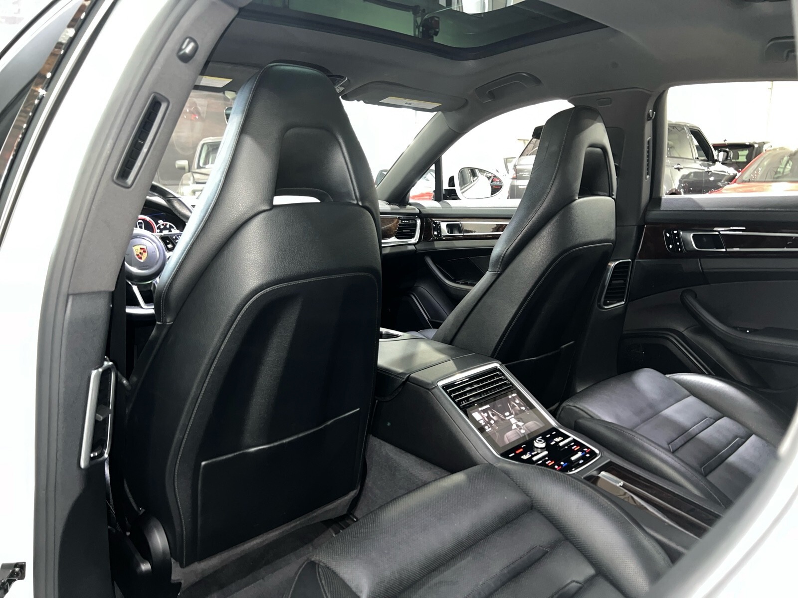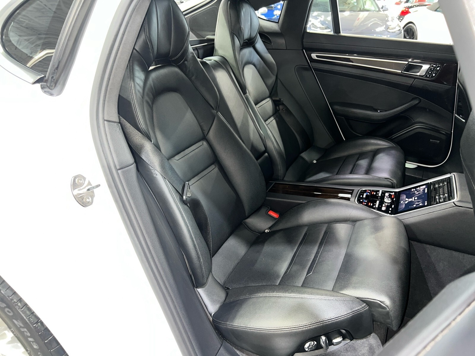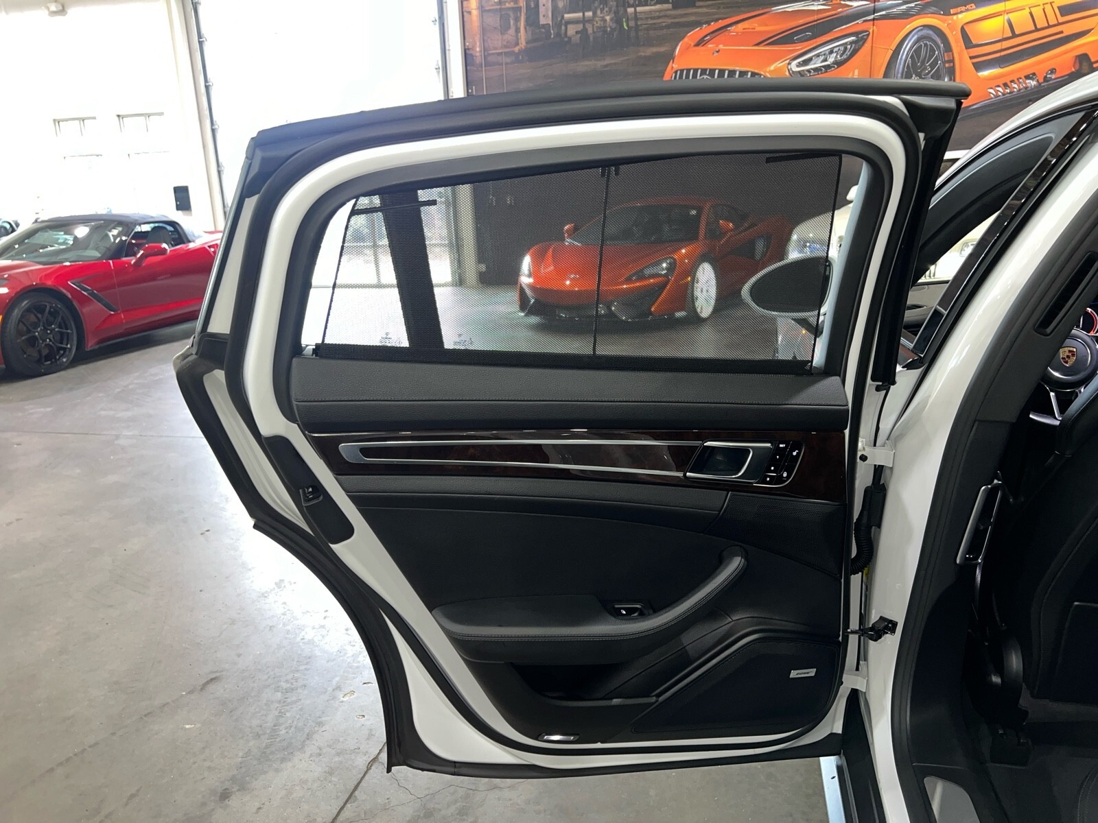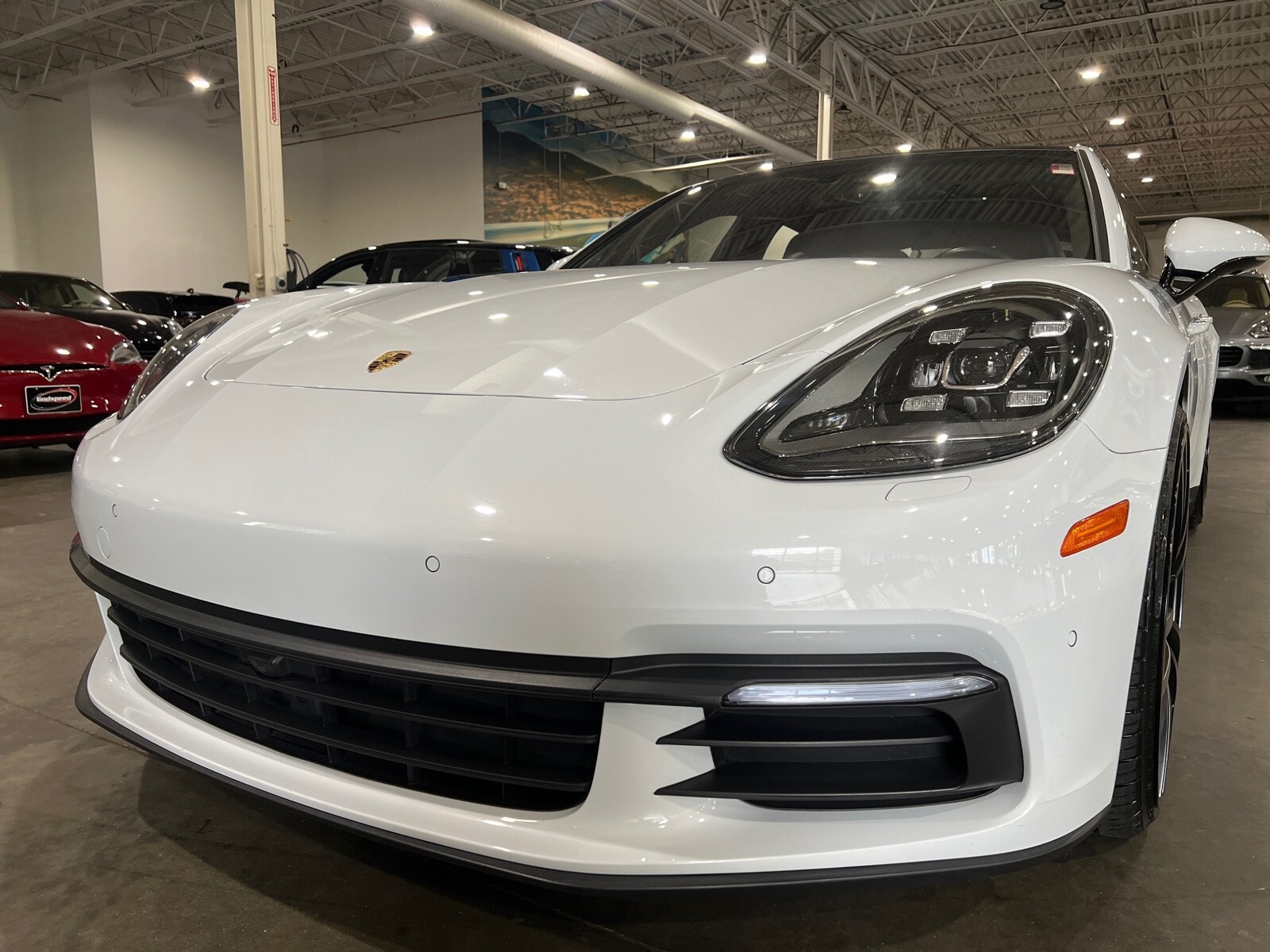 2 owners, clean Carfax, low mileage, heated/ventilated front seats, 14-way power seats, drive mode select and chassis control, dual climate control(front and rear), memory seats, Bose sound system, back seat climate control, dual moonroof, garage link, Sirius XM and Bluetooth, retractable spoiler, auto start stop, navigation, lane change assist, 360 camera, night view assist, massage seats, retractable rear shade, paddle shifters etc $114,630 MSRP When New. 22 Inch Black Panamera Turbo Style wheels and tires may be shown in pictures they are brand new and available for an additional $2495, factory silver wheels are included in the price. MSRP $94,350.00 INSTALLED OPTIONS [V58] Wheels: 19 Panamera S 9.0 x 19 front and 10.5 x 19 rear dual-arm 5-spoke design $600 [2Y] Carrara White Metallic $830 [AB] Black, Partial Leather Seat Trim $0 [P51] Premium Package Plus LED Headlights w/Porsche Dynamic Light System dynamic cornering light speed-dependent headlight range control sport mode and headlight cleaning system Front Seat Ventilation 3 levels of adjustment Comfort Access keyless entry and engine start Front & Rear Seat Heating 3 levels of adjustment 14-Way Power Seats seat backrest seat height fore/aft position seat cushion inclination seat cushion depth and lumbar support (4-way) Memory Package driver and front passenger seating positions steering column side mirrors lights wipers climate control door lock setting instrument cluster and PCM Soft Close Doors Lane Change Assist (LCA) BOSE Surround Sound-System 14 loudspeakers w/subwoofer 14 amplifier channels a total output of 710 watts BOSE Centerpoint 2 technology AudioPilot noise compensation technology and BOSE SoundTrue enhancement technology $6,250 [1BK] Adaptive Air Suspension W/Pasm leveling system and electronically controlled damper system w/3 manually selectable settings $2,185 [3Y8] PWR Sunblind For RR Compartment & RR Side Windows $880 [0NA] Deletion Of Model Designation $0 [3KK] Rear 8 Way Power Seats W/Memory Package $2,010 [9AH] 4 Zone Climate Control additional air vent in each B-pillar for rear seats $1,410 [2V4] Ionizer $340 [5MP] Dark Walnut Interior Package dashboard decorative trims door decorative trims and decorative elements in the center console $995 [QE1] Storage Package a luggage net in the front passenger footwell and 2 luggage nets in the luggage compartment $0 [8A4] Front & Rear Parkassist W/Surround View $1,190 [9R1] Night Vision Assist $2,540 [9JB] Smoker Package ashtrays and cigarette lighters $0 [VW5] Thermally & Noise Insulated Glass $0 Original Shipping Charge $1,050 RETAIL PRICE (ORIGINALLY NEW) $114,630.00