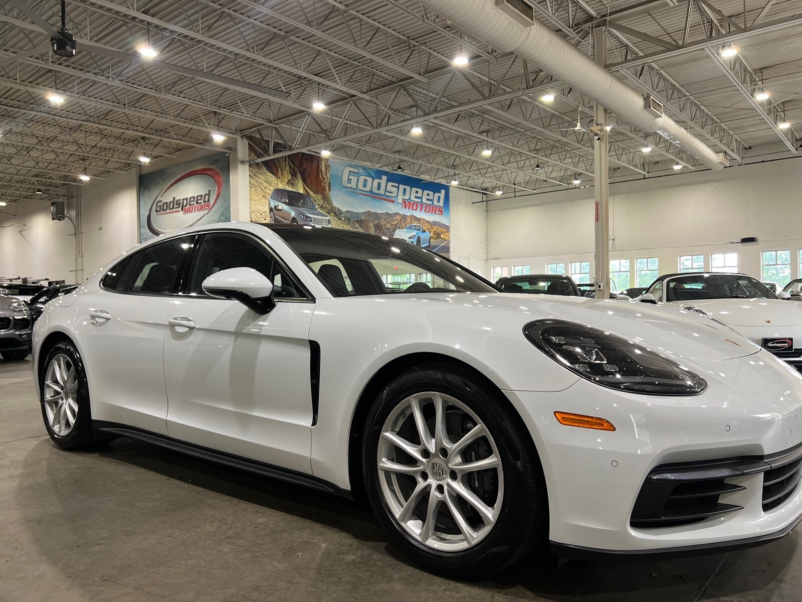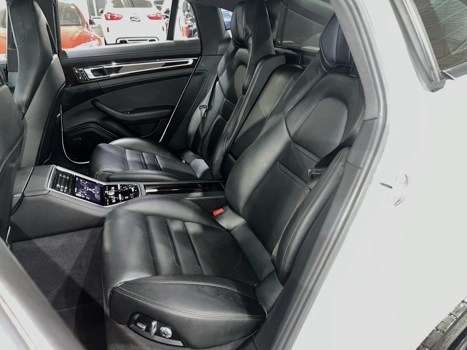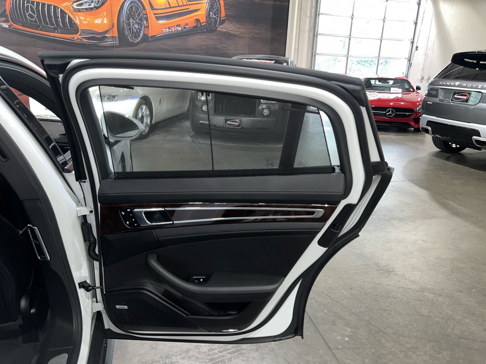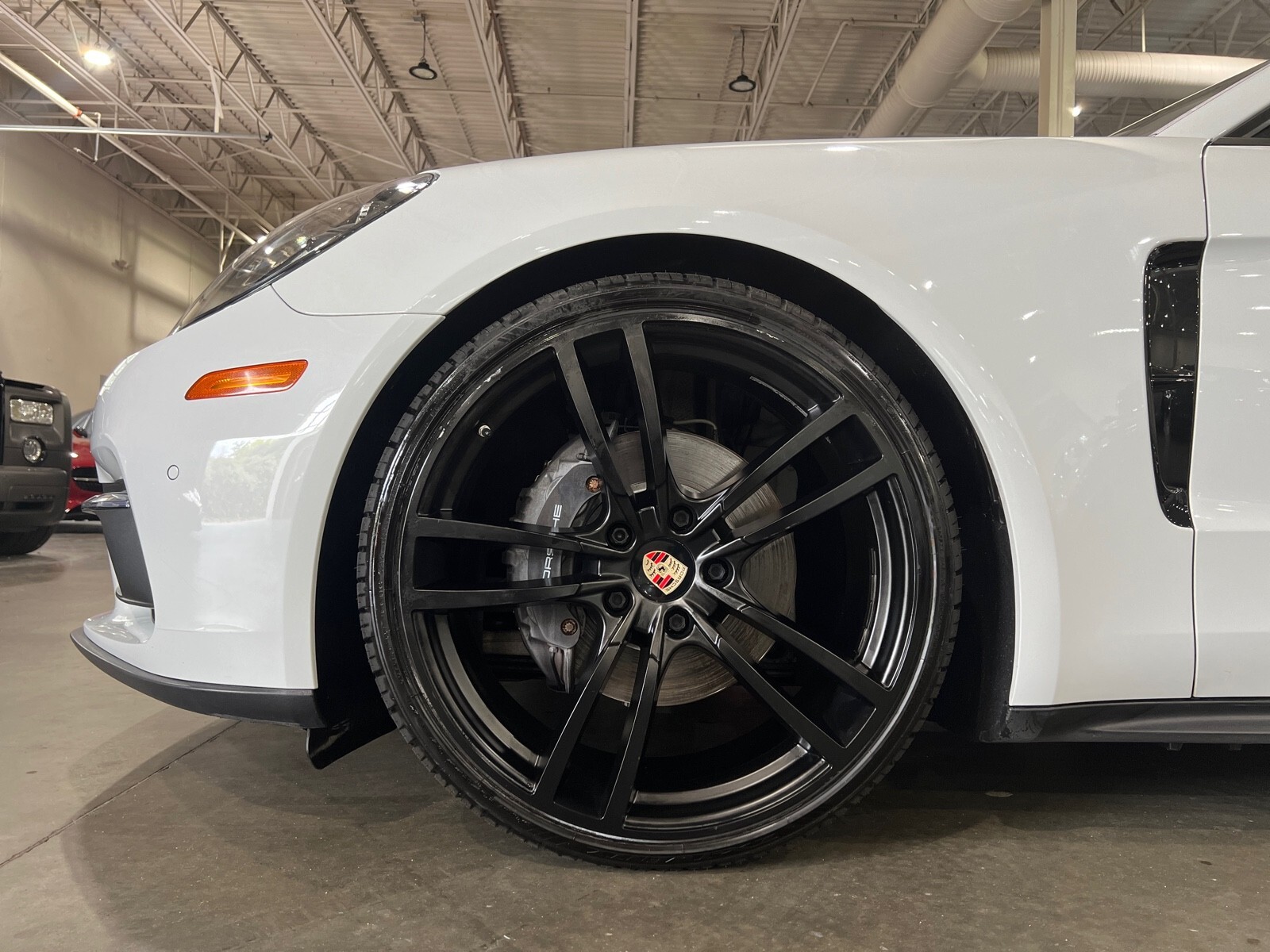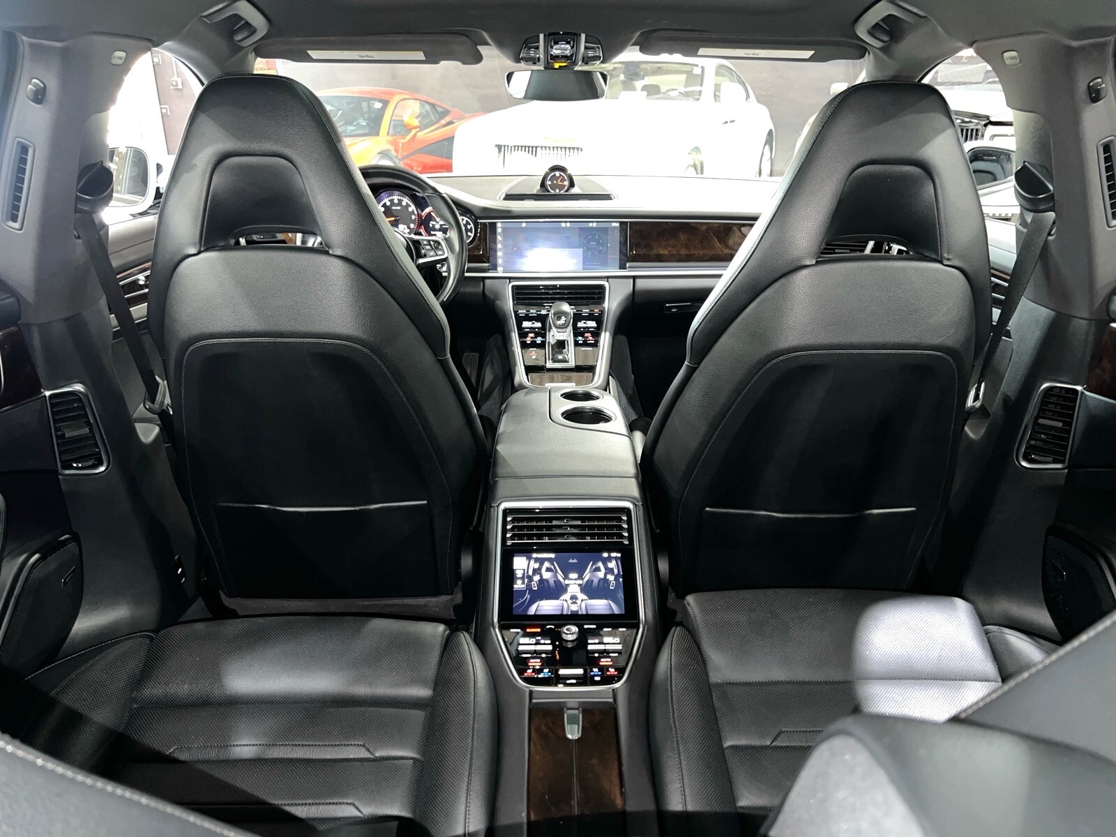 2 owners, clean Carfax, low mileage, heated/ventilated front seats, 14-way power seats, drive mode select and chassis control, dual climate control(front and rear), memory seats, Bose sound system, back seat climate control, dual moonroof, garage link, Sirius XM and Bluetooth, retractable spoiler, auto start stop, navigation, lane change assist, 360 camera, night view assist, massage seats, retractable rear shade, paddle shifters etc $114,630 MSRP When New. 22 Inch Black Panamera Turbo Style wheels and tires may be shown in pictures they are brand new and available for an additional $2495, factory silver wheels are included in the price. MSRP $94,350.00 INSTALLED OPTIONS [V58] Wheels: 19 Panamera S 9.0 x 19 front and 10.5 x 19 rear dual-arm 5-spoke design $600 [2Y] Carrara White Metallic $830 [AB] Black, Partial Leather Seat Trim $0 [P51] Premium Package Plus LED Headlights w/Porsche Dynamic Light System dynamic cornering light speed-dependent headlight range control sport mode and headlight cleaning system Front Seat Ventilation 3 levels of adjustment Comfort Access keyless entry and engine start Front & Rear Seat Heating 3 levels of adjustment 14-Way Power Seats seat backrest seat height fore/aft position seat cushion inclination seat cushion depth and lumbar support (4-way) Memory Package driver and front passenger seating positions steering column side mirrors lights wipers climate control door lock setting instrument cluster and PCM Soft Close Doors Lane Change Assist (LCA) BOSE Surround Sound-System 14 loudspeakers w/subwoofer 14 amplifier channels a total output of 710 watts BOSE Centerpoint 2 technology AudioPilot noise compensation technology and BOSE SoundTrue enhancement technology $6,250 [1BK] Adaptive Air Suspension W/Pasm leveling system and electronically controlled damper system w/3 manually selectable settings $2,185 [3Y8] PWR Sunblind For RR Compartment & RR Side Windows $880 [0NA] Deletion Of Model Designation $0 [3KK] Rear 8 Way Power Seats W/Memory Package $2,010 [9AH] 4 Zone Climate Control additional air vent in each B-pillar for rear seats $1,410 [2V4] Ionizer $340 [5MP] Dark Walnut Interior Package dashboard decorative trims door decorative trims and decorative elements in the center console $995 [QE1] Storage Package a luggage net in the front passenger footwell and 2 luggage nets in the luggage compartment $0 [8A4] Front & Rear Parkassist W/Surround View $1,190 [9R1] Night Vision Assist $2,540 [9JB] Smoker Package ashtrays and cigarette lighters $0 [VW5] Thermally & Noise Insulated Glass $0 Original Shipping Charge $1,050 RETAIL PRICE (ORIGINALLY NEW) $114,630.00
