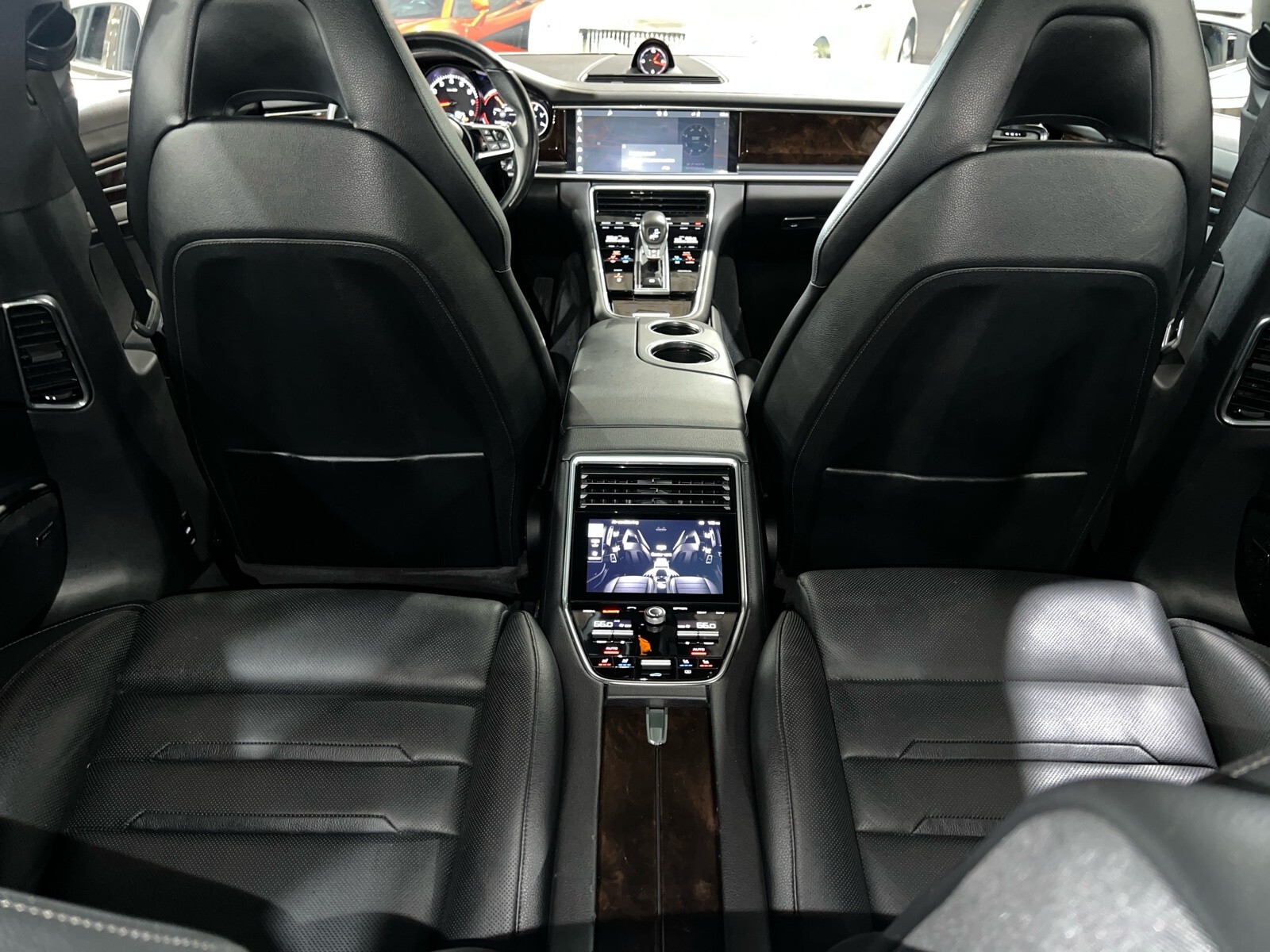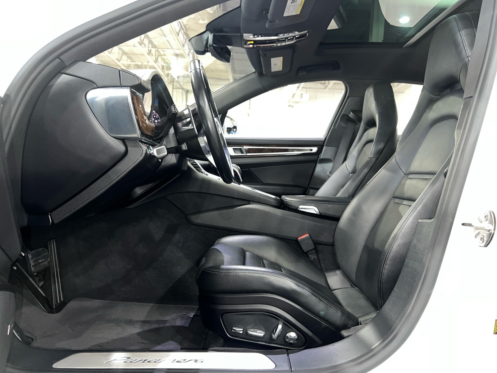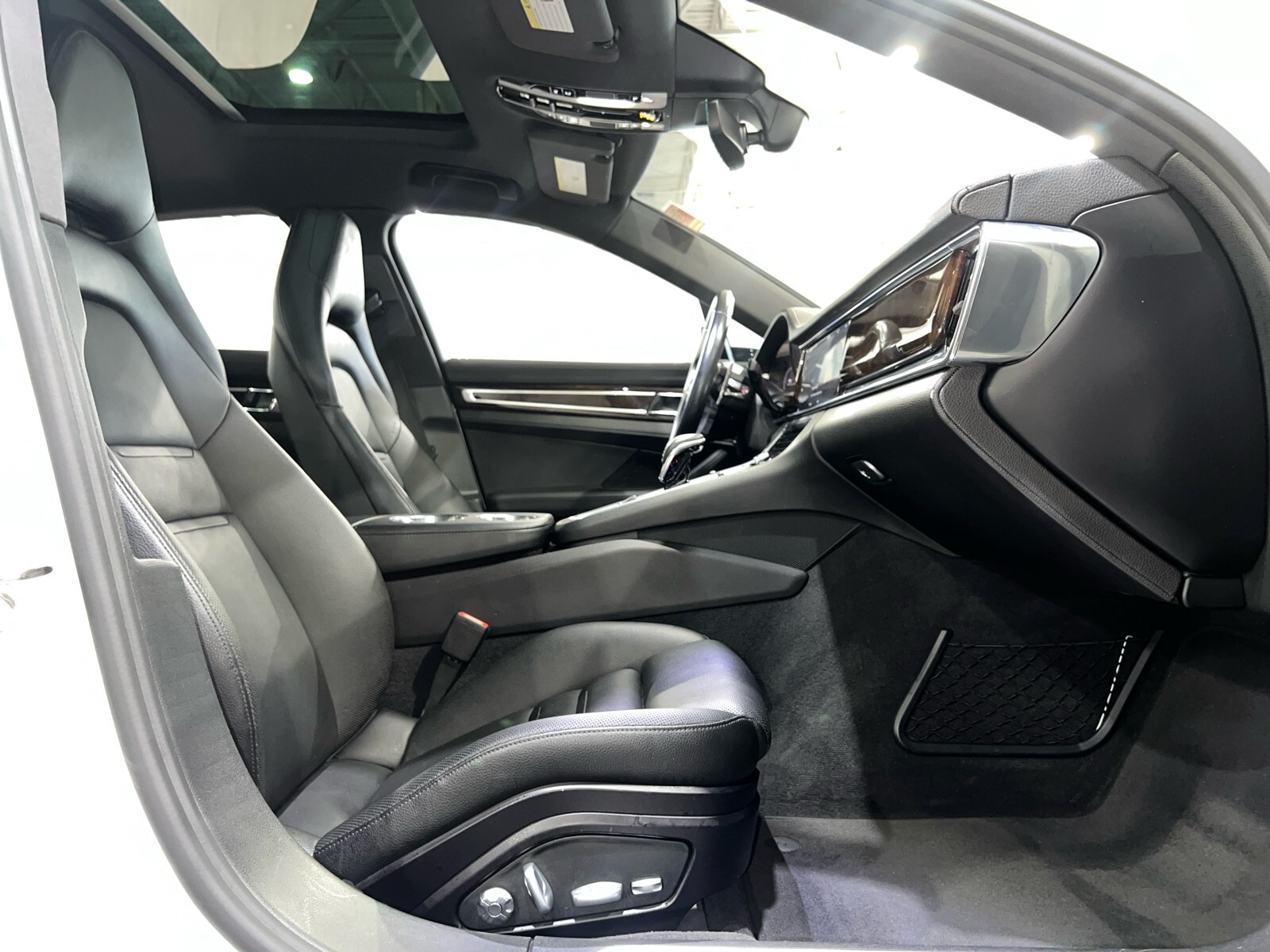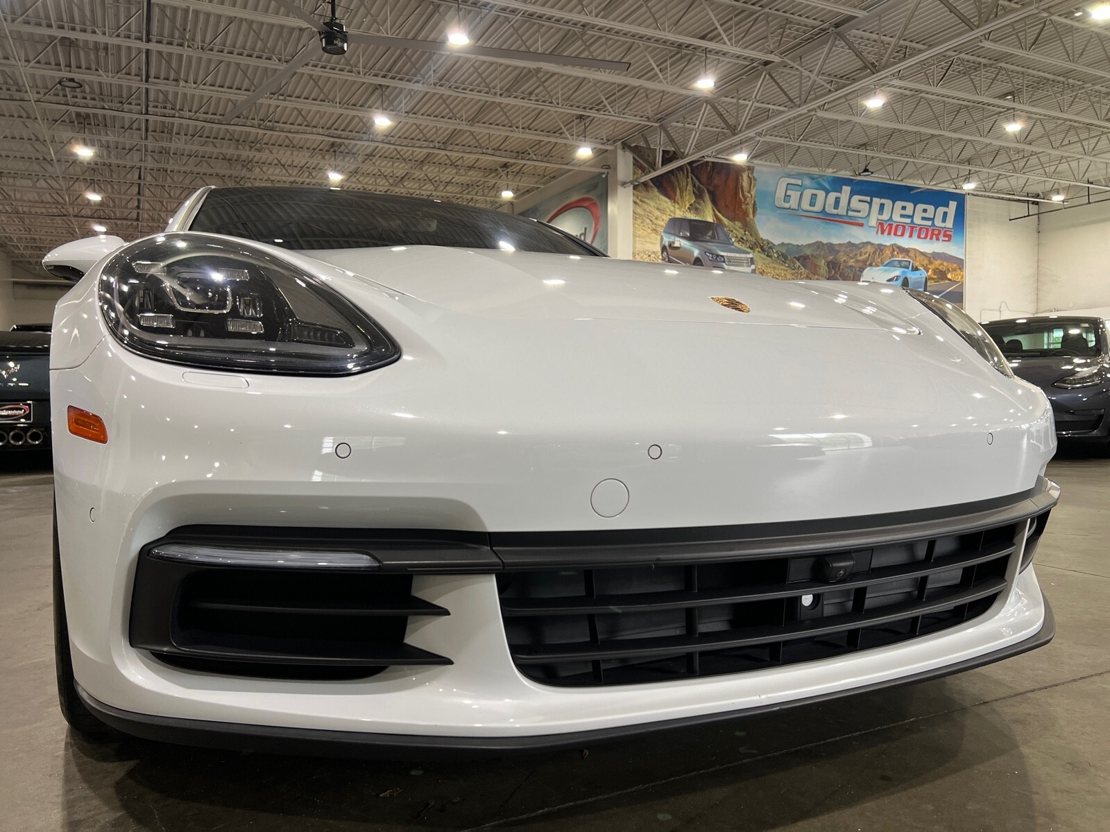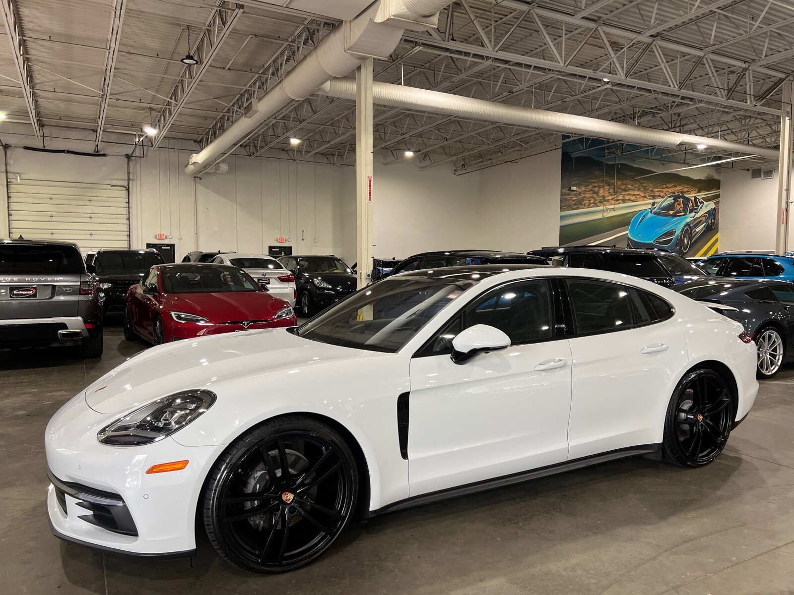 2 owners, clean Carfax, low mileage, heated/ventilated front seats, 14-way power seats, drive mode select and chassis control, dual climate control(front and rear), memory seats, Bose sound system, back seat climate control, dual moonroof, garage link, Sirius XM and Bluetooth, retractable spoiler, auto start stop, navigation, lane change assist, 360 camera, night view assist, massage seats, retractable rear shade, paddle shifters etc $114,630 MSRP When New. 22 Inch Black Panamera Turbo Style wheels and tires may be shown in pictures they are brand new and available for an additional $2495, factory silver wheels are included in the price. MSRP $94,350.00 INSTALLED OPTIONS [V58] Wheels: 19 Panamera S 9.0 x 19 front and 10.5 x 19 rear dual-arm 5-spoke design $600 [2Y] Carrara White Metallic $830 [AB] Black, Partial Leather Seat Trim $0 [P51] Premium Package Plus LED Headlights w/Porsche Dynamic Light System dynamic cornering light speed-dependent headlight range control sport mode and headlight cleaning system Front Seat Ventilation 3 levels of adjustment Comfort Access keyless entry and engine start Front & Rear Seat Heating 3 levels of adjustment 14-Way Power Seats seat backrest seat height fore/aft position seat cushion inclination seat cushion depth and lumbar support (4-way) Memory Package driver and front passenger seating positions steering column side mirrors lights wipers climate control door lock setting instrument cluster and PCM Soft Close Doors Lane Change Assist (LCA) BOSE Surround Sound-System 14 loudspeakers w/subwoofer 14 amplifier channels a total output of 710 watts BOSE Centerpoint 2 technology AudioPilot noise compensation technology and BOSE SoundTrue enhancement technology $6,250 [1BK] Adaptive Air Suspension W/Pasm leveling system and electronically controlled damper system w/3 manually selectable settings $2,185 [3Y8] PWR Sunblind For RR Compartment & RR Side Windows $880 [0NA] Deletion Of Model Designation $0 [3KK] Rear 8 Way Power Seats W/Memory Package $2,010 [9AH] 4 Zone Climate Control additional air vent in each B-pillar for rear seats $1,410 [2V4] Ionizer $340 [5MP] Dark Walnut Interior Package dashboard decorative trims door decorative trims and decorative elements in the center console $995 [QE1] Storage Package a luggage net in the front passenger footwell and 2 luggage nets in the luggage compartment $0 [8A4] Front & Rear Parkassist W/Surround View $1,190 [9R1] Night Vision Assist $2,540 [9JB] Smoker Package ashtrays and cigarette lighters $0 [VW5] Thermally & Noise Insulated Glass $0 Original Shipping Charge $1,050 RETAIL PRICE (ORIGINALLY NEW) $114,630.00