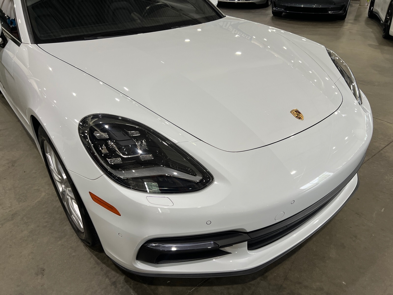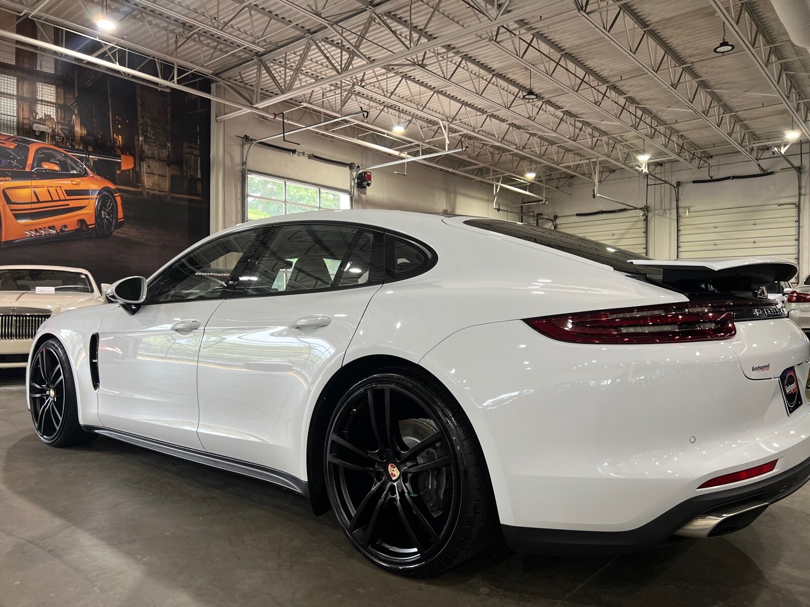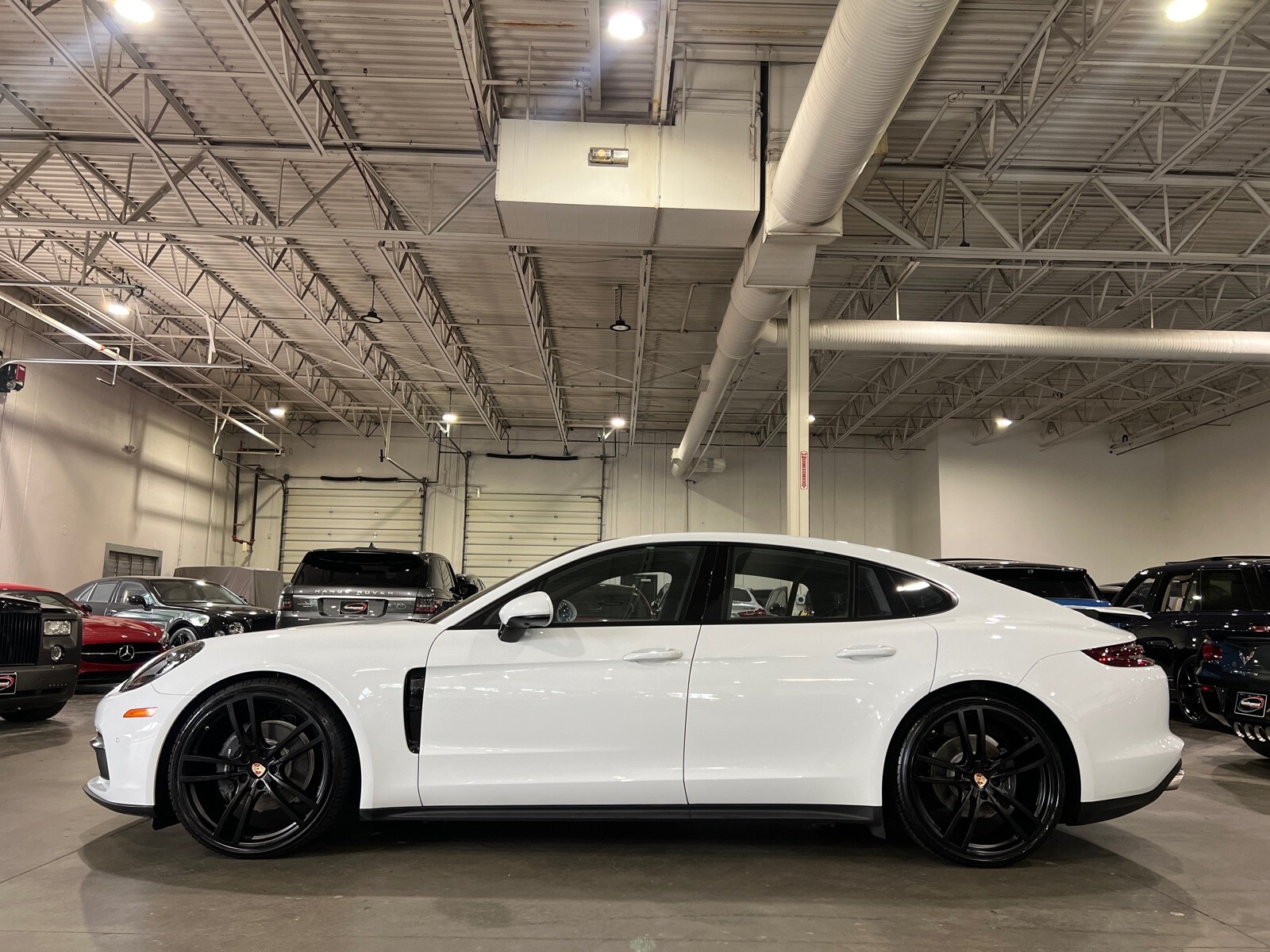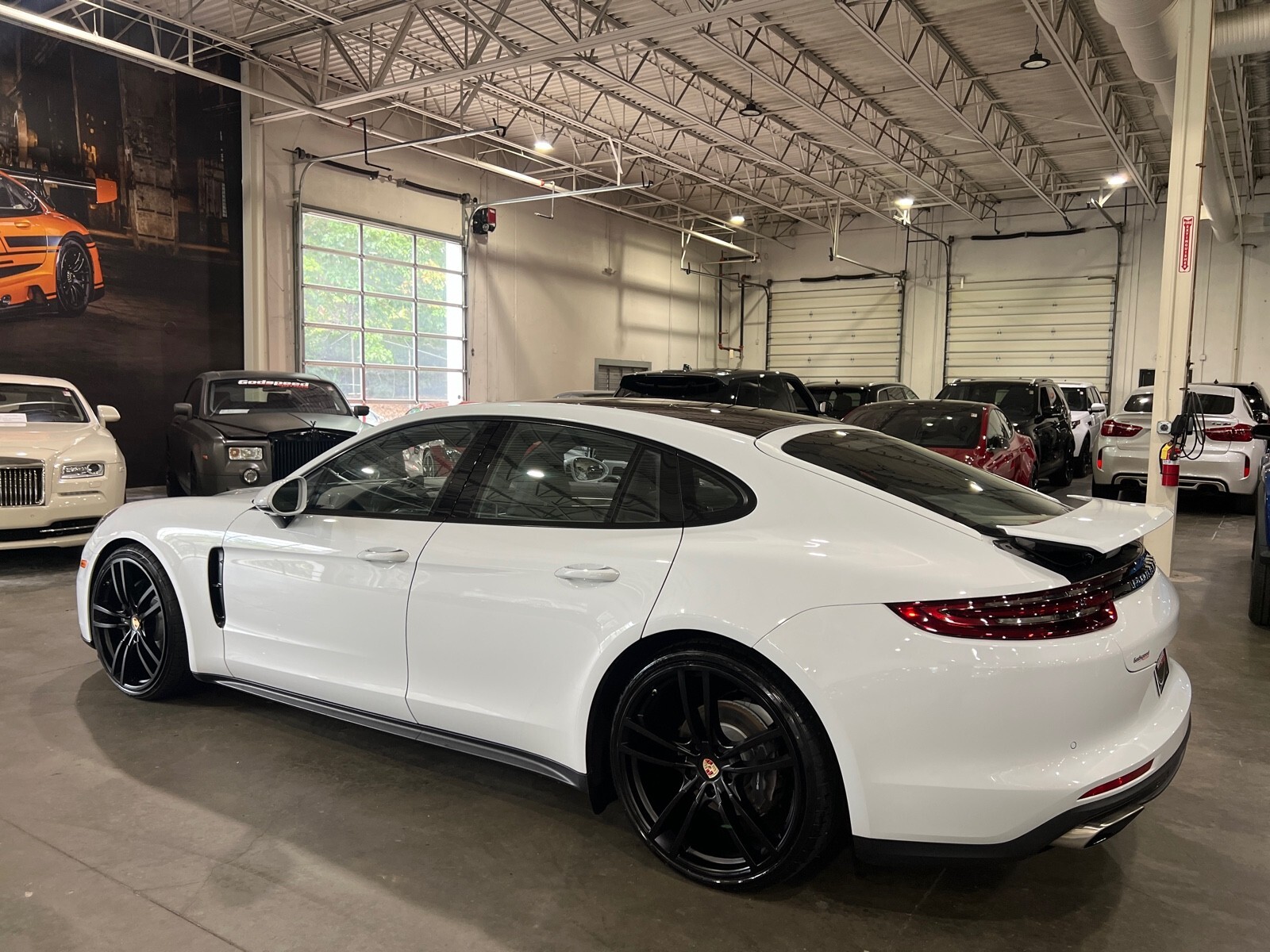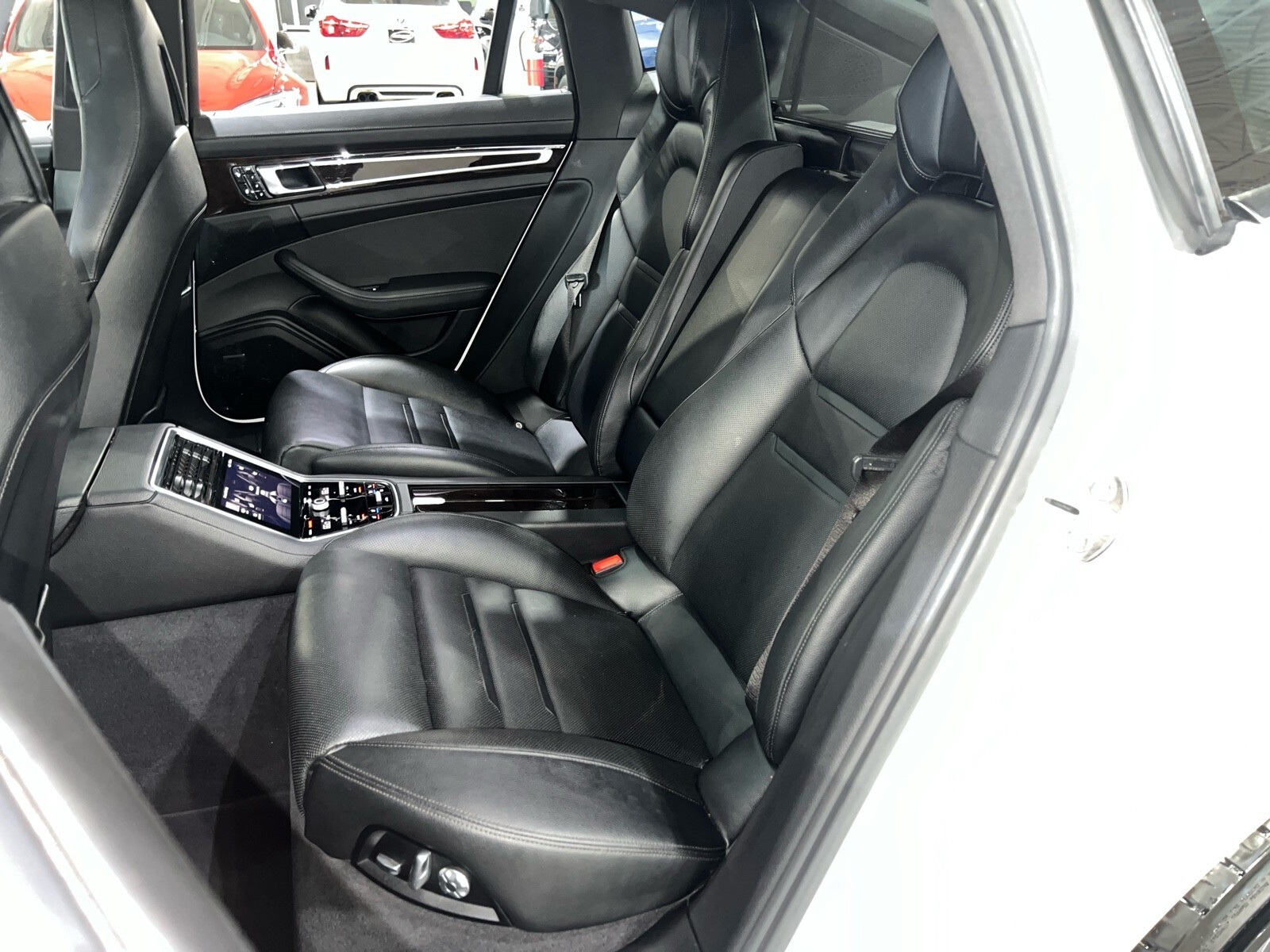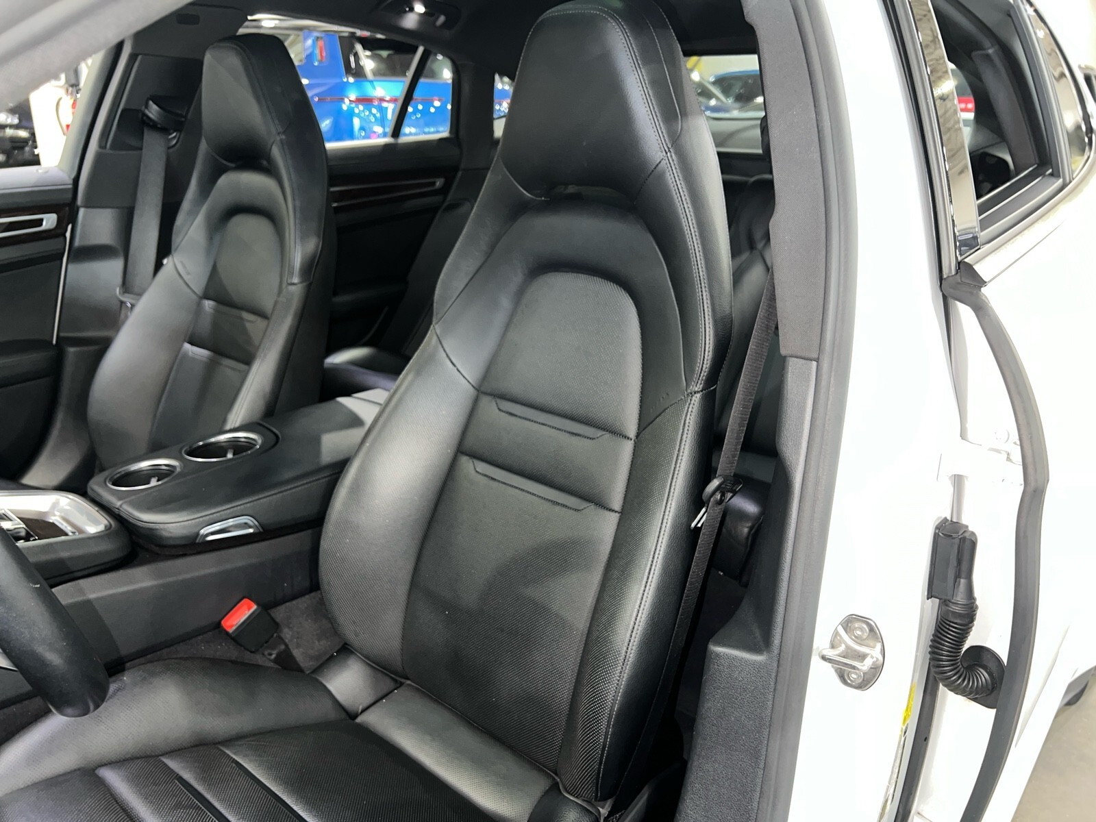 2 owners, clean Carfax, low mileage, heated/ventilated front seats, 14-way power seats, drive mode select and chassis control, dual climate control(front and rear), memory seats, Bose sound system, back seat climate control, dual moonroof, garage link, Sirius XM and Bluetooth, retractable spoiler, auto start stop, navigation, lane change assist, 360 camera, night view assist, massage seats, retractable rear shade, paddle shifters etc $114,630 MSRP When New. 22 Inch Black Panamera Turbo Style wheels and tires may be shown in pictures they are brand new and available for an additional $2495, factory silver wheels are included in the price. MSRP $94,350.00 INSTALLED OPTIONS [V58] Wheels: 19 Panamera S 9.0 x 19 front and 10.5 x 19 rear dual-arm 5-spoke design $600 [2Y] Carrara White Metallic $830 [AB] Black, Partial Leather Seat Trim $0 [P51] Premium Package Plus LED Headlights w/Porsche Dynamic Light System dynamic cornering light speed-dependent headlight range control sport mode and headlight cleaning system Front Seat Ventilation 3 levels of adjustment Comfort Access keyless entry and engine start Front & Rear Seat Heating 3 levels of adjustment 14-Way Power Seats seat backrest seat height fore/aft position seat cushion inclination seat cushion depth and lumbar support (4-way) Memory Package driver and front passenger seating positions steering column side mirrors lights wipers climate control door lock setting instrument cluster and PCM Soft Close Doors Lane Change Assist (LCA) BOSE Surround Sound-System 14 loudspeakers w/subwoofer 14 amplifier channels a total output of 710 watts BOSE Centerpoint 2 technology AudioPilot noise compensation technology and BOSE SoundTrue enhancement technology $6,250 [1BK] Adaptive Air Suspension W/Pasm leveling system and electronically controlled damper system w/3 manually selectable settings $2,185 [3Y8] PWR Sunblind For RR Compartment & RR Side Windows $880 [0NA] Deletion Of Model Designation $0 [3KK] Rear 8 Way Power Seats W/Memory Package $2,010 [9AH] 4 Zone Climate Control additional air vent in each B-pillar for rear seats $1,410 [2V4] Ionizer $340 [5MP] Dark Walnut Interior Package dashboard decorative trims door decorative trims and decorative elements in the center console $995 [QE1] Storage Package a luggage net in the front passenger footwell and 2 luggage nets in the luggage compartment $0 [8A4] Front & Rear Parkassist W/Surround View $1,190 [9R1] Night Vision Assist $2,540 [9JB] Smoker Package ashtrays and cigarette lighters $0 [VW5] Thermally & Noise Insulated Glass $0 Original Shipping Charge $1,050 RETAIL PRICE (ORIGINALLY NEW) $114,630.00