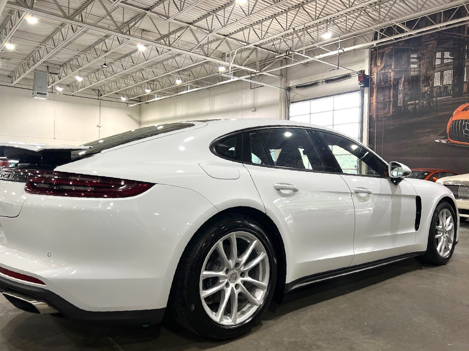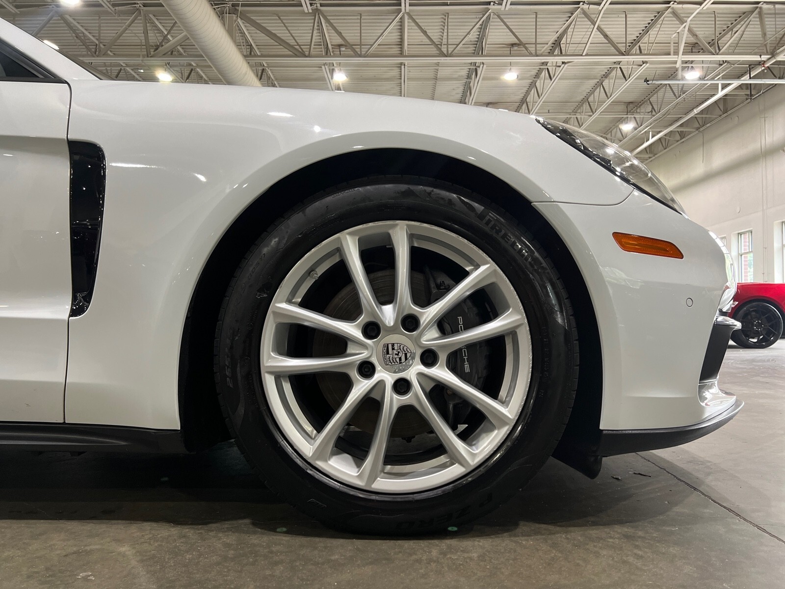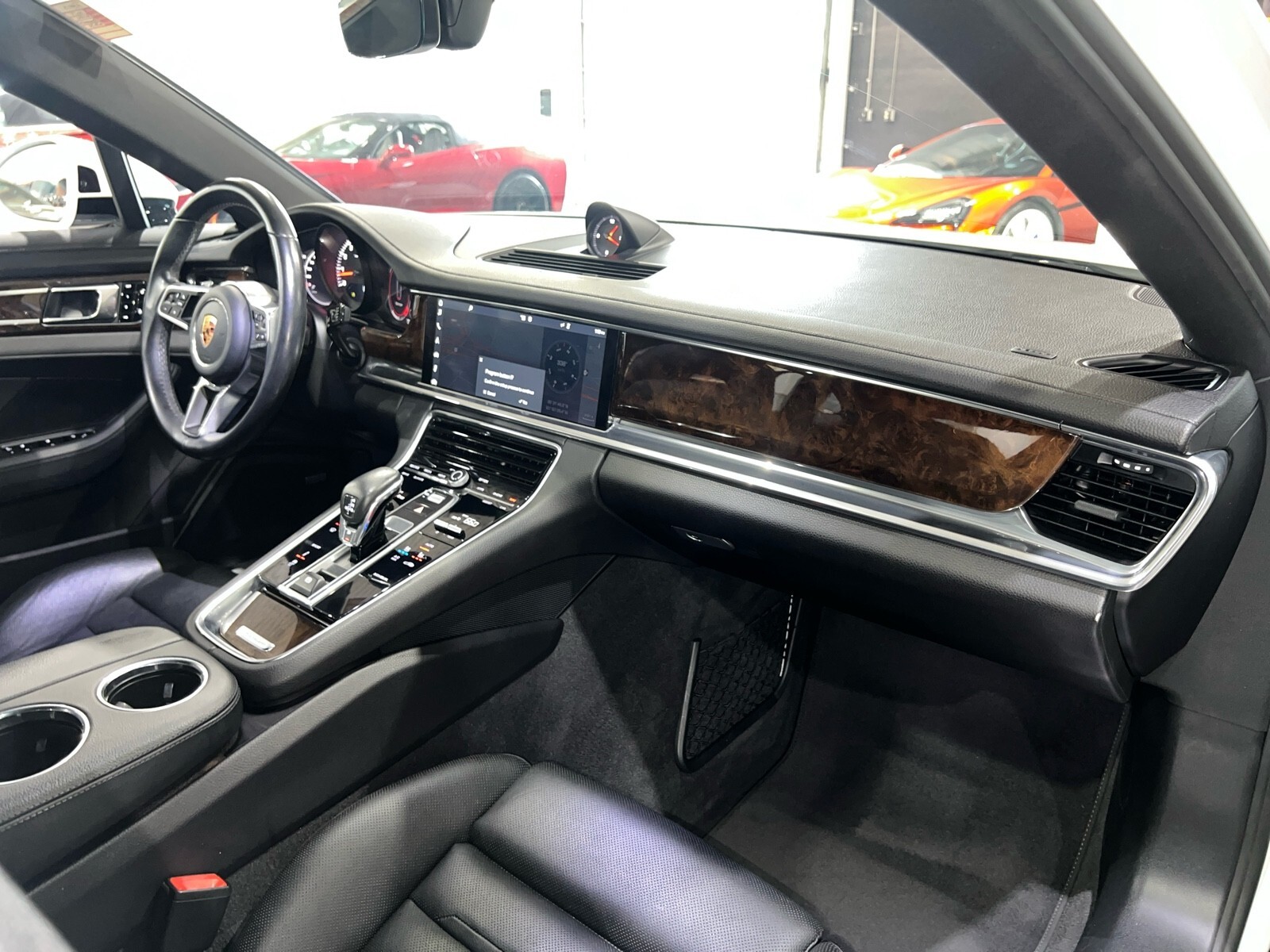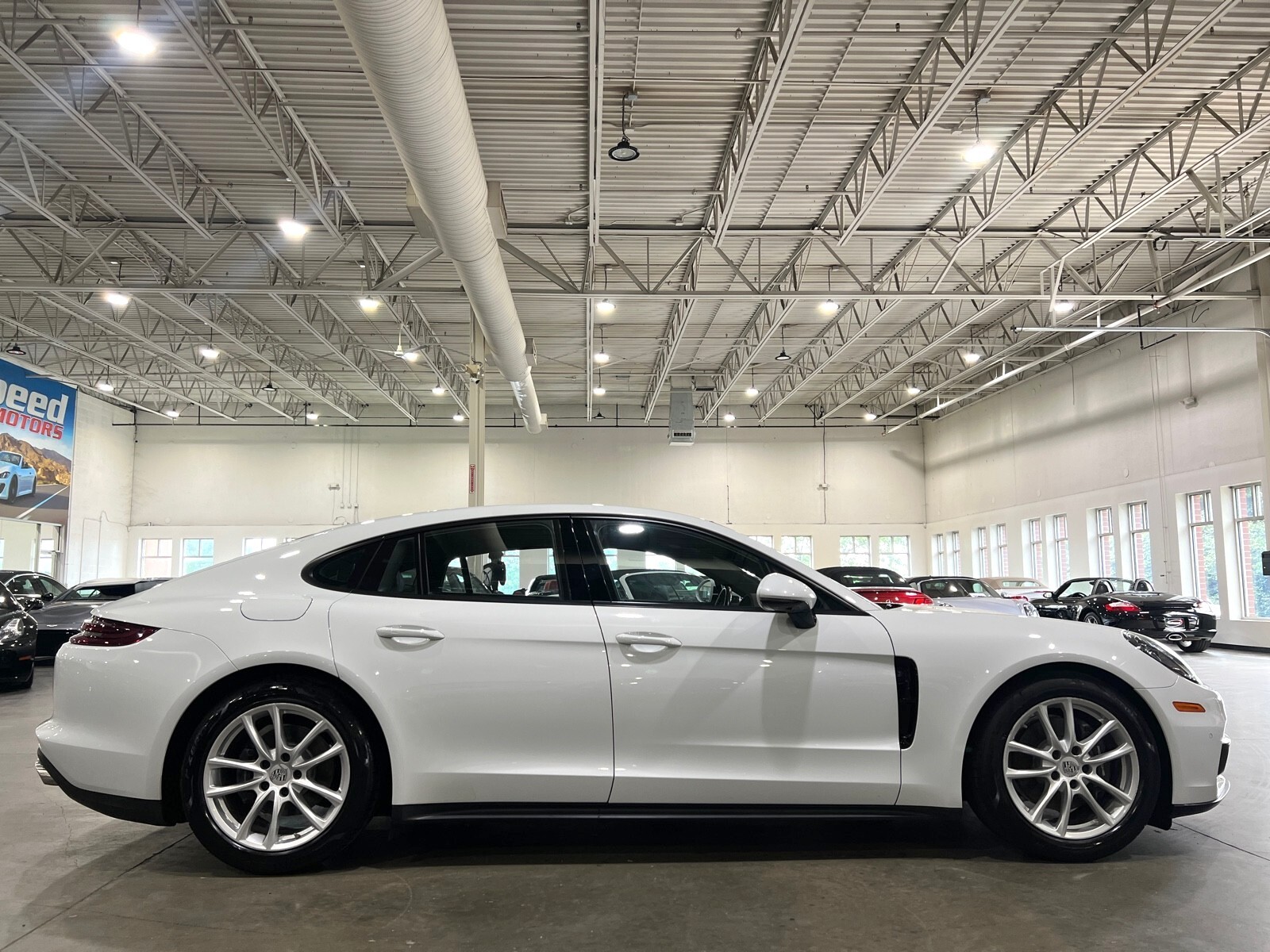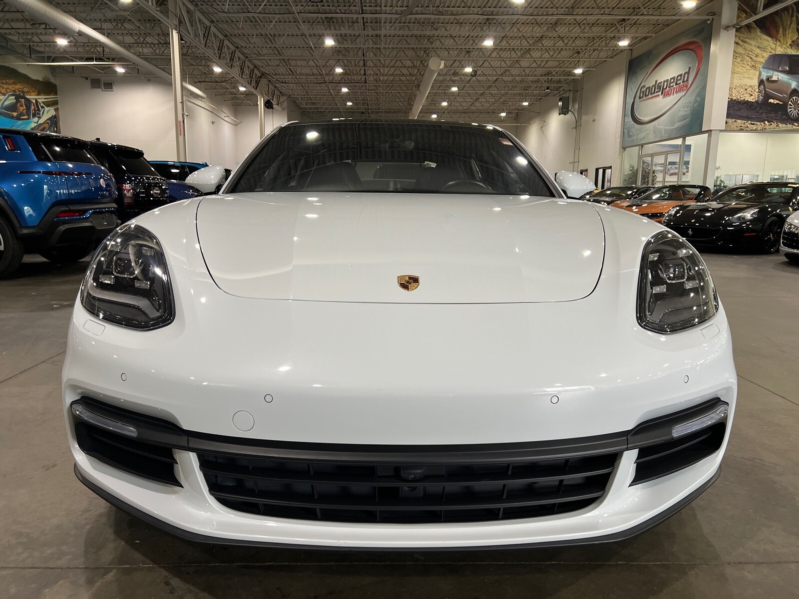 2 owners, clean Carfax, low mileage, heated/ventilated front seats, 14-way power seats, drive mode select and chassis control, dual climate control(front and rear), memory seats, Bose sound system, back seat climate control, dual moonroof, garage link, Sirius XM and Bluetooth, retractable spoiler, auto start stop, navigation, lane change assist, 360 camera, night view assist, massage seats, retractable rear shade, paddle shifters etc $114,630 MSRP When New. 22 Inch Black Panamera Turbo Style wheels and tires may be shown in pictures they are brand new and available for an additional $2495, factory silver wheels are included in the price. MSRP $94,350.00 INSTALLED OPTIONS [V58] Wheels: 19 Panamera S 9.0 x 19 front and 10.5 x 19 rear dual-arm 5-spoke design $600 [2Y] Carrara White Metallic $830 [AB] Black, Partial Leather Seat Trim $0 [P51] Premium Package Plus LED Headlights w/Porsche Dynamic Light System dynamic cornering light speed-dependent headlight range control sport mode and headlight cleaning system Front Seat Ventilation 3 levels of adjustment Comfort Access keyless entry and engine start Front & Rear Seat Heating 3 levels of adjustment 14-Way Power Seats seat backrest seat height fore/aft position seat cushion inclination seat cushion depth and lumbar support (4-way) Memory Package driver and front passenger seating positions steering column side mirrors lights wipers climate control door lock setting instrument cluster and PCM Soft Close Doors Lane Change Assist (LCA) BOSE Surround Sound-System 14 loudspeakers w/subwoofer 14 amplifier channels a total output of 710 watts BOSE Centerpoint 2 technology AudioPilot noise compensation technology and BOSE SoundTrue enhancement technology $6,250 [1BK] Adaptive Air Suspension W/Pasm leveling system and electronically controlled damper system w/3 manually selectable settings $2,185 [3Y8] PWR Sunblind For RR Compartment & RR Side Windows $880 [0NA] Deletion Of Model Designation $0 [3KK] Rear 8 Way Power Seats W/Memory Package $2,010 [9AH] 4 Zone Climate Control additional air vent in each B-pillar for rear seats $1,410 [2V4] Ionizer $340 [5MP] Dark Walnut Interior Package dashboard decorative trims door decorative trims and decorative elements in the center console $995 [QE1] Storage Package a luggage net in the front passenger footwell and 2 luggage nets in the luggage compartment $0 [8A4] Front & Rear Parkassist W/Surround View $1,190 [9R1] Night Vision Assist $2,540 [9JB] Smoker Package ashtrays and cigarette lighters $0 [VW5] Thermally & Noise Insulated Glass $0 Original Shipping Charge $1,050 RETAIL PRICE (ORIGINALLY NEW) $114,630.00