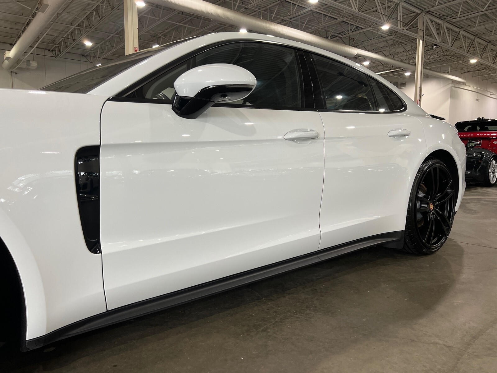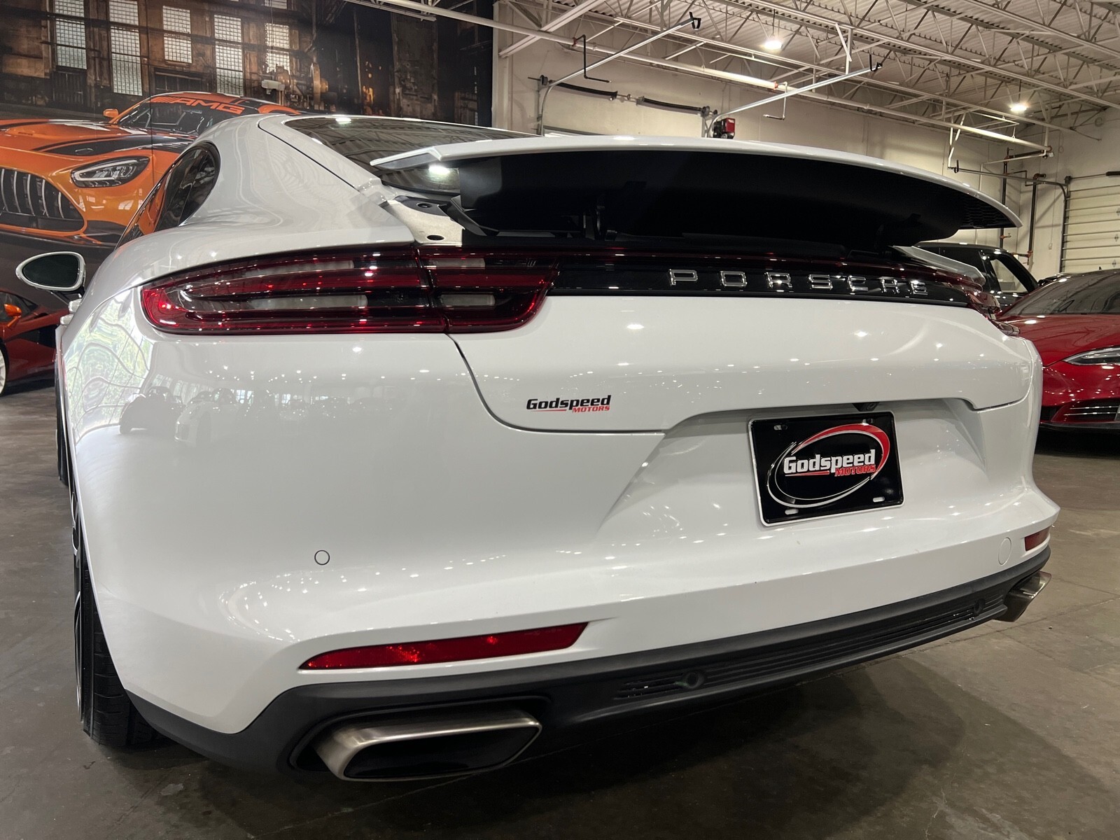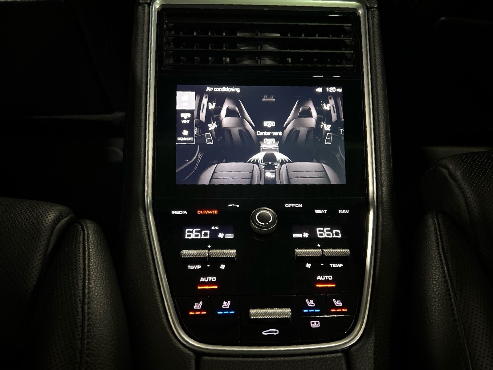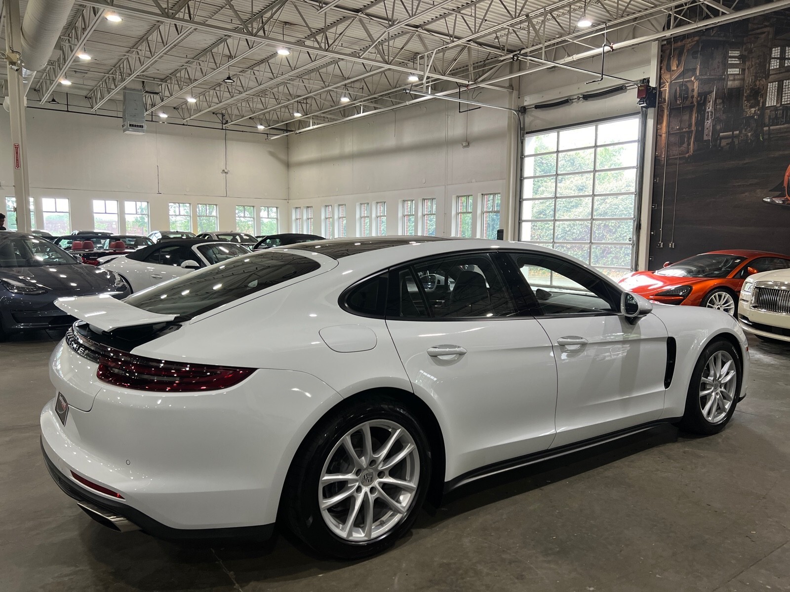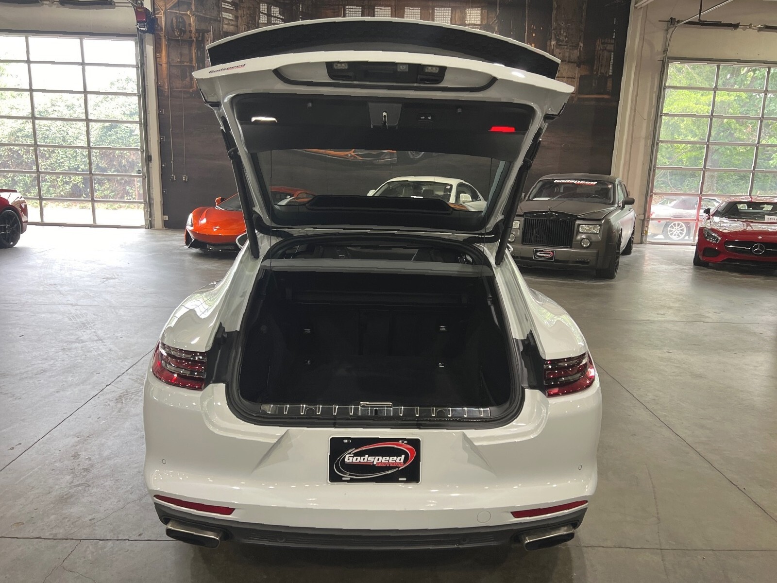 2 owners, clean Carfax, low mileage, heated/ventilated front seats, 14-way power seats, drive mode select and chassis control, dual climate control(front and rear), memory seats, Bose sound system, back seat climate control, dual moonroof, garage link, Sirius XM and Bluetooth, retractable spoiler, auto start stop, navigation, lane change assist, 360 camera, night view assist, massage seats, retractable rear shade, paddle shifters etc $114,630 MSRP When New. 22 Inch Black Panamera Turbo Style wheels and tires may be shown in pictures they are brand new and available for an additional $2495, factory silver wheels are included in the price. MSRP $94,350.00 INSTALLED OPTIONS [V58] Wheels: 19 Panamera S 9.0 x 19 front and 10.5 x 19 rear dual-arm 5-spoke design $600 [2Y] Carrara White Metallic $830 [AB] Black, Partial Leather Seat Trim $0 [P51] Premium Package Plus LED Headlights w/Porsche Dynamic Light System dynamic cornering light speed-dependent headlight range control sport mode and headlight cleaning system Front Seat Ventilation 3 levels of adjustment Comfort Access keyless entry and engine start Front & Rear Seat Heating 3 levels of adjustment 14-Way Power Seats seat backrest seat height fore/aft position seat cushion inclination seat cushion depth and lumbar support (4-way) Memory Package driver and front passenger seating positions steering column side mirrors lights wipers climate control door lock setting instrument cluster and PCM Soft Close Doors Lane Change Assist (LCA) BOSE Surround Sound-System 14 loudspeakers w/subwoofer 14 amplifier channels a total output of 710 watts BOSE Centerpoint 2 technology AudioPilot noise compensation technology and BOSE SoundTrue enhancement technology $6,250 [1BK] Adaptive Air Suspension W/Pasm leveling system and electronically controlled damper system w/3 manually selectable settings $2,185 [3Y8] PWR Sunblind For RR Compartment & RR Side Windows $880 [0NA] Deletion Of Model Designation $0 [3KK] Rear 8 Way Power Seats W/Memory Package $2,010 [9AH] 4 Zone Climate Control additional air vent in each B-pillar for rear seats $1,410 [2V4] Ionizer $340 [5MP] Dark Walnut Interior Package dashboard decorative trims door decorative trims and decorative elements in the center console $995 [QE1] Storage Package a luggage net in the front passenger footwell and 2 luggage nets in the luggage compartment $0 [8A4] Front & Rear Parkassist W/Surround View $1,190 [9R1] Night Vision Assist $2,540 [9JB] Smoker Package ashtrays and cigarette lighters $0 [VW5] Thermally & Noise Insulated Glass $0 Original Shipping Charge $1,050 RETAIL PRICE (ORIGINALLY NEW) $114,630.00