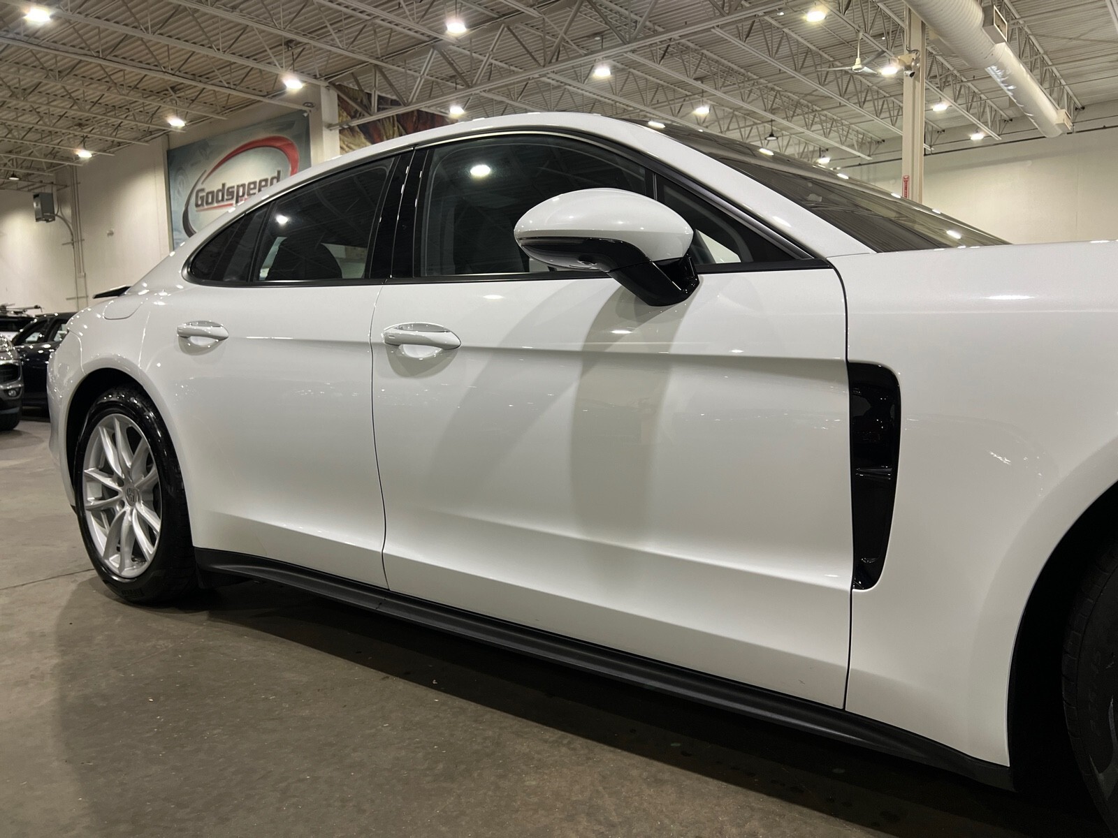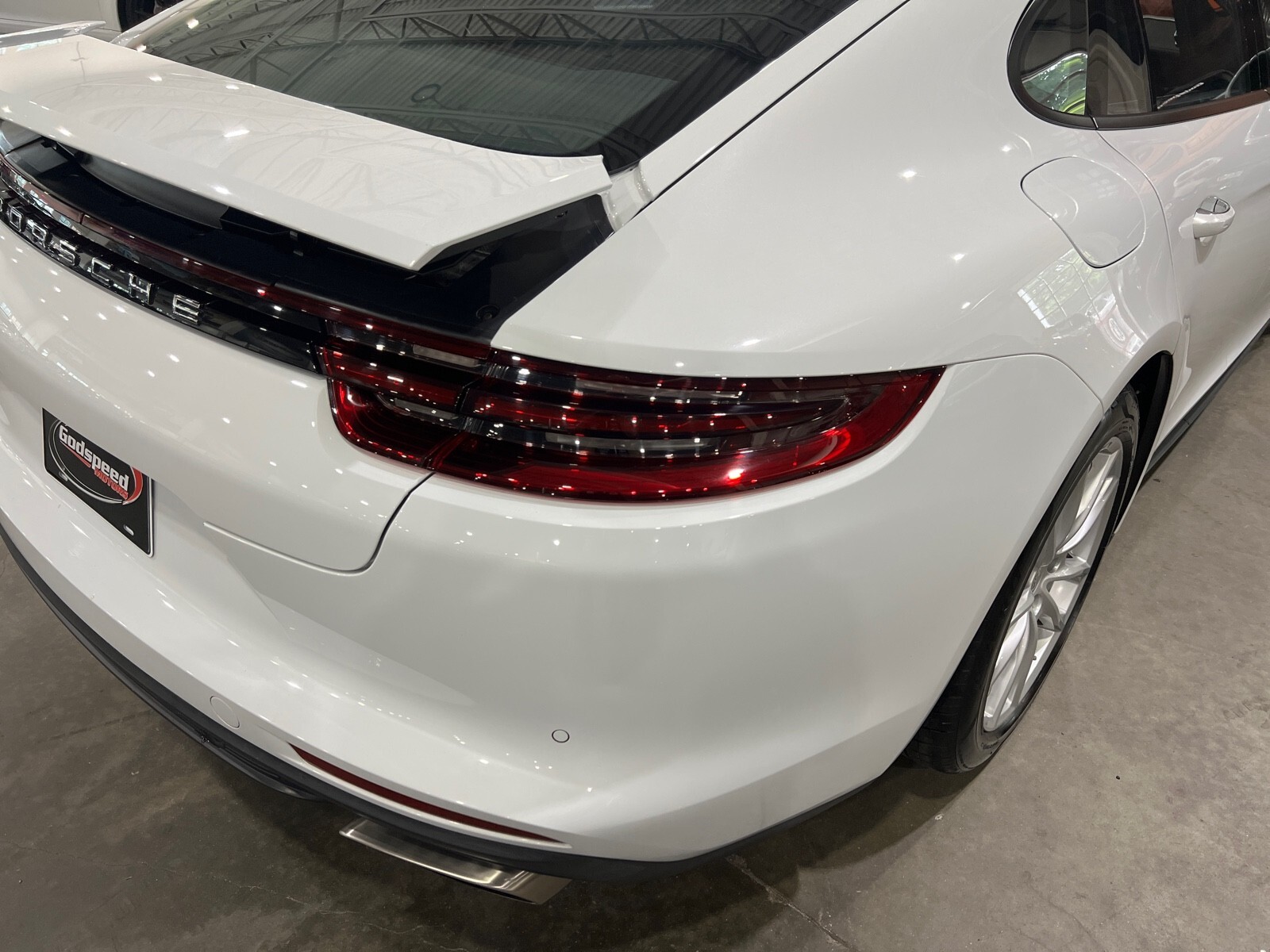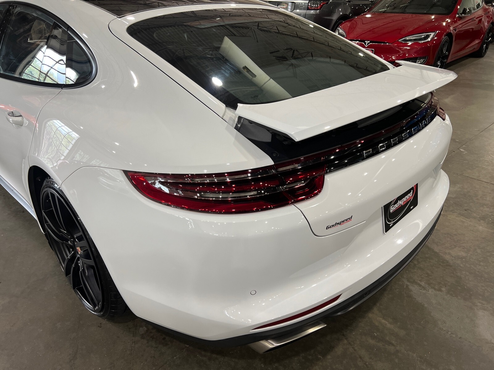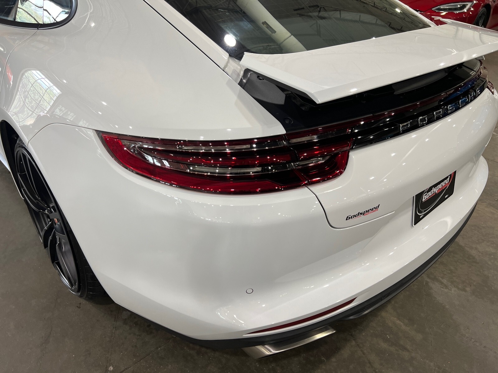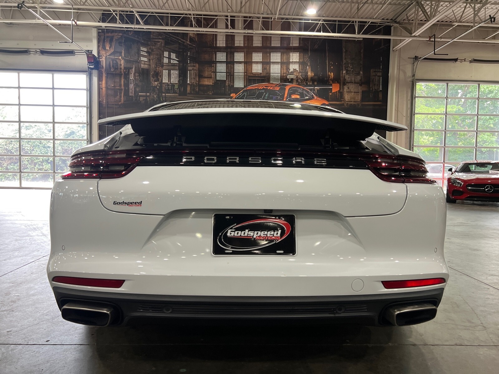 2 owners, clean Carfax, low mileage, heated/ventilated front seats, 14-way power seats, drive mode select and chassis control, dual climate control(front and rear), memory seats, Bose sound system, back seat climate control, dual moonroof, garage link, Sirius XM and Bluetooth, retractable spoiler, auto start stop, navigation, lane change assist, 360 camera, night view assist, massage seats, retractable rear shade, paddle shifters etc $114,630 MSRP When New. 22 Inch Black Panamera Turbo Style wheels and tires may be shown in pictures they are brand new and available for an additional $2495, factory silver wheels are included in the price. MSRP $94,350.00 INSTALLED OPTIONS [V58] Wheels: 19 Panamera S 9.0 x 19 front and 10.5 x 19 rear dual-arm 5-spoke design $600 [2Y] Carrara White Metallic $830 [AB] Black, Partial Leather Seat Trim $0 [P51] Premium Package Plus LED Headlights w/Porsche Dynamic Light System dynamic cornering light speed-dependent headlight range control sport mode and headlight cleaning system Front Seat Ventilation 3 levels of adjustment Comfort Access keyless entry and engine start Front & Rear Seat Heating 3 levels of adjustment 14-Way Power Seats seat backrest seat height fore/aft position seat cushion inclination seat cushion depth and lumbar support (4-way) Memory Package driver and front passenger seating positions steering column side mirrors lights wipers climate control door lock setting instrument cluster and PCM Soft Close Doors Lane Change Assist (LCA) BOSE Surround Sound-System 14 loudspeakers w/subwoofer 14 amplifier channels a total output of 710 watts BOSE Centerpoint 2 technology AudioPilot noise compensation technology and BOSE SoundTrue enhancement technology $6,250 [1BK] Adaptive Air Suspension W/Pasm leveling system and electronically controlled damper system w/3 manually selectable settings $2,185 [3Y8] PWR Sunblind For RR Compartment & RR Side Windows $880 [0NA] Deletion Of Model Designation $0 [3KK] Rear 8 Way Power Seats W/Memory Package $2,010 [9AH] 4 Zone Climate Control additional air vent in each B-pillar for rear seats $1,410 [2V4] Ionizer $340 [5MP] Dark Walnut Interior Package dashboard decorative trims door decorative trims and decorative elements in the center console $995 [QE1] Storage Package a luggage net in the front passenger footwell and 2 luggage nets in the luggage compartment $0 [8A4] Front & Rear Parkassist W/Surround View $1,190 [9R1] Night Vision Assist $2,540 [9JB] Smoker Package ashtrays and cigarette lighters $0 [VW5] Thermally & Noise Insulated Glass $0 Original Shipping Charge $1,050 RETAIL PRICE (ORIGINALLY NEW) $114,630.00