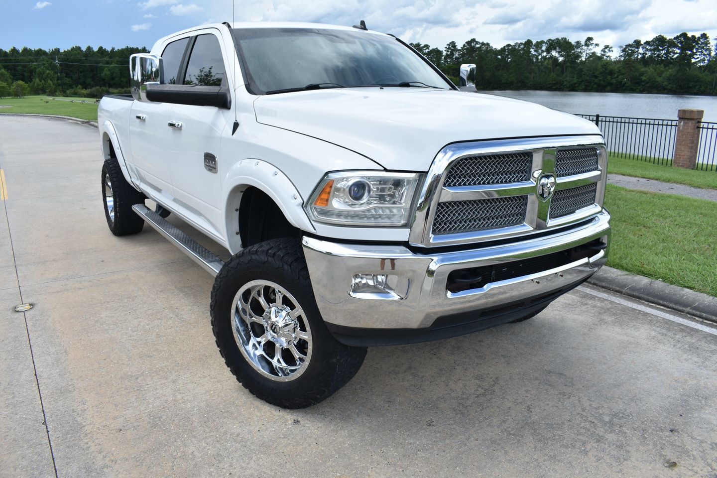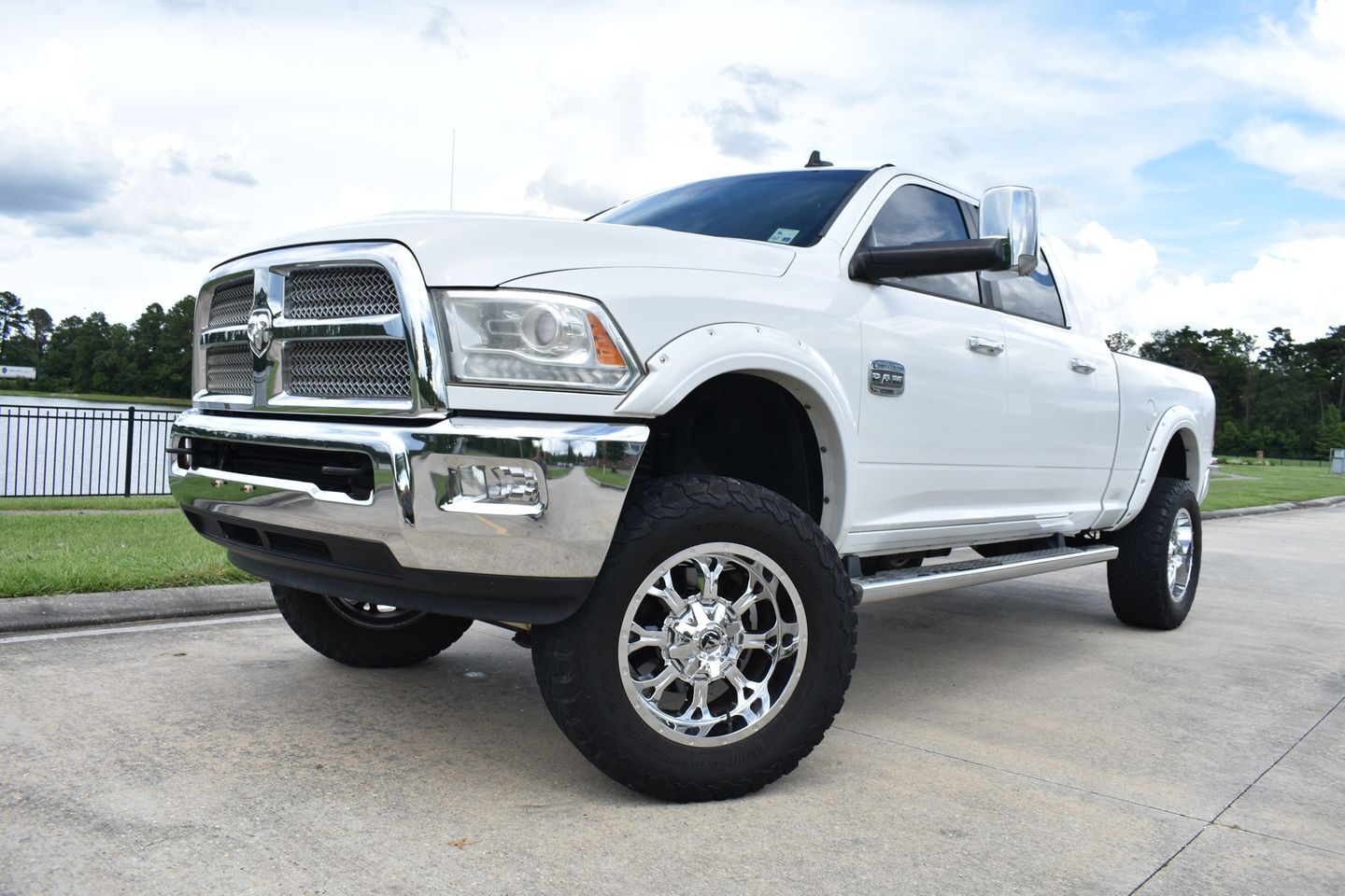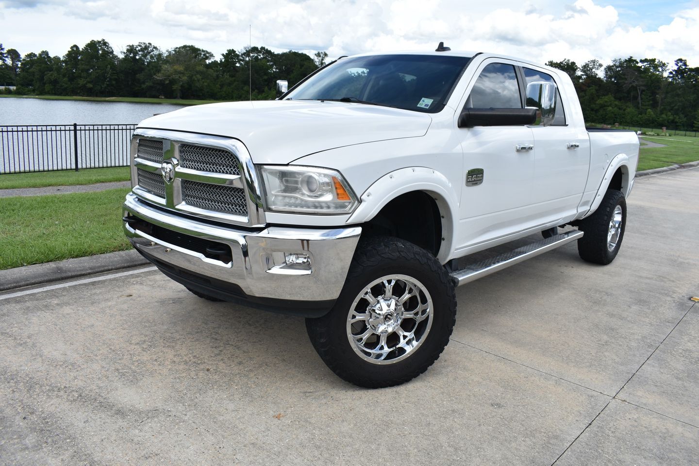 You are looking at a 2014 Dodge Ram 3500 Mega Cab Laramie Longhorn 4X4. It is powered with a 6.7L Cummins Diesel I-6 and six speed automatic transmission. It is equipped with dual power leather heated/ cooled seats, power trailer mirrors, power windows, power locks, tilt, cruise, spray in bed liner, receiver hitch, and factory navigation. Also included are the owner's manuals and one keyless remote.
