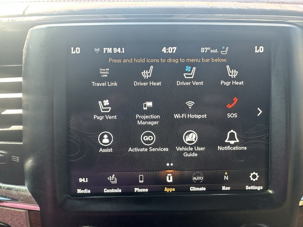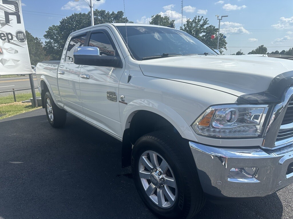 2500 Laramie Longhorn, 4D Crew Cab, Cummins 6.7L I6 Turbodiesel, 6-Speed Automatic, 4WD, Pearl White, Canyon Brown/Lt Beige Leather, 10 Speakers, 115V Auxiliary Power Outlet, 4-Wheel Disc Brakes, ABS brakes, Adjustable pedals, Air Conditioning, Alloy wheels, AM/FM radio: SiriusXM, Anti-Spin Differential Rear Axle, Apple CarPlay/Android Auto, Audio memory, Auto High Beam Headlamp Control, Auto-dimming door mirrors, Auto-dimming Rear-View mirror, Automatic temperature control, Brake assist, Bucket Seats, Chrome Belt Moldings, Chrome Exterior Mirrors, Chrome Tubular Side Steps, Cold Weather Group, Compass, Convenience Group, Delay-off headlights, Driver door bin, Driver vanity mirror, Electronic Stability Control, Electronically Controlled Throttle, Engine Block Heater, Exterior Mirrors Courtesy Lamps, Exterior Mirrors w/Heating Element, Exterior Mirrors w/Memory, Exterior Mirrors w/Supplemental Signals, Folding Flat Load Floor Storage, Front Bucket Seats, Front Center Armrest w/Storage, Front dual zone A/C, Front fog lights, Front reading lights, Fully automatic headlights, Garage door transmitter, Genuine wood console insert, Genuine wood dashboard insert, Genuine wood door panel insert, Heated door mirrors, Heated Front Seats, Heated rear seats, Heated Second Row Seats, Heated Steering Wheel, High Back Seats, I/P Center Stack Bezel-Walnut Veneer, Illuminated entry, Keyless Enter-N-Go, Leather steering wheel, Leather Wrapped Grab Handle, Locking Tailgate, Longhorn Southfork Package, Longhorn Tailgate Letters, Low tire pressure warning, Luxury Front & Rear Floor Mats, Memory seat, Navigation System, Outside temperature display, Overhead console, Painted Front Bumper (MBU), Painted Rear Bumper (MBV), ParkView Rear Back-Up Camera, Passenger door bin, Passenger vanity mirror, Pedal memory, Power 10-Way Memory Driver & 6-Way Passenger Seats, Power door mirrors, Power driver seat, Power Folding Chrome Trailer Tow Mirrors, Power Folding Mirrors, Power Lumbar Adjust, Power passenger seat, Power steering, Power Sunroof, Power windows, Premium Filigree Leather Seats, Quick Order Package 2FK Longhorn, Radio data system, Radio: Uconnect 4C Nav w/8.4 Display, Rain Sensitive Windshield Wipers, Rear 60/40 Split Folding Seat, Rear seat center armrest, Rear step bumper, Rear Window Defroster, Remote keyless entry, Remote Proximity Keyless Entry, Security system, Speed control, Split folding rear seat, Steering Wheel Mounted Audio Controls, Steering wheel mounted audio controls, Suede Headliner, Tachometer, Tilt steering wheel, Tip Start, Tow Hooks, Traction control, Trailer Tow Mirrors, Trip computer, Turn signal indicator mirrors, Variably intermittent wipers, Vendor Painted Cargo Box Tracking, Ventilated Front Seats, Winter Front Grille Cover.
