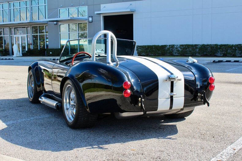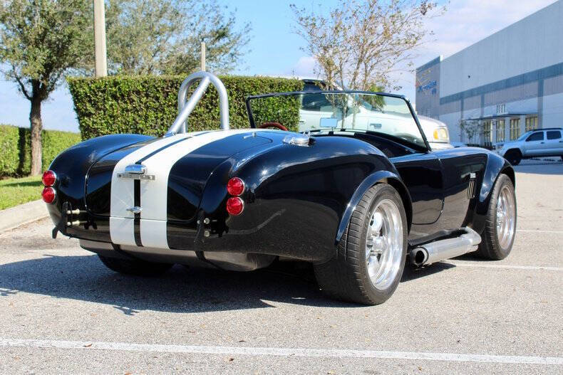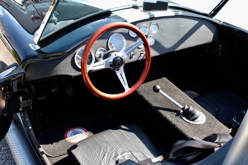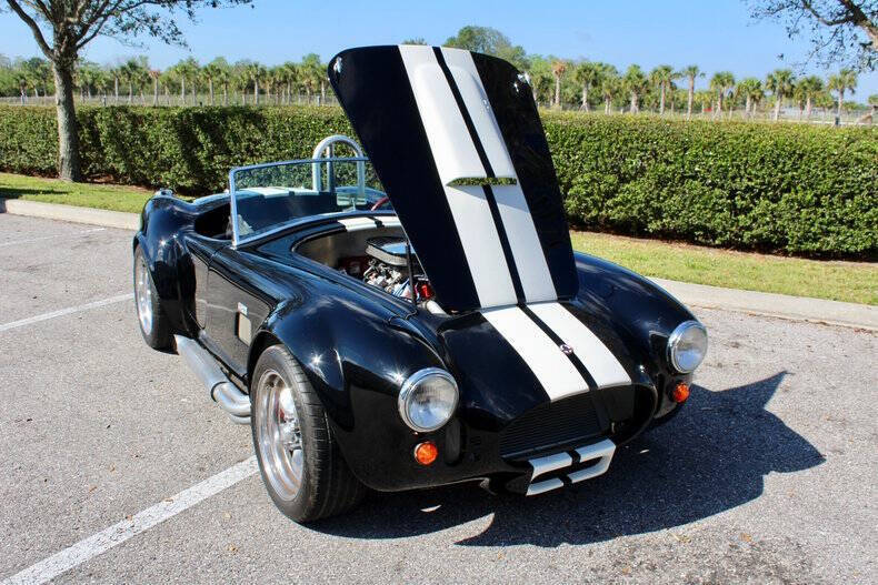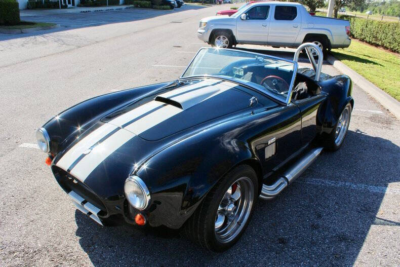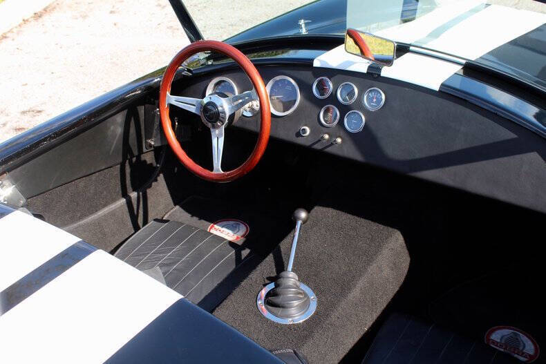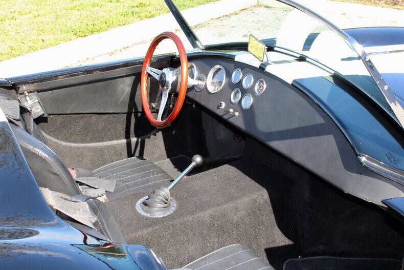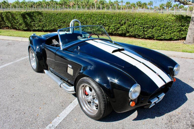 1966 SHELBY COBRA FACTORY FIVE This Factory Five Cobra is not just a car; it's a thrilling driving experience waiting to be enjoyed by its next lucky owner. With its blend of heritage design and upgraded features, it offers the best of both worlds: vintage appeal and contemporary performance. Finished in striking black with dual white racing stripes, this Cobra commands attention wherever it goes, combining classic aesthetics with modern performance capabilities. Factory Five Mark 3 Cobra, embodying the timeless spirit of a 1966 Ford with modern enhancements for exhilarating driving experiences. This Cobra boasts a potent 302 engine paired with Tremec 5-Speed manual transmission. Braking comes from 4-wheel Wilwood disc brakes with drilled & vented rotors. Additional features include, Weiand Stealth aluminum intake, MSD ignition system, American Racing Torq Thrust wheels, Aluminum differential cover with Ford 8.8 rear axle. Fuel System: Holley fuel pump and 4-barrel carburetor, coated headers with side exit exhaust for a raw, aggressive sound. Simpson harness and interior battery cut-off for added security. Roll bar for enhanced safety, chrome windshield trim, and a classic Grant wood-rim steering wheel Serious inquiries are welcome to experience this iconic piece of automotive history firsthand. Contact us today to schedule a viewing and make this Factory Five Cobra yours. EXTERIOR: aˆc Black with White Stripes aˆc Chrome Wheels INTERIOR: aˆc Black Leather Bucket seats aˆc Simpson harness aˆc Grant wood-rim steering wheel aˆc Fuel Shut off MECHANICS: aˆc Ford 302 V8 aˆc 5-Speed Manual (Tremec) UNDERCARRIAGE: aˆc Clean Call us at941-208-6886, a live person answers the phones from 9am - 9pm (EST) Financing is available on our website We can ship this vehicle worldwide door to door Our indoor showroom is located at 7910 25th Court East Unit 107 Sarasota, FL 34243