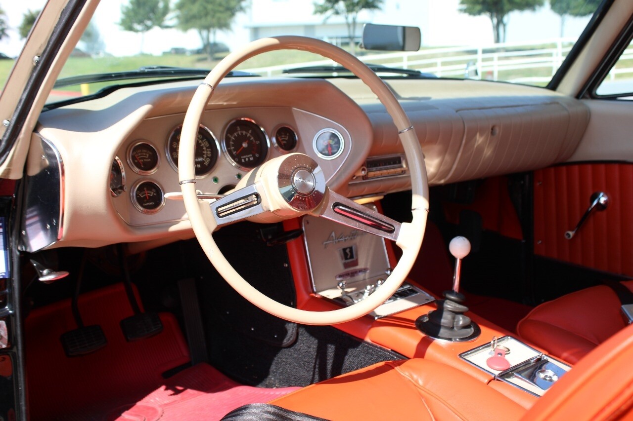 Gateway Classic Cars of Dallas is pleased to introduce the epitome of classic American muscle and innovative design: the 1963 Studebaker Avanti R2 Supercharged. This particular model stands out with its striking black exterior, complemented by a bold orange interior, creating a visual masterpiece that exudes both elegance and daring style. Under the hood, this Avanti R2 boasts a powerful Paxton Supercharged 289 CID V8 engine, delivering an exhilarating driving experience that is further enhanced by the precision of a 4-speed manual transmission.