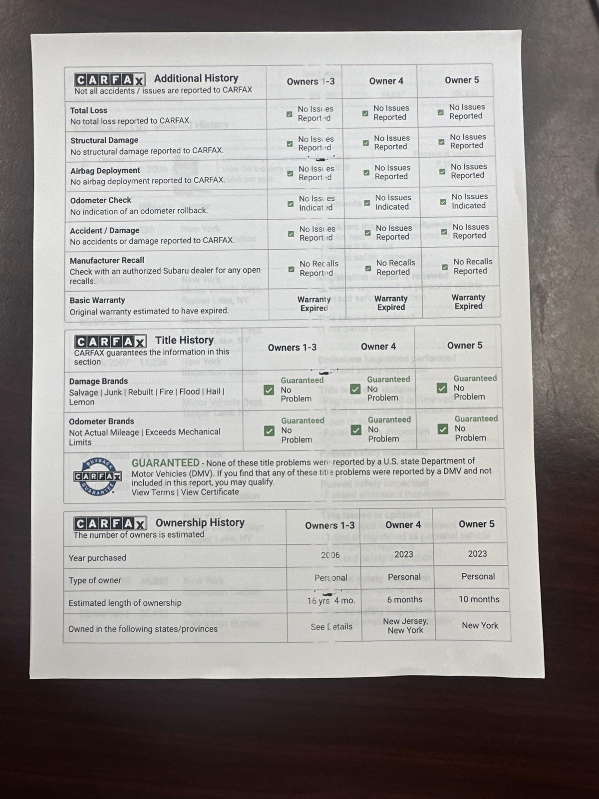 VEHICLE HOME, BUYER ACCEPTS ALL