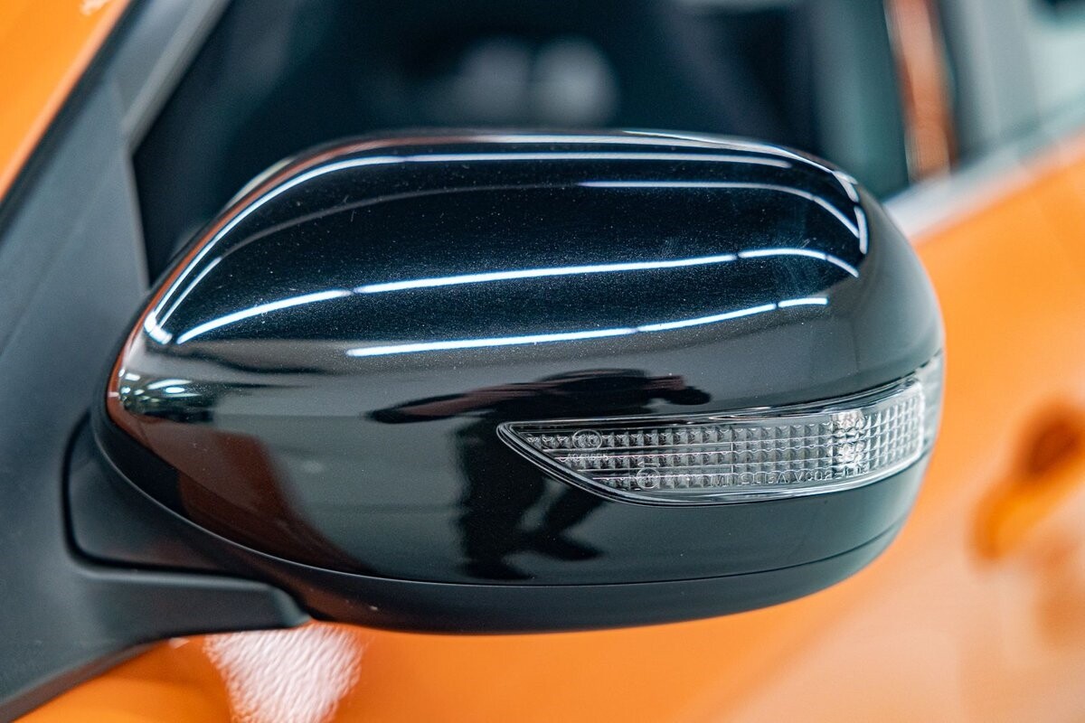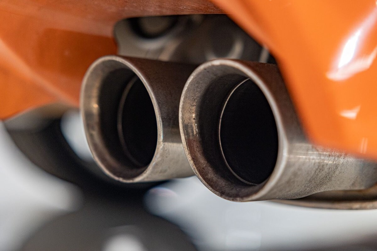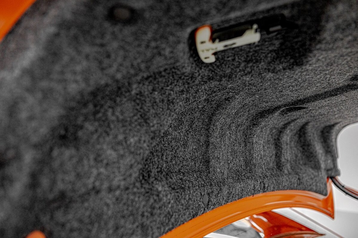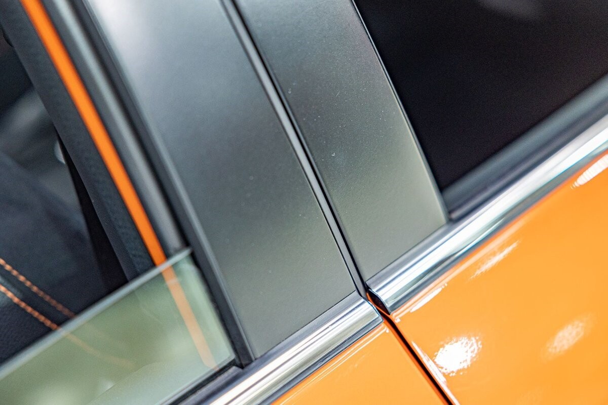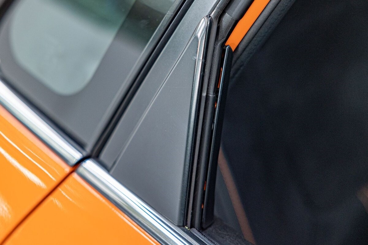 EXTERIOR: Finished in tangerine orange pearl, this Subaru certainly stands out to those Halloween lovers. The trim is accented in black as well as the black vinyl decals along the lower portion of the car. It's finished in STI appearance trim giving it the larger hood scoop, lower front lip, STI side skirts, and massive STI rear wing. The wheels are a gloss black 18" forged BBS wheel with a very grippy all season tire wrapped around them with plenty of tread, The exhaust out the rear bumper is quad tipped dual giving off that nice rumble Subarus are known for. Overall, with 7,000 original miles this car is in showroom condition.