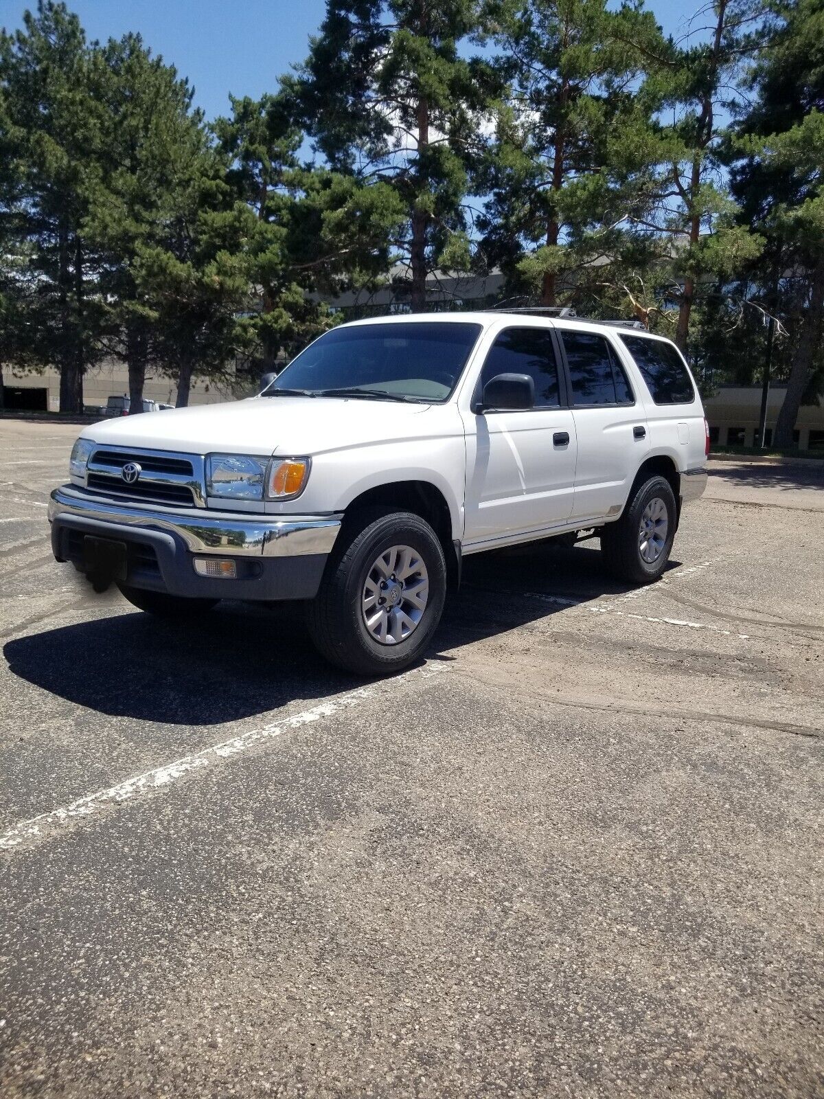 2000 Toyota 4Runner. Base model 4cyl Automatic 2WD. Clean cloth interior. Currently has 166,717 miles but will continue to go up. No rust. Well maintained. In last 1k miles - Replaced battery, front and rear brakes, lower ball joints, power steering rack, outer tie rod ends, driveshaft universal joints and yoke. Over last 10k miles - Replaced water pump, drive belts, spark plugs and wires, radiator and hoses, valve cover gasket, rear main seal and rear shocks. *Cosmetically there is a crack in the driver side mirror(mirror still operates) and there is a dent on top of the passenger fender as well as dented front bumper. $4,500