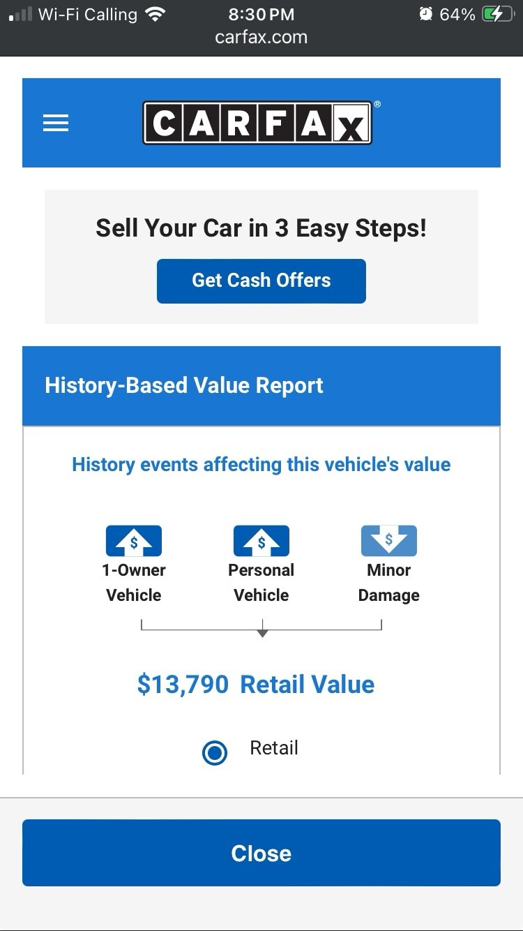 32 to 39 miles per gallon 113,000 miles back up camera, automatic cruise control braking system, lane avoidance system, only one mark on the entire car. See pictures. Paid for and clear title. Custom wheels and tires from Tire Rack in original sizes will come with original tires and wheels and hubcaps.