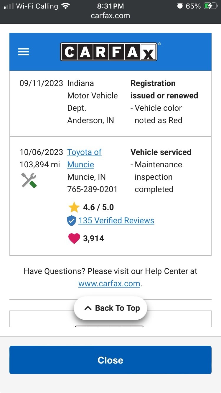 I did not detail it to put it on eBay so you could see the true condition of the car. The car was involved in a slight fender bender, which knocked the front bumper off in 2022. No paint overspray whatsoever and repair they repaired with all new Toyota components. I’ve included pictures of like vehicles and of my Carfax. We are hoping to bless someone with this car who will really appreciate it. No Urgent need to sell so looking for fair prices only. The mileage is actually 112400 but we may drive it between now and the time of sale therefore the extra mileage added in the ad. I have also included a photo of the accident damage in 2022 I slid into someones rear bumper on a gravel and wet intersection stopping to a light at 5 mph miles an hour. Minimal damage to us and zero damage to the other car. Full transparency, we want the buyer to know what they’re getting. God has blessed us with a very special car. We are downsizing from three cars to one. Thanks for considering our car.