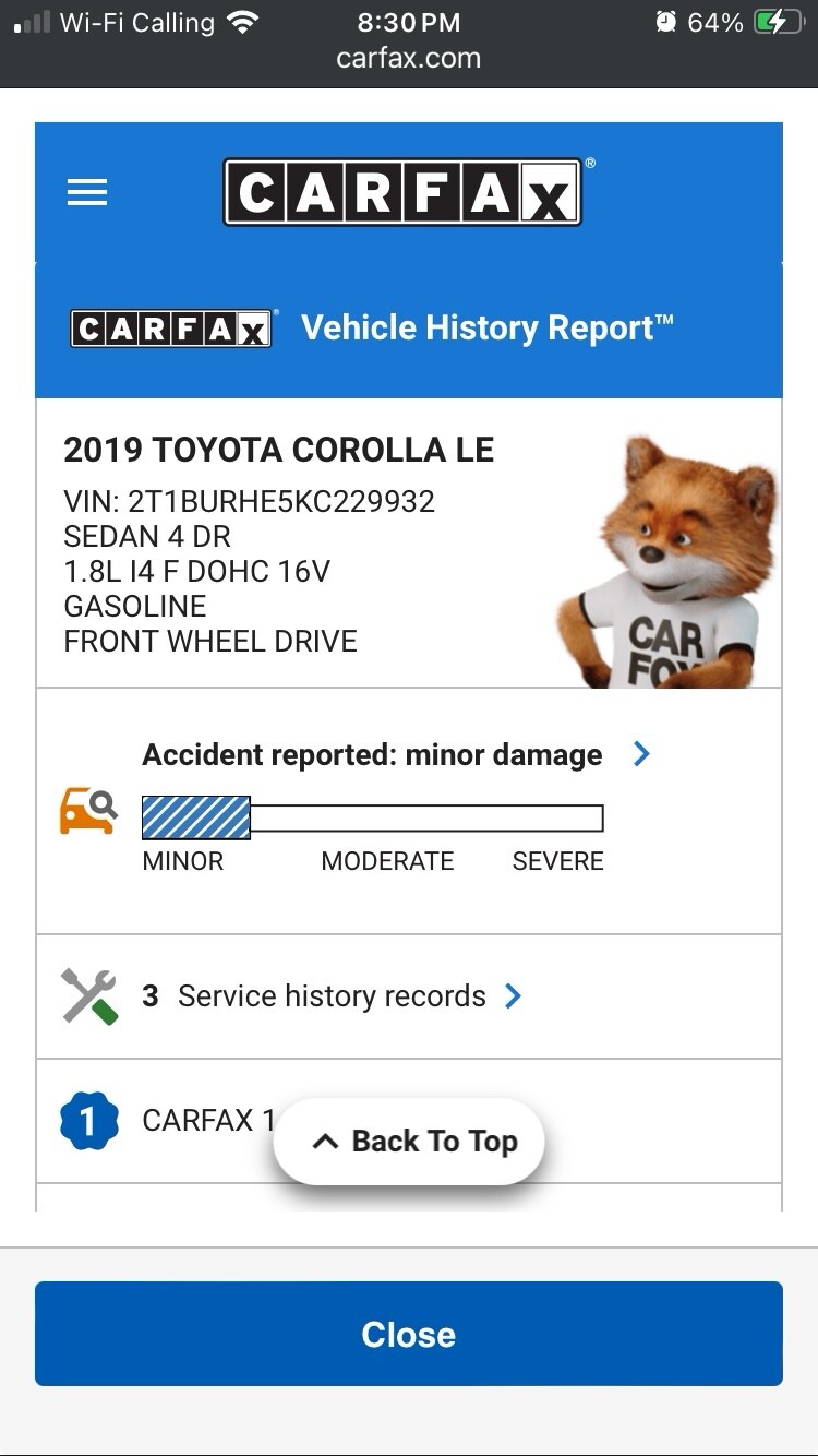 2019 Toyota Corolla LE black fabric interiorVehicle Details