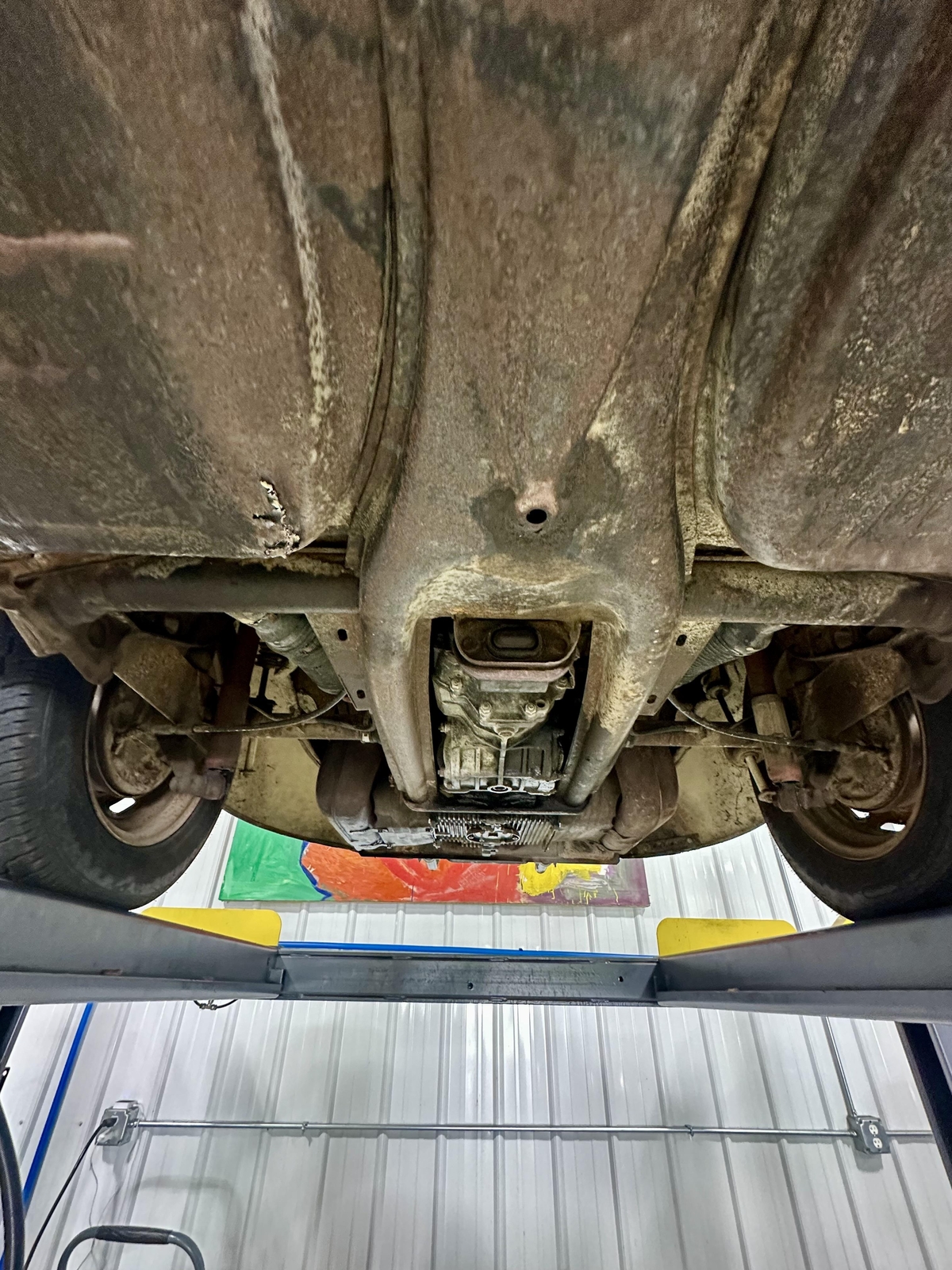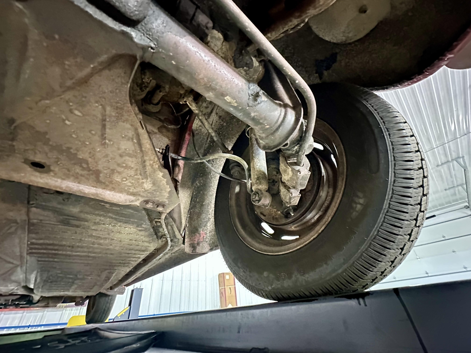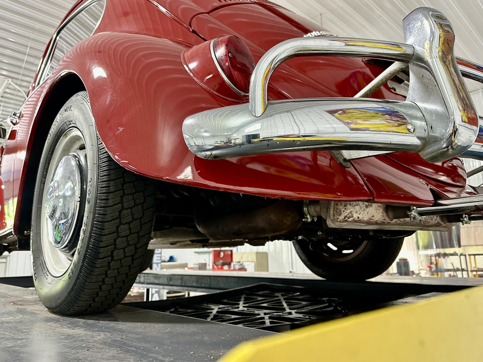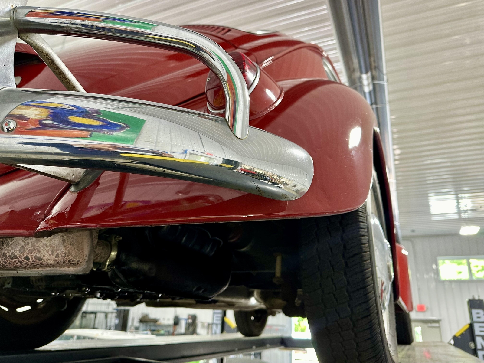 The underside is solid and dry, with a small repaired spot under the battery tray area, likely from an older unsealed acid battery leak. The unibody is structurally sound from front to back. The engine bay is clean and tidy, featuring a replacement 1600cc 126 Industrial Flat 4. While we don't know when the engine was swapped, it appears professionally done.
