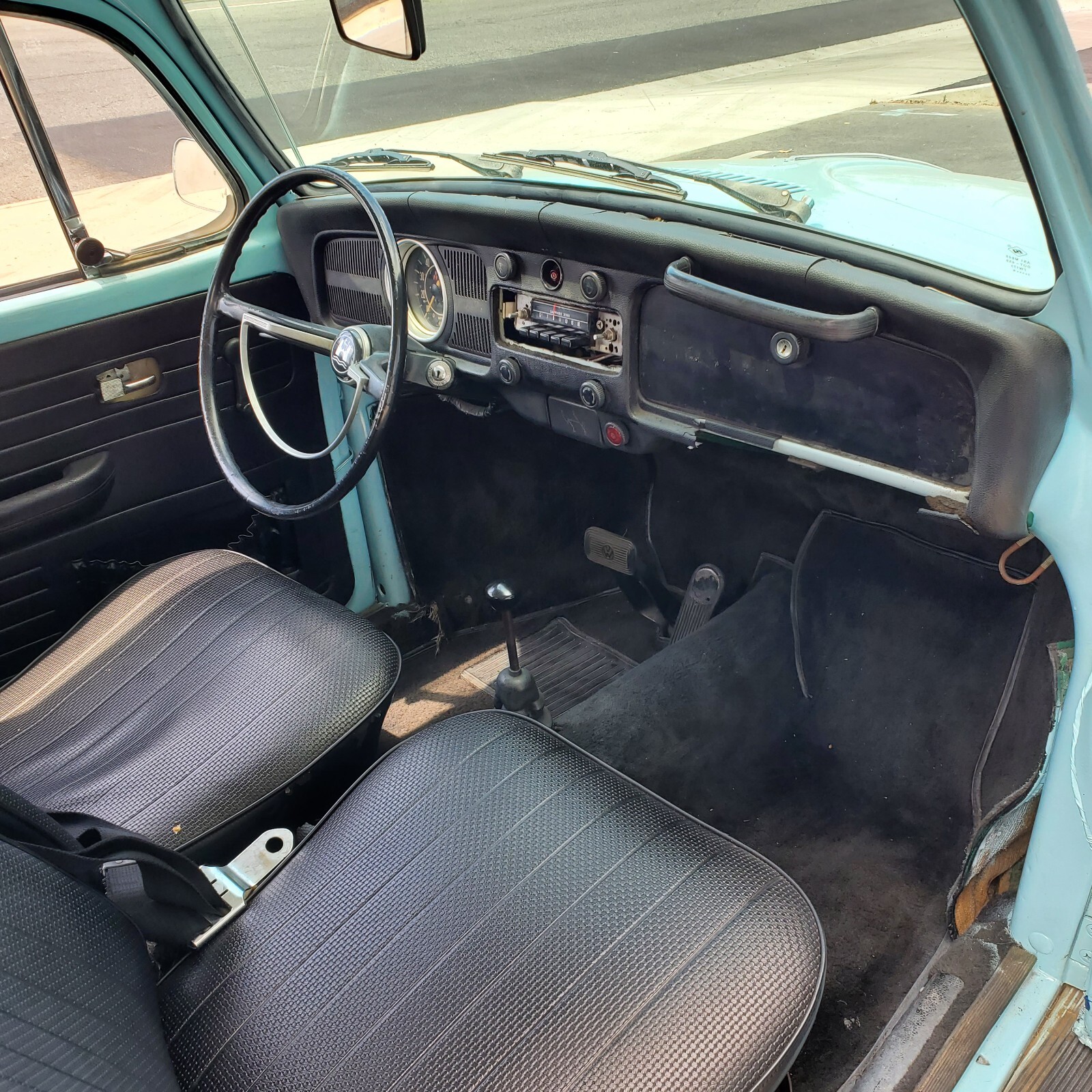 1970 VW Beetle with Rare Autostik transmission. Low, Drive and High, with no clutch. Straight California Car with no rust or wrecks. Original color was medium green repainted in Powder Blue. Paint looks good from afar, but far from good. Runs and drives great! Cruises easily at freeway speeds. Just a nice straightforward beetle.