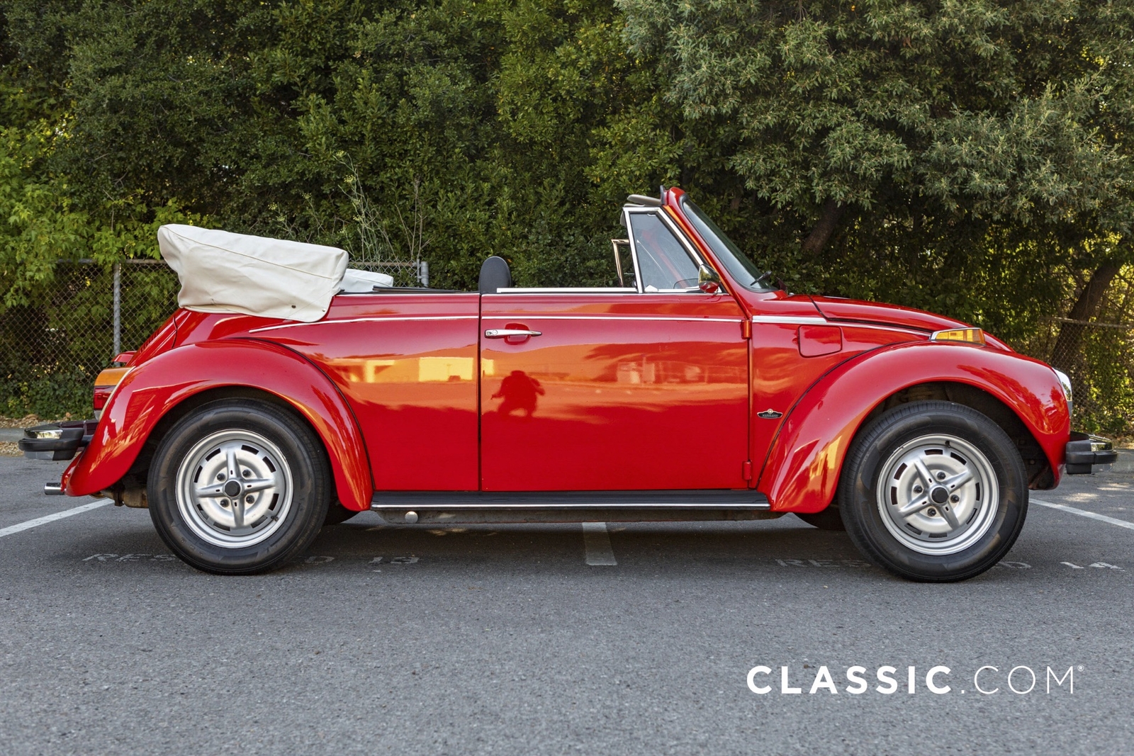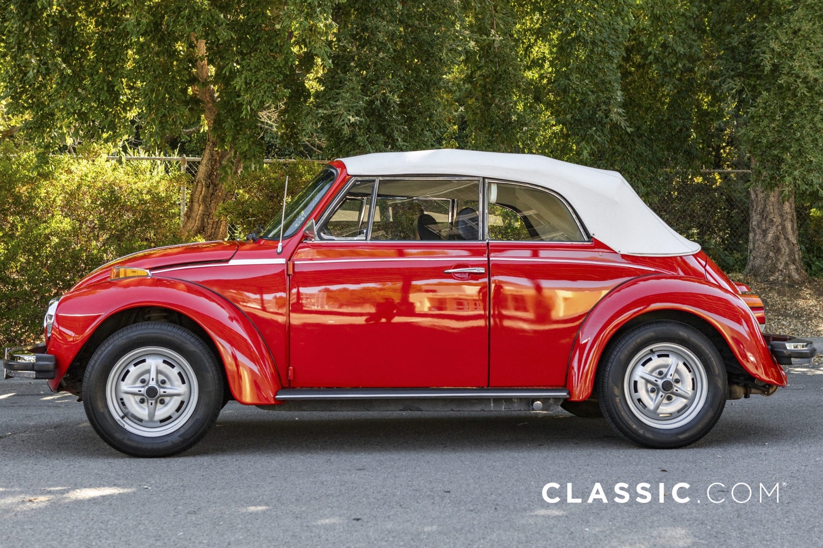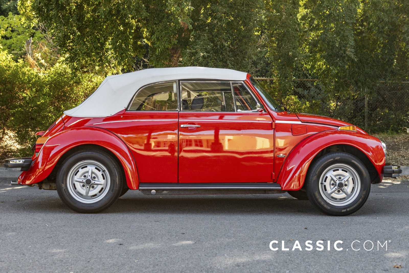 This 1979 VW Super Beetle convertible is a California car that shows well with its shiny red exterior, white top and contrasting black vinyl interior. A third-party inspection was conducted to transparently document the vehicle?s condition. Features include:
