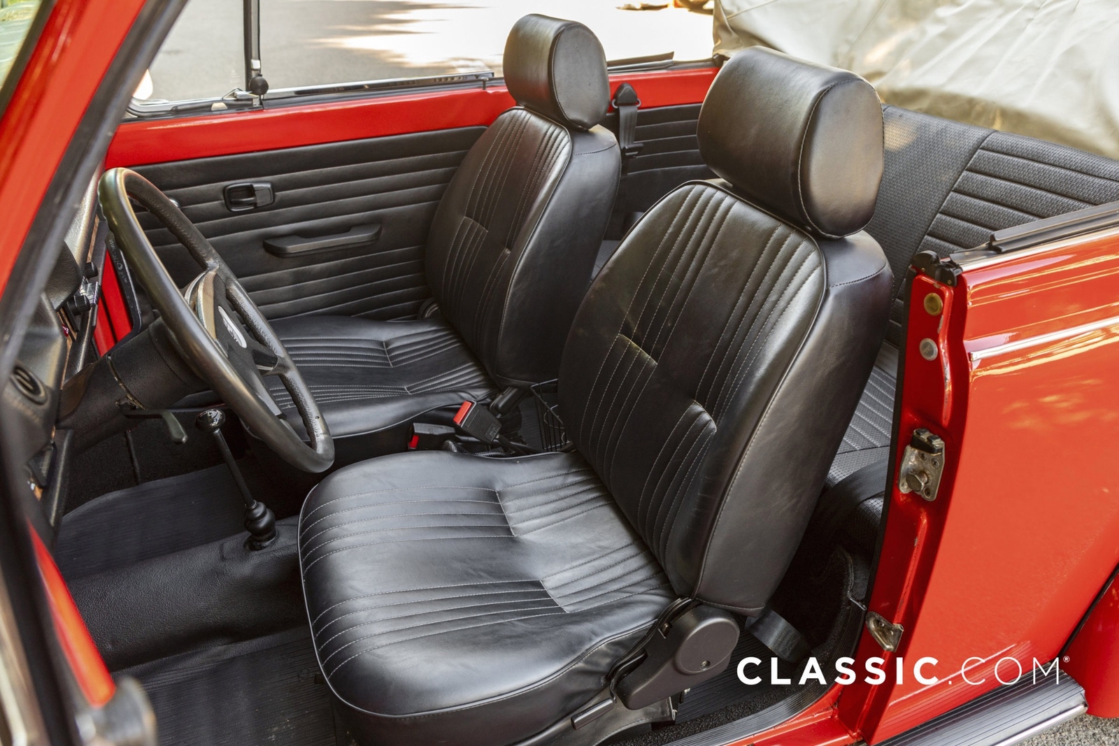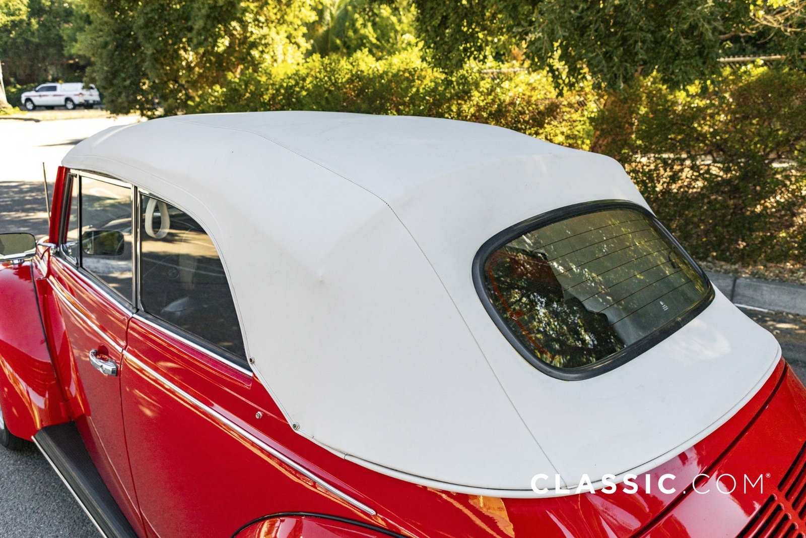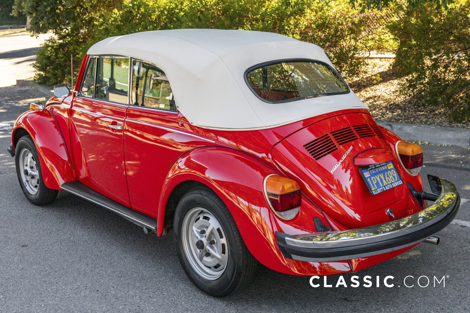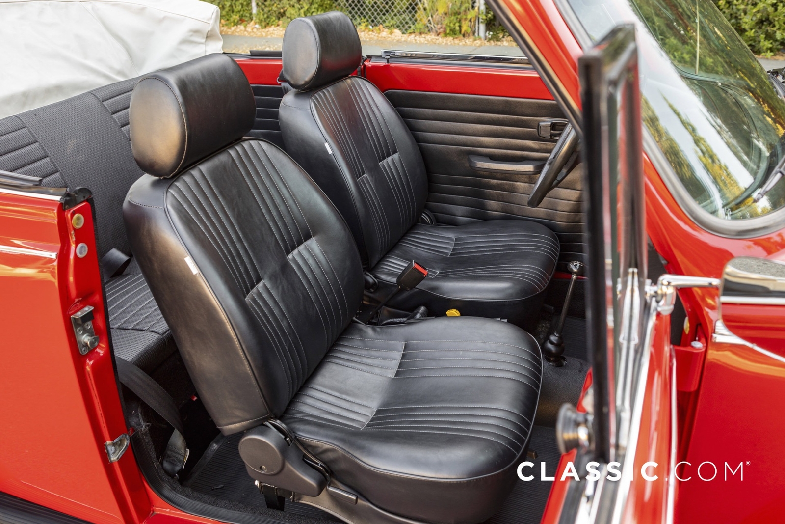 This 1979 VW Super Beetle convertible is a California car that shows well with its shiny red exterior, white top and contrasting black vinyl interior. A third-party inspection was conducted to transparently document the vehicle?s condition. Features include: