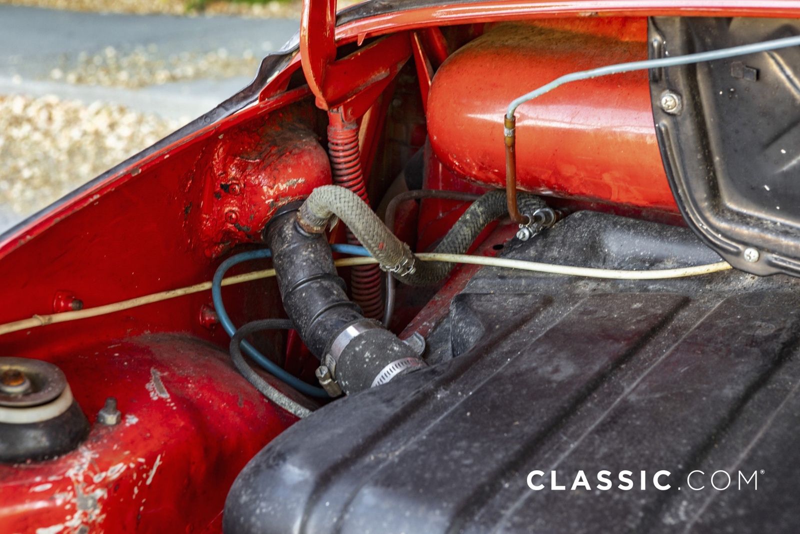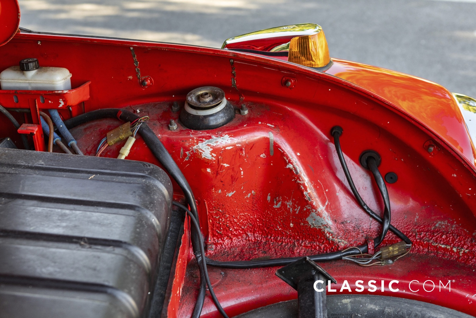 The convertible top shows some wear and tear