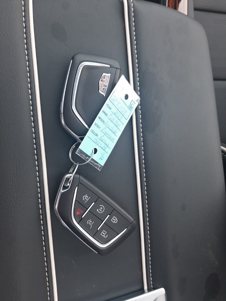 THIS VEHICLE INCLUDES THE FOLLOWING FEATURES AND OPTIONS: AWD, Leather, 16.9 Diagonal OLED Infotainment Screen, 19 Speakers, 2-Presets Memory For Driver Seat Adjuster, 3.23 Axle Ratio, 3rd row seats: split-bench, 4-Way Power Driver Lumbar Seat Adjuster, 4-Way Power Front Passenger Lumbar Seat Adjuster, 4-Wheel Disc Brakes, 8-Way Power Driver Seat Adjuster, 8-Way Power Front Passenger Seat Adjuster, ABS brakes, Adaptive Cruise Control, Air Conditioning, AKG Studio 19-Speaker Audio System, Alloy wheels, AM/FM radio: SiriusXM with 360L, Apple CarPlay/Android Auto, Audio memory, Auto High-beam Headlights, Auto tilt-away steering wheel, Auto-dimming door mirrors, Automatic Seat Belt Tightening, Automatic temperature control, Brake assist, Bumpers: body-color, Compass, Cruise Control, Delay-off headlights, Door Lock & Latch Shields, Driver door bin, Driver vanity mirror, Dual front impact airbags, Dual front side impact airbags, Electronic Stability Control, Emergency communication system: OnStar and Cadillac connected services capable, Enhanced Automatic Emergency Braking, Enhanced Automatic Parking Assist, Exterior Parking Camera Rear, Four wheel independent suspension, Front anti-roll bar, Front Bucket Seats, Front Center Armrest w/Storage, Front dual zone A/C, Front reading lights, Fully automatic headlights, Garage door transmitter, Glass Breakage Sensor, HD Radio, Heads-Up Display, Heated & Ventilated Driver & Front Passenger Seats, Heated door mirrors, Heated Driver & Front Passenger Seats, Heated front seats, Heated rear seats, Heated steering wheel, Illuminated entry, Lane Change Alert w/Side Blind Zone Alert, Leather Seating Surfaces w/Mini-Chevron Perf Inserts, Low tire pressure warning, Mechanical Limited-Slip Differential, Memory seat, Navigation System, Occupant sensing airbag, Outside temperature display, Overhead airbag, Overhead console, Panic alarm, Passenger door bin, Passenger vanity mirror, Power door mirrors, Power driver seat, Power Liftgate, Power moonroof, Power Panoramic Tilt-Sliding Sunroof, Power passenger seat, Power steering, Power windows, Premium Smooth Ride Suspension, Radio data system, Radio: AM/FM w/Navigation, Rain sensing wipers, Rear air conditioning, Rear anti-roll bar, Rear Camera Mirror, Rear Camera Mirror Washer, Rear Cross Traffic Alert, Rear reading lights, Rear window defroster, Rear window wiper, Reconfigurable Full-Color Head-Up Display, Remote keyless entry, Reverse Automatic Braking, Roof rack: rails only, Running Board Assist Steps, Security system, SiriusXM w/360L, Split folding rear seat, Spoiler, Steering wheel memory, Steering wheel mounted audio controls, Tachometer, Teen Driver, Telescoping steering wheel, Theft-Deterrent Alarm System, Tilt steering wheel, Traction control, Trip computer, Turn signal indicator mirrors, Variably intermittent wipers, Vehicle Inclination Sensor, Vehicle Interior Movement Sensor, Ventilated front seats, Voltmeter, Wheels: 22 14-Spoke Alloy w/Polished Finish, and Wireless Apple CarPlay/Wireless Android Auto.