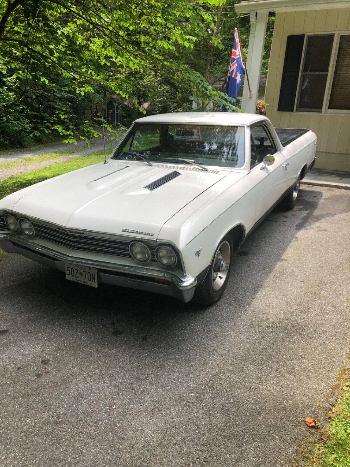 This is a beautiful car with original paint and a fresh 350 engine. When I bought it, the new engine was in it and it ran, but there were many small details that needed attention. The paint was badly faded, I thought I would have to repaint it, but it buffed right out. I found a touchup paint in a spray can that was a very closs match, so I sprayed some in a cup and, with a small brush, retouched every crack or chip before I buffed it out. With a ceramic coating, it came out like new. Then, my mechanic found three bolts missing between the engine and started and replaced them with hardened fasteners. The three bolts on the other side were loose, so he replaced them as well. It that greatly improved the shifting, which is now fabulous. The rear view mirror was just glued to the windshield and a slight bump into it and it broke free. I then found two reproduction parts and one original part that I polished up and I returned it to it was as it came from the factory. I also repaired a small hole in the upholdtery, which had been replace, but it is in fine shape. The car recieves a lot of looks. I will miss her, but it needs to go to someone that can do the remain8ng, very small, finishing touches.