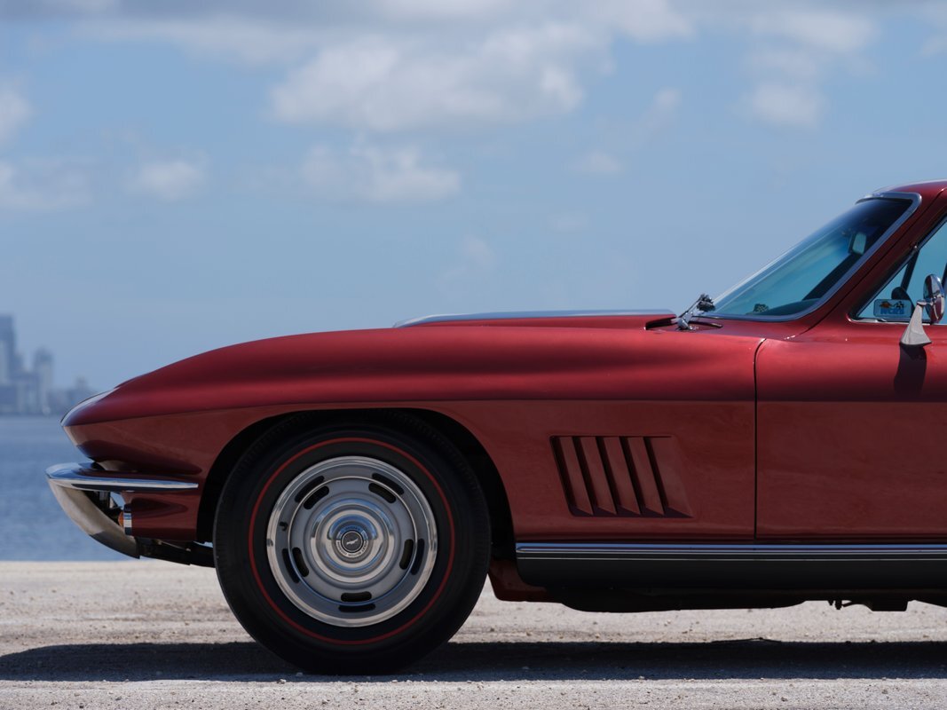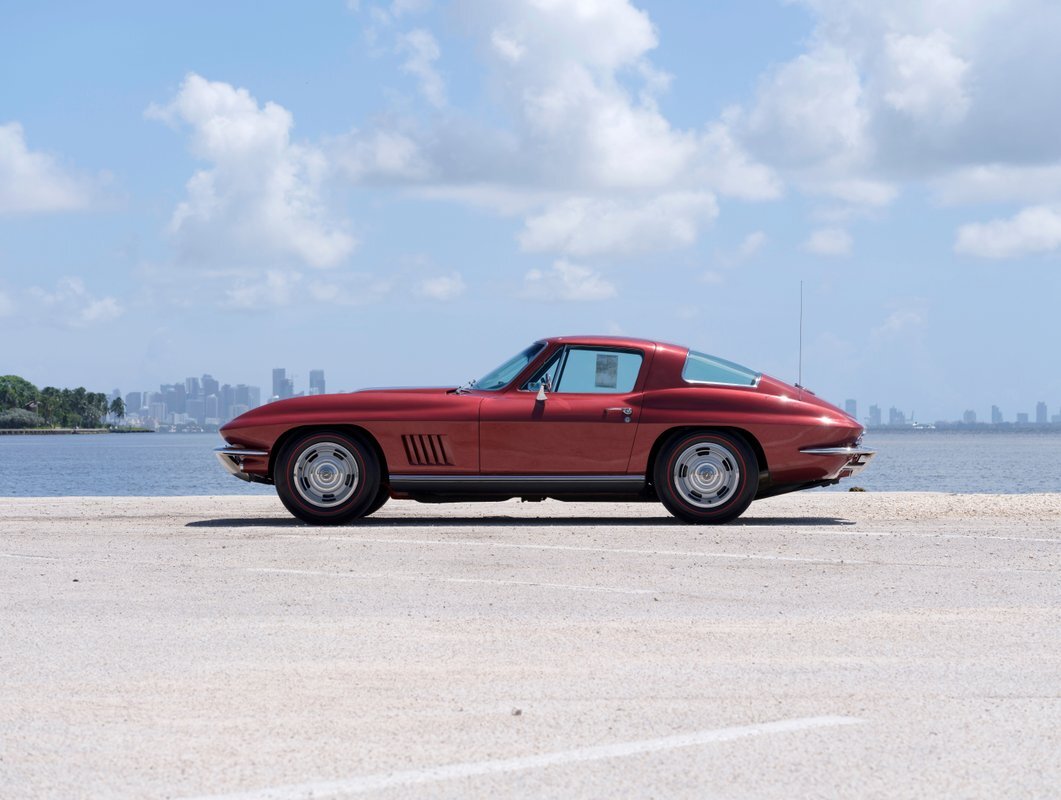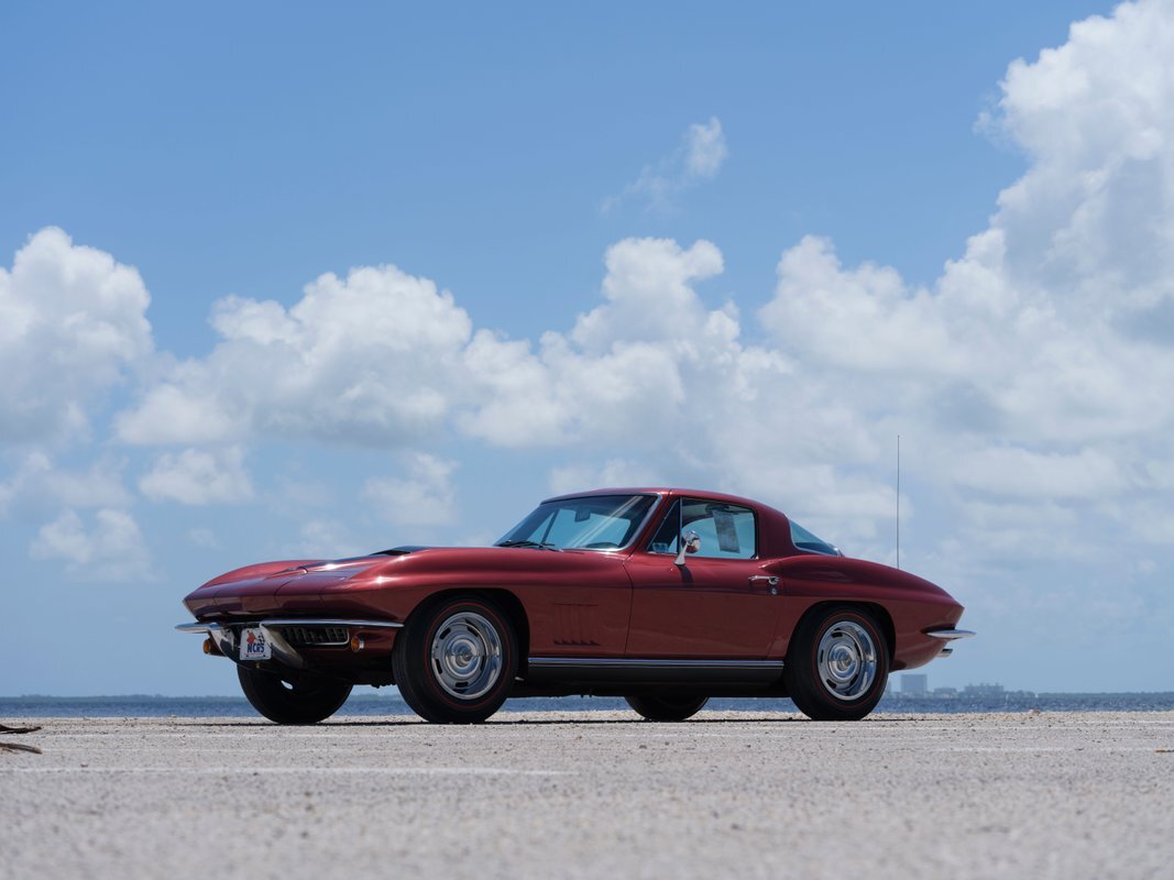 A true benchmark example of the mid-year C2 Corvette Stingrays. This Marlboro Maroon Stingray was originally sold at Shalla Chevrolet INC out Detroit, Michigan back on January 19, 1967. Purchased new by GM Engineer, David Kimball and stored in a climate-controlled environment for the past 40 years. Supported by a well-documented ownership history of its four previous caretakers.
