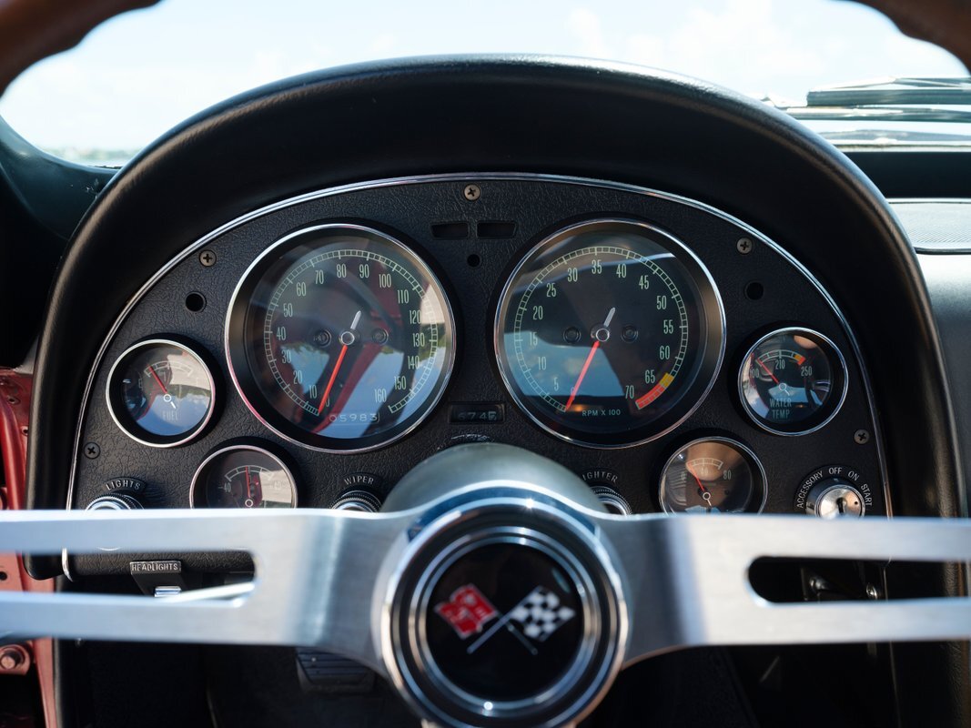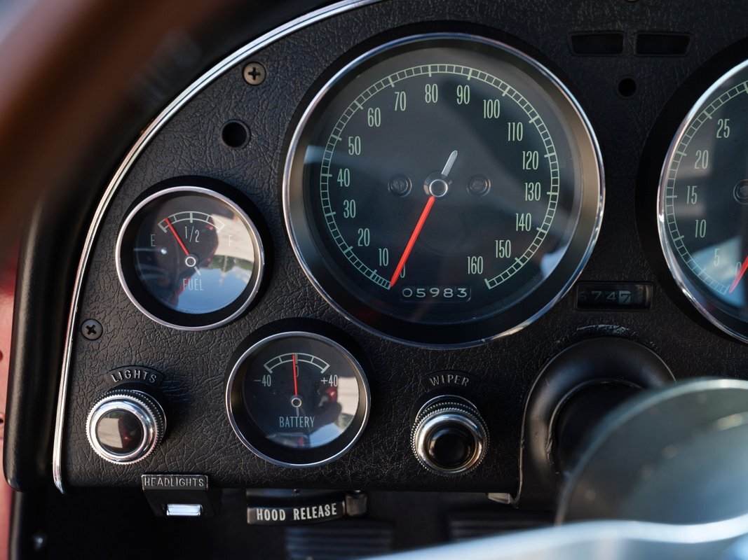 Presented here today displaying just 5,983 miles from new in 100% original unrestored condition. Making this one of the lowest mileage C2 Stingray “Survivor” examples to remain in existence with the big block V8 427/435 sitting under the Stinger hood. Equipped with the following options: L71 427-cid, 435-hp tri-power V-8, M21 close ratio four-speed transmission, Posi-traction axle, F41 special suspension, N11 off-road exhaust system, shoulder harness, transistor ignition, AM/FM radio and Rally wheels wrapped around 775 x 15 redline tires.