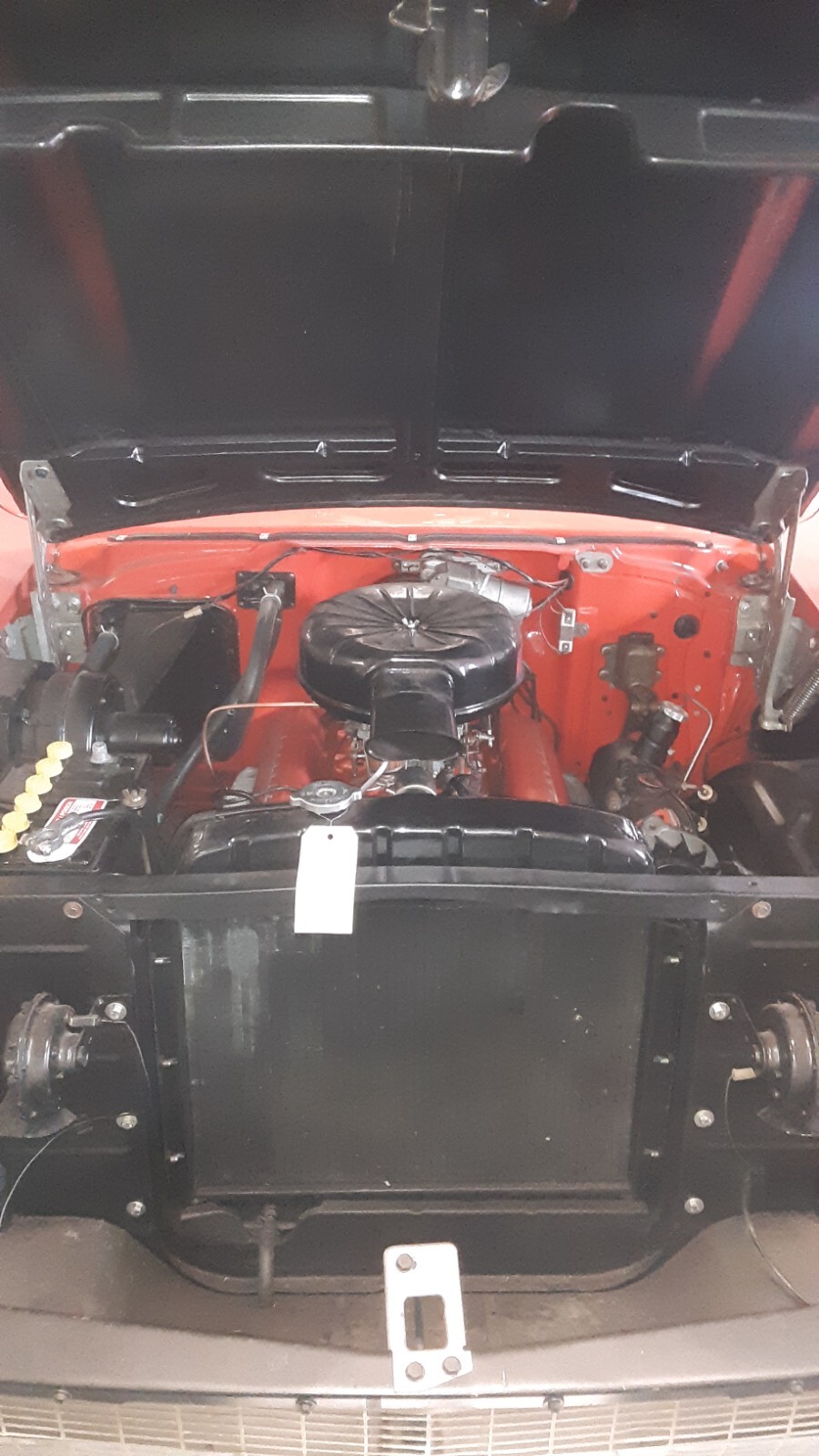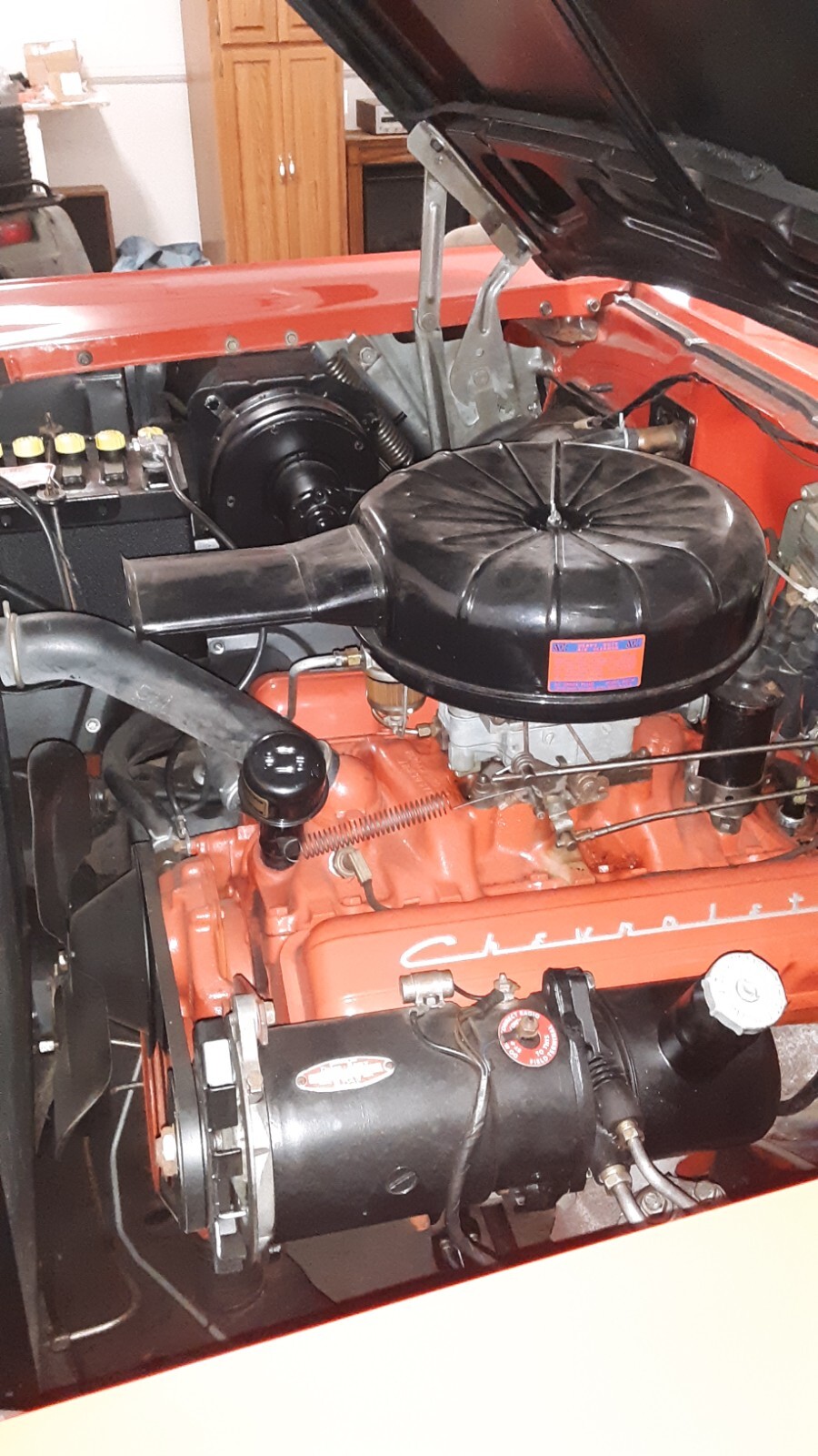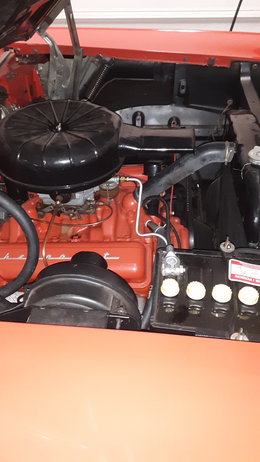 Runs good. Has been restored with NOS parts to make it look original. Even the hard to reach air vent couplings under the front fenders have been replaced. Power steering works to make this a nice driver. Extras are front and rear bumper guards, front bumper bullets, rear mounted antenna, side view mirror, finder skirts, wheel spinners, power top, padded dash